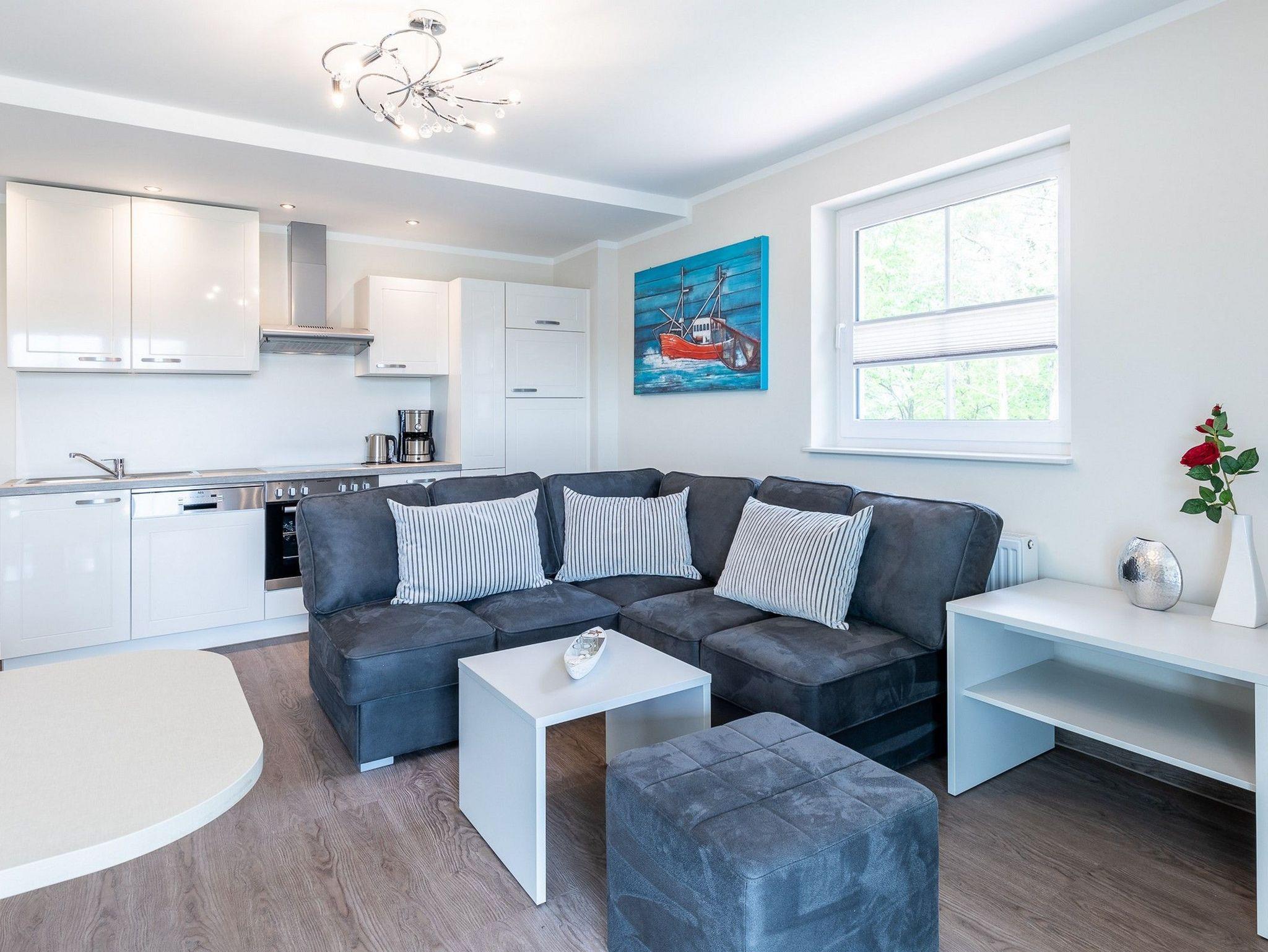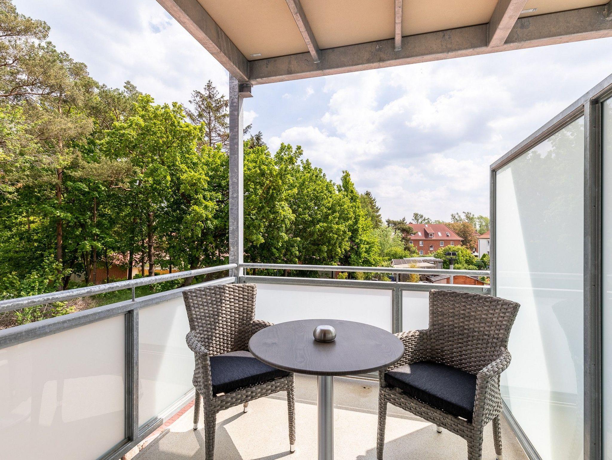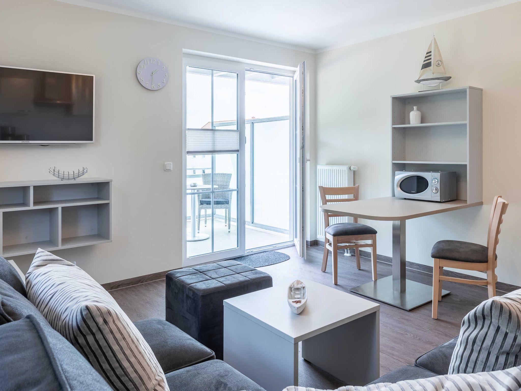 Moderne 2-Zimmer-Ferienwohnung mit Balkon und WLAN in Boltenhagen, ideal für einen erholsamen Ostseeurlaub zu zweit.