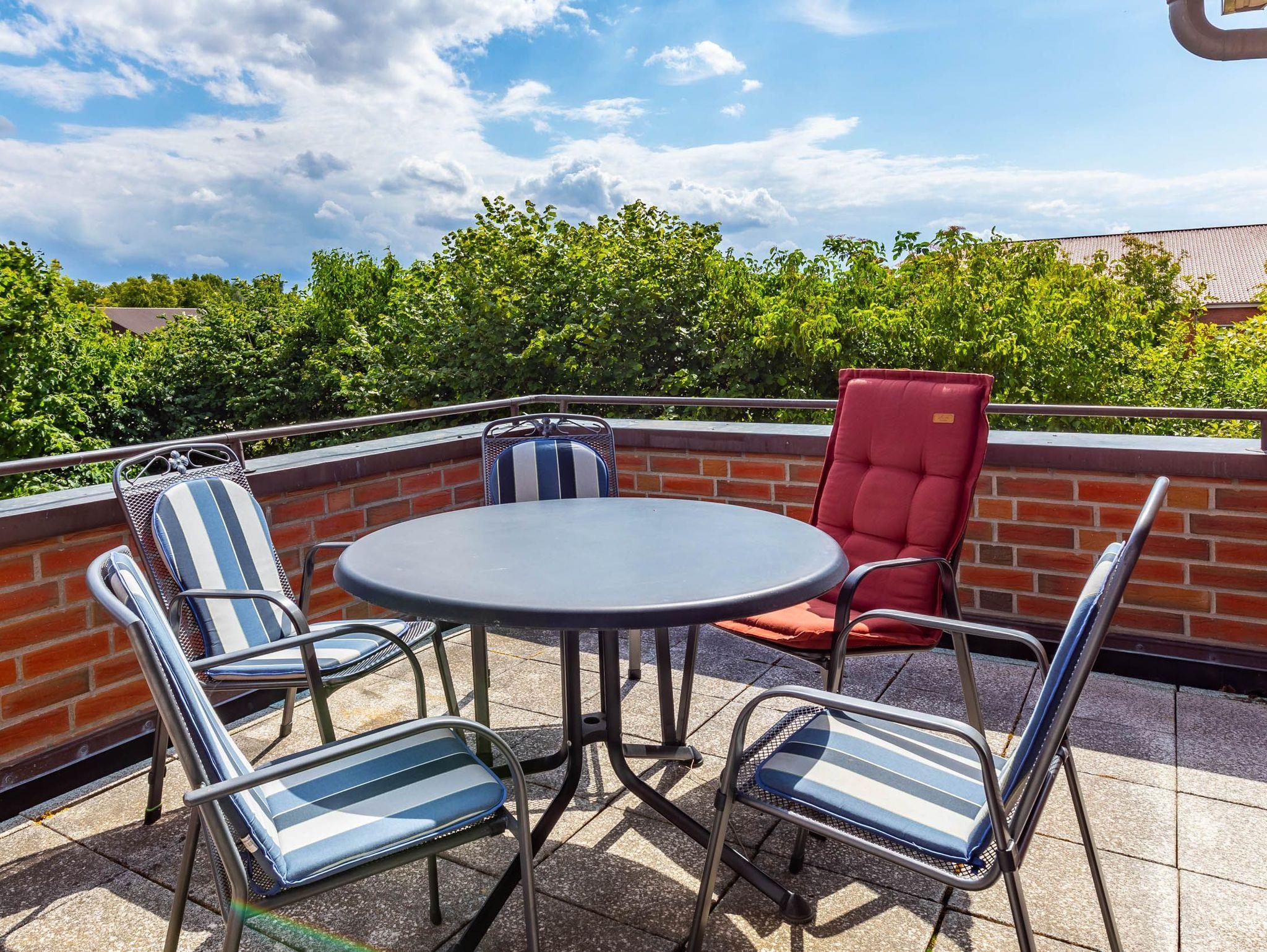 Der große und vor fremden Blicken geschützte sowie möblierte Südost-Balkon lädt zum Sonnenbaden und Entspannen ein.
