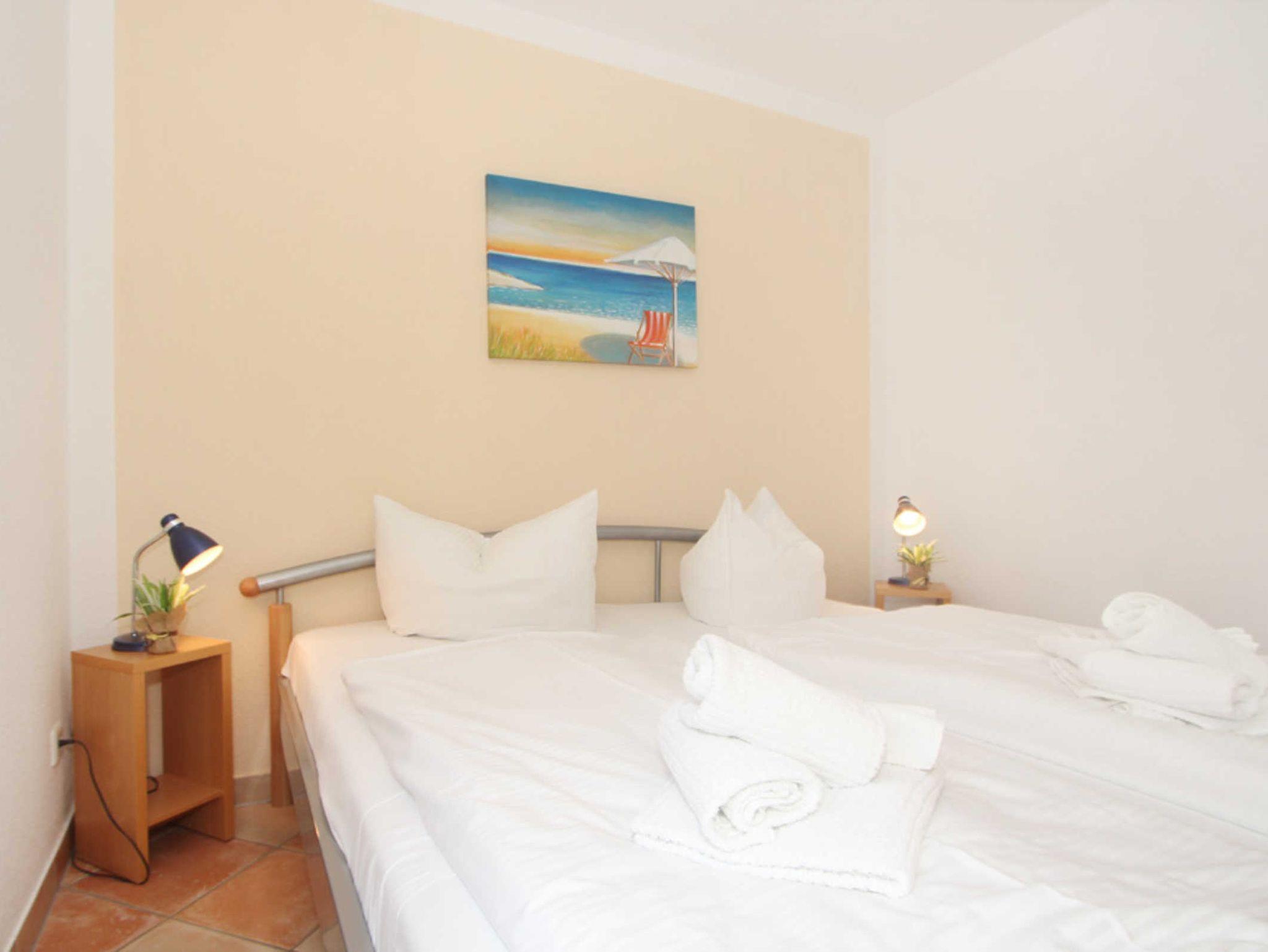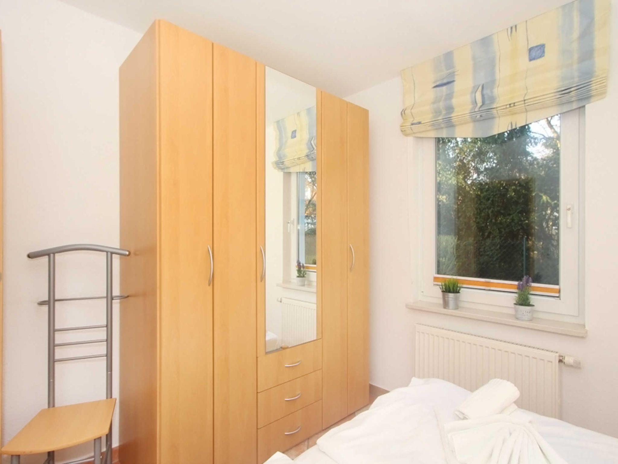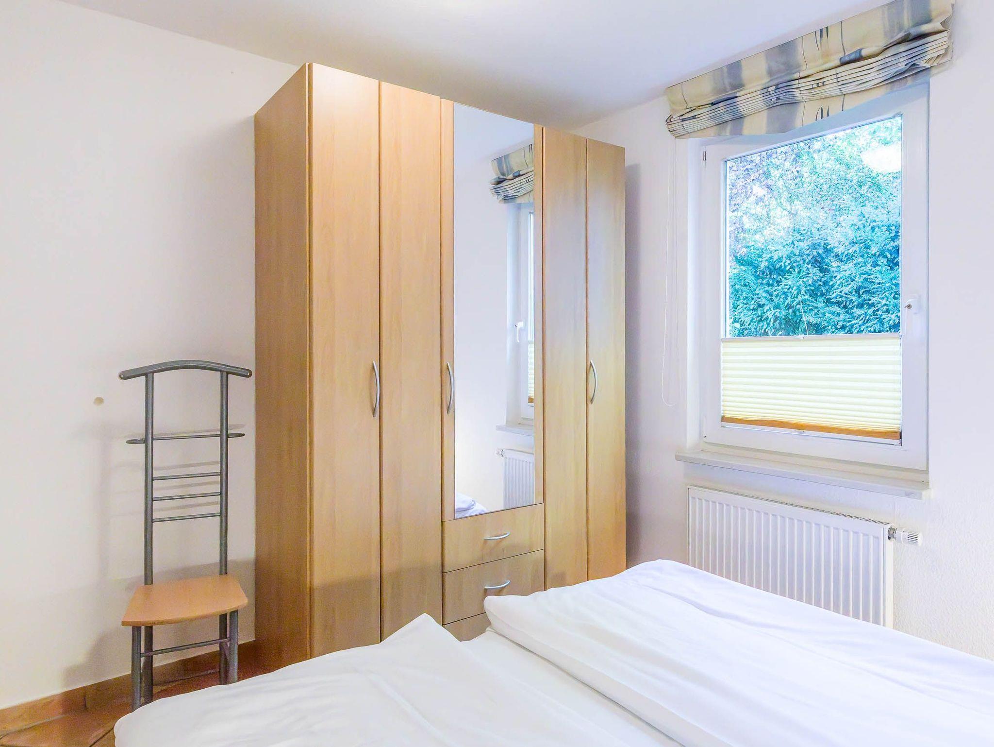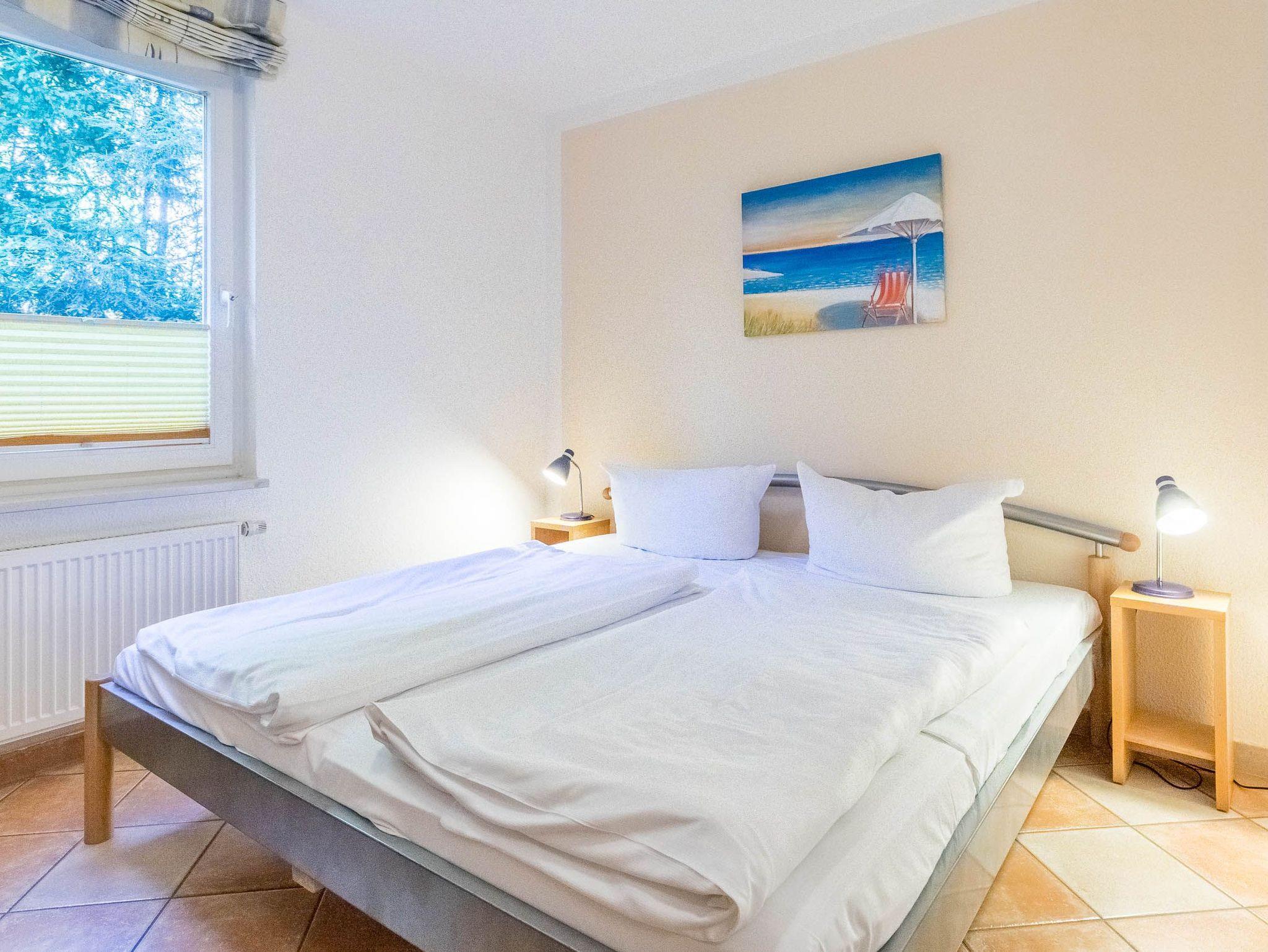 Im Schlafzimmer sorgt ein modernes Doppelbett (180x200cm/ Höhe 44,5cm) für einen erholsamen Schlaf. Das Rollo dunkelt hervorragend ab. Im Kleiderschrank können Sie gern Ihre Urlaubsgarderobe ablegen.