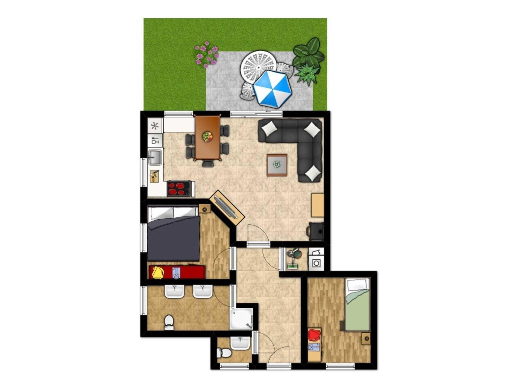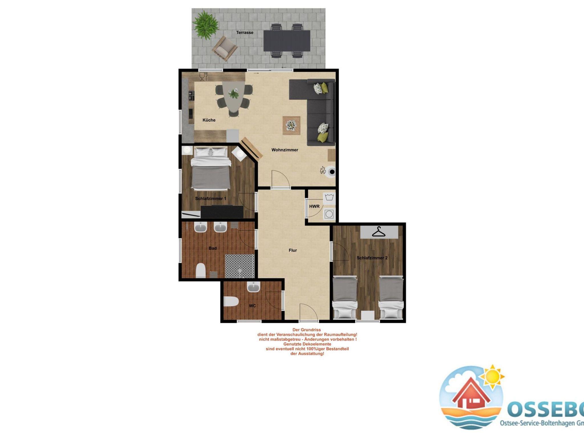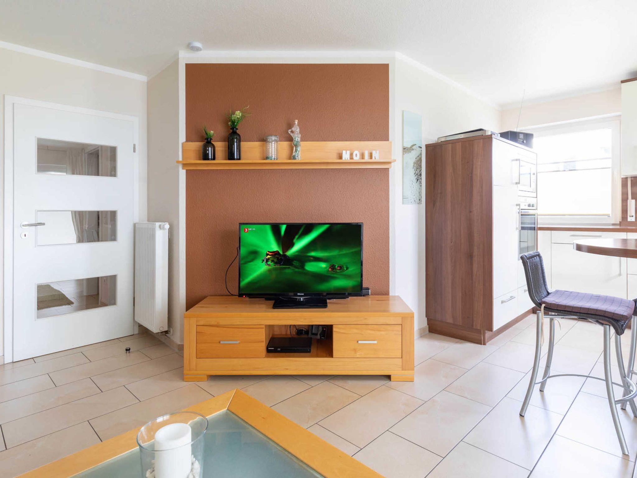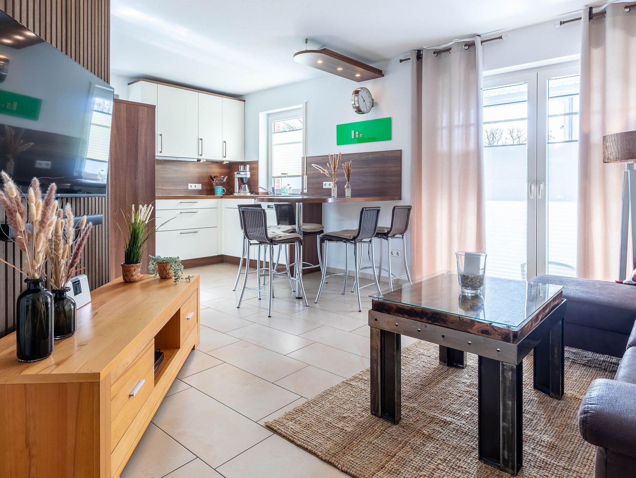 Die Ausstattung für 4 Gäste + Kleinkind und die Lage im Erdgeschoss des Hauses machen diese 3-Zimmer-Ferienwohnung auf 60qm Wohnfläche zugleich kinderfreundlich und seniorengerecht.