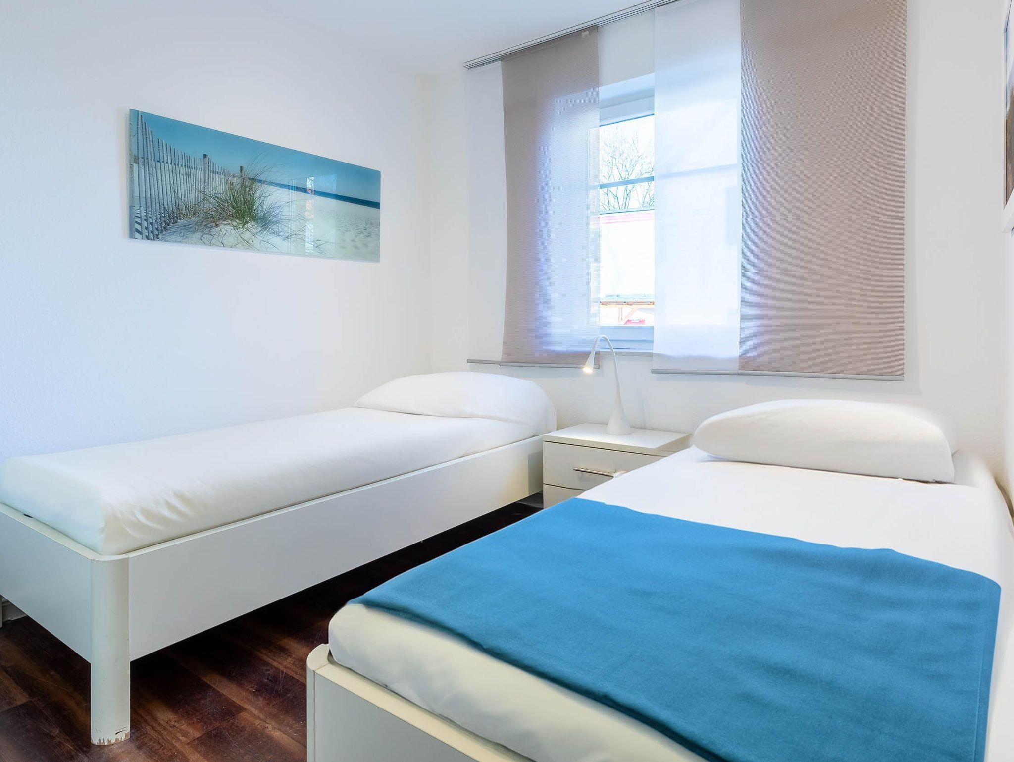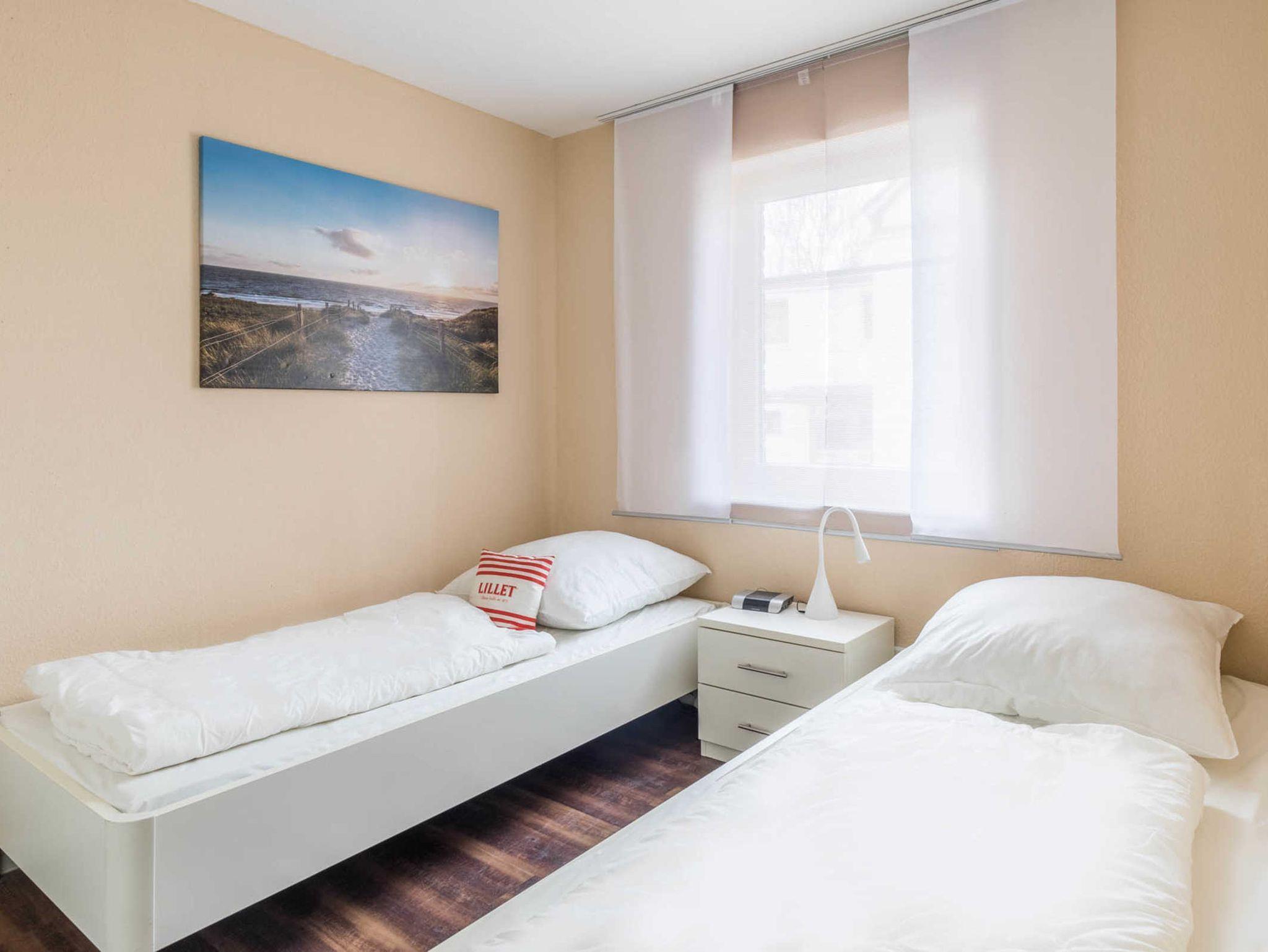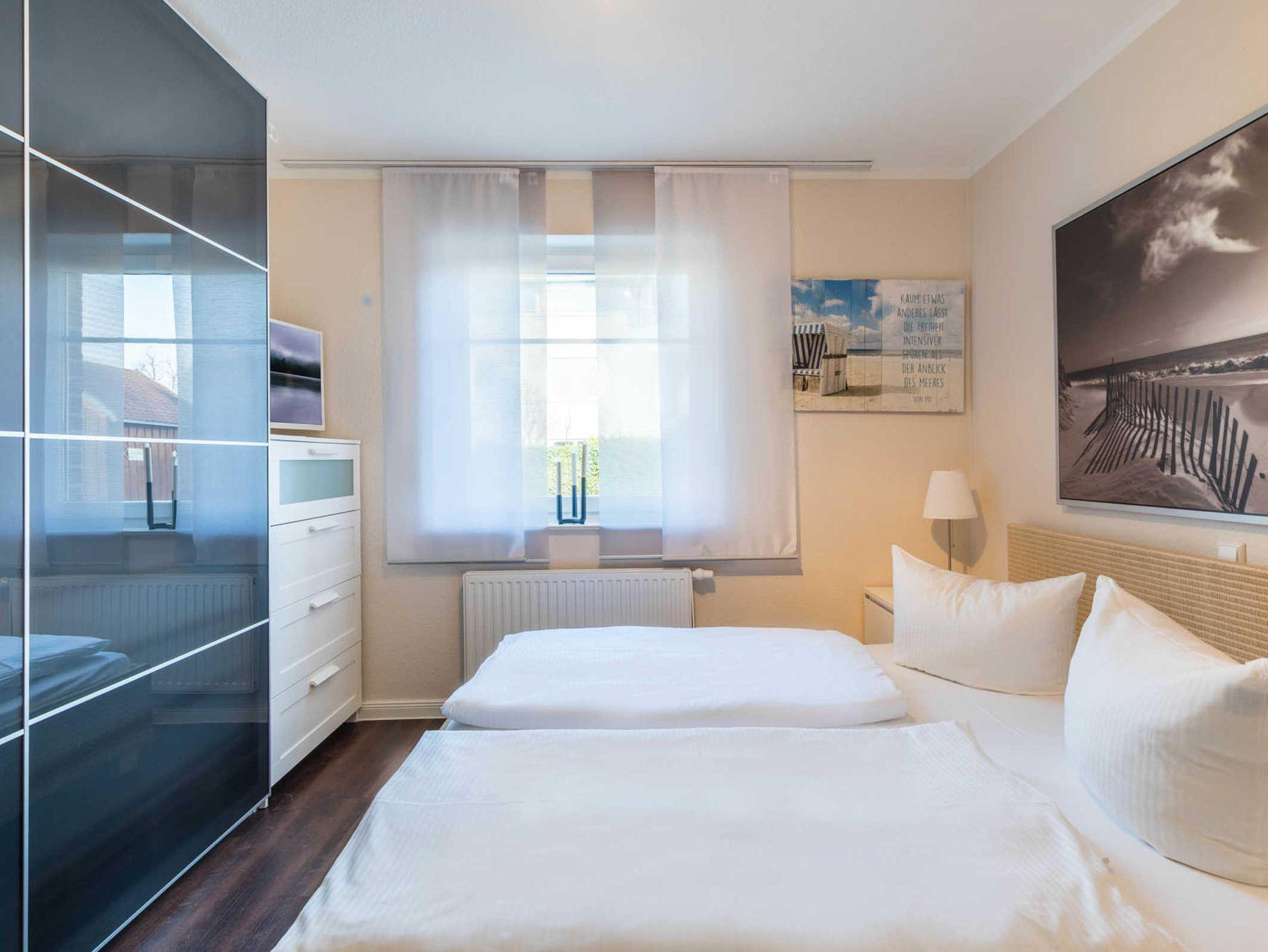 Sie finden hier zwei separate Schlafzimmer vor, davon eins mit Doppelbett und Sat-TV und eins mit zwei Einzelbetten. Beide Zimmer bieten zudem einen großen Kleiderschrank für Ihre Garderobe.