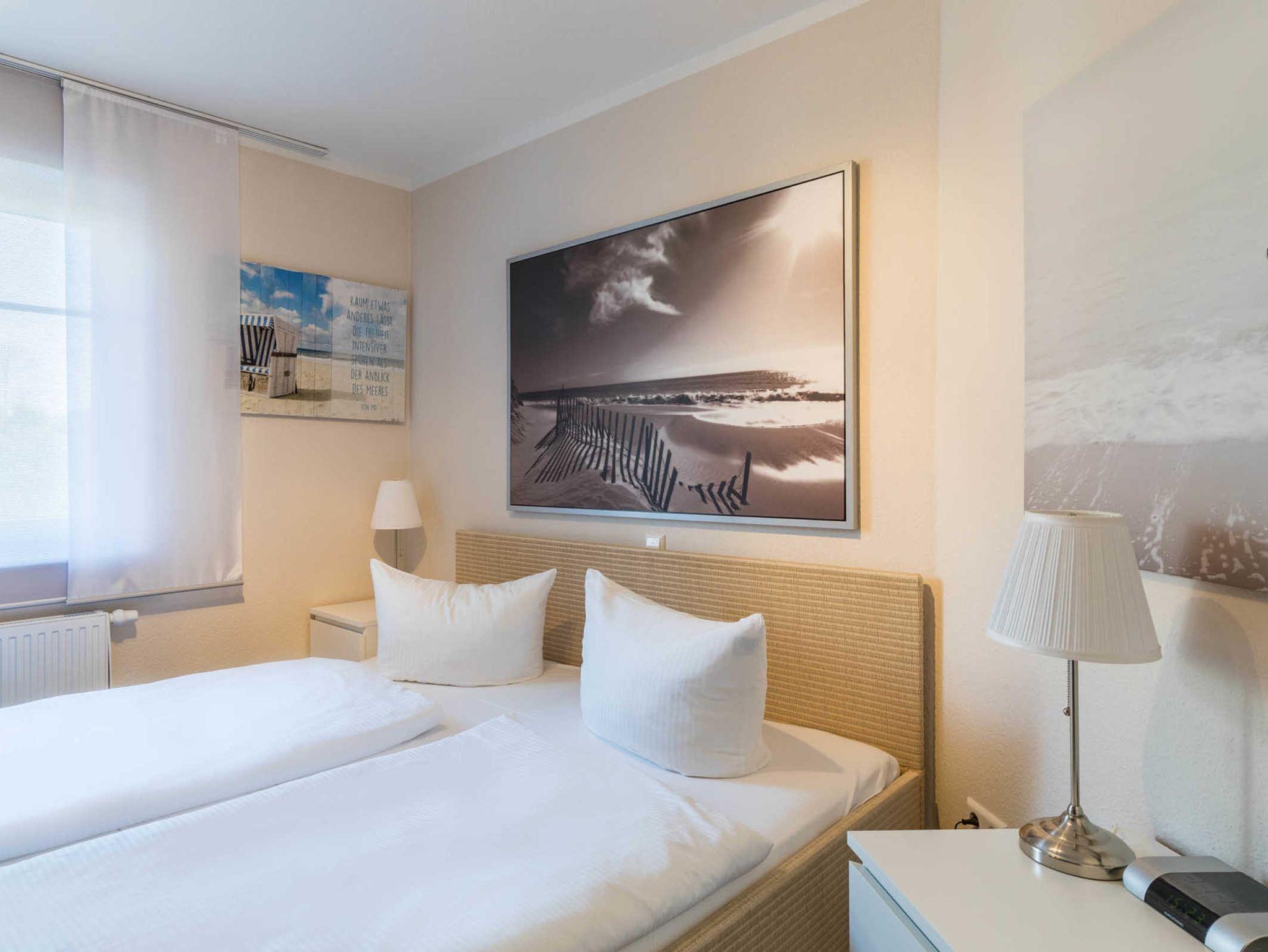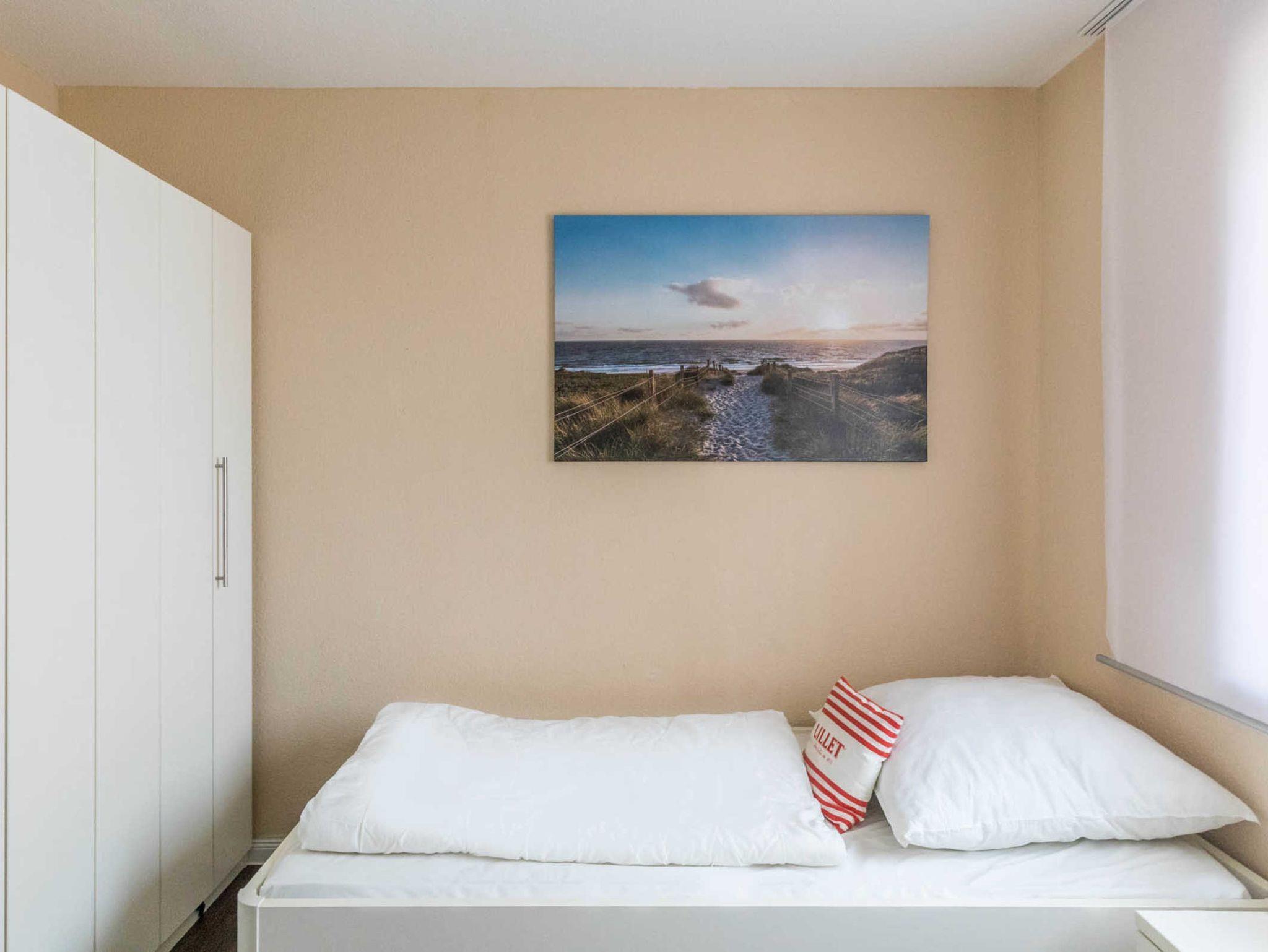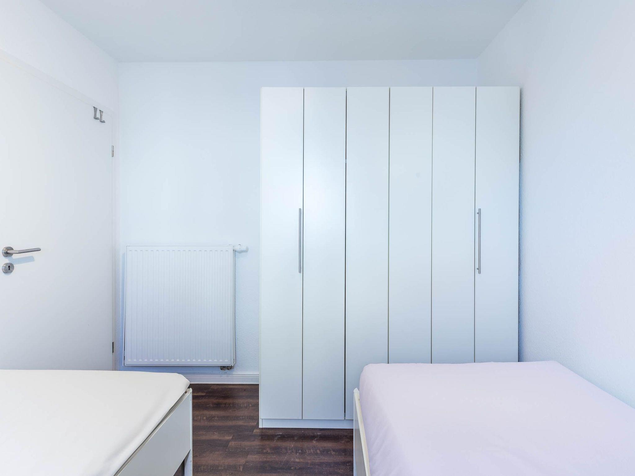 Sie finden hier zwei separate Schlafzimmer vor, davon eins mit Doppelbett und Sat-TV und eins mit zwei Einzelbetten. Beide Zimmer bieten zudem einen großen Kleiderschrank für Ihre Garderobe.