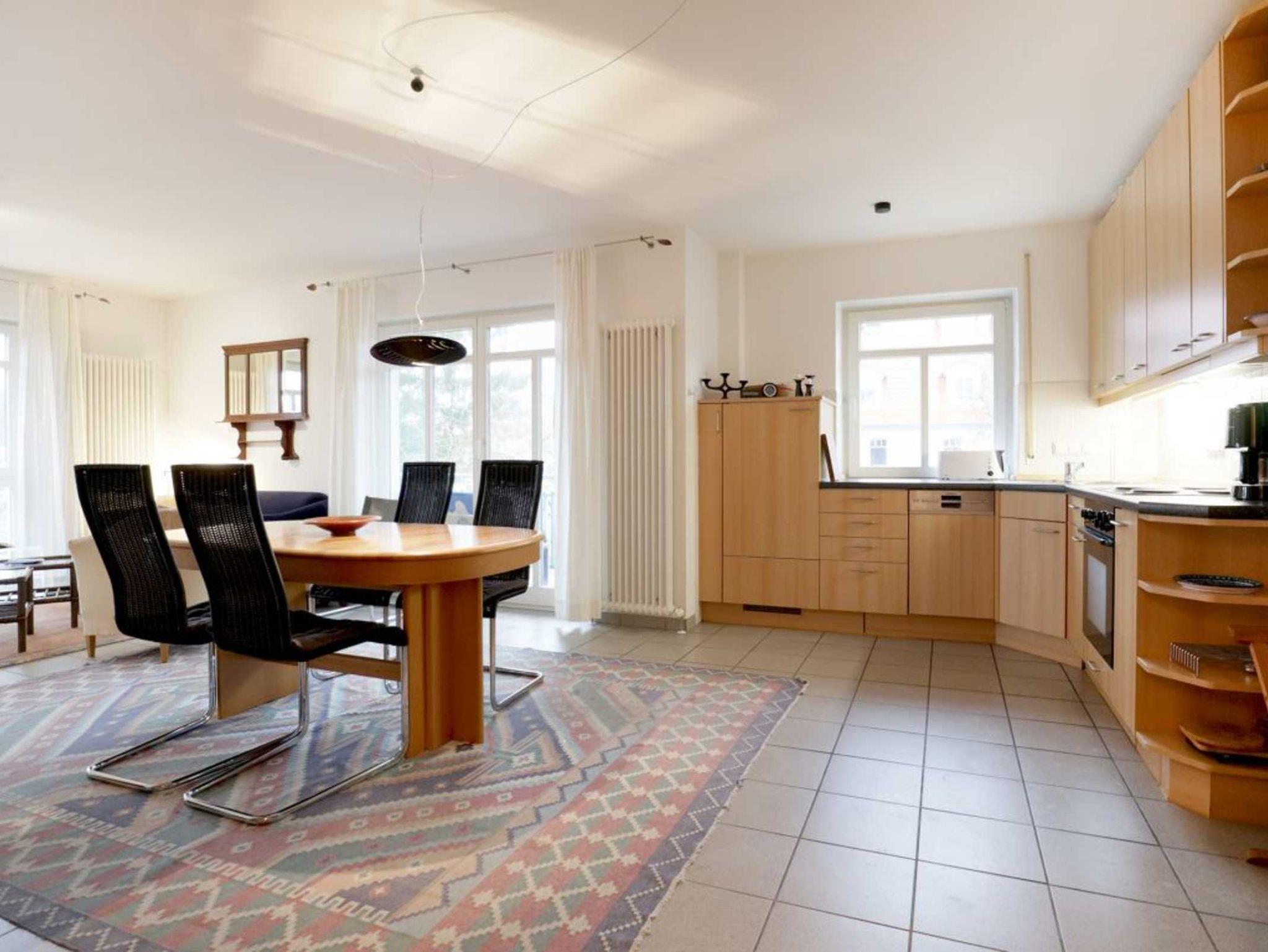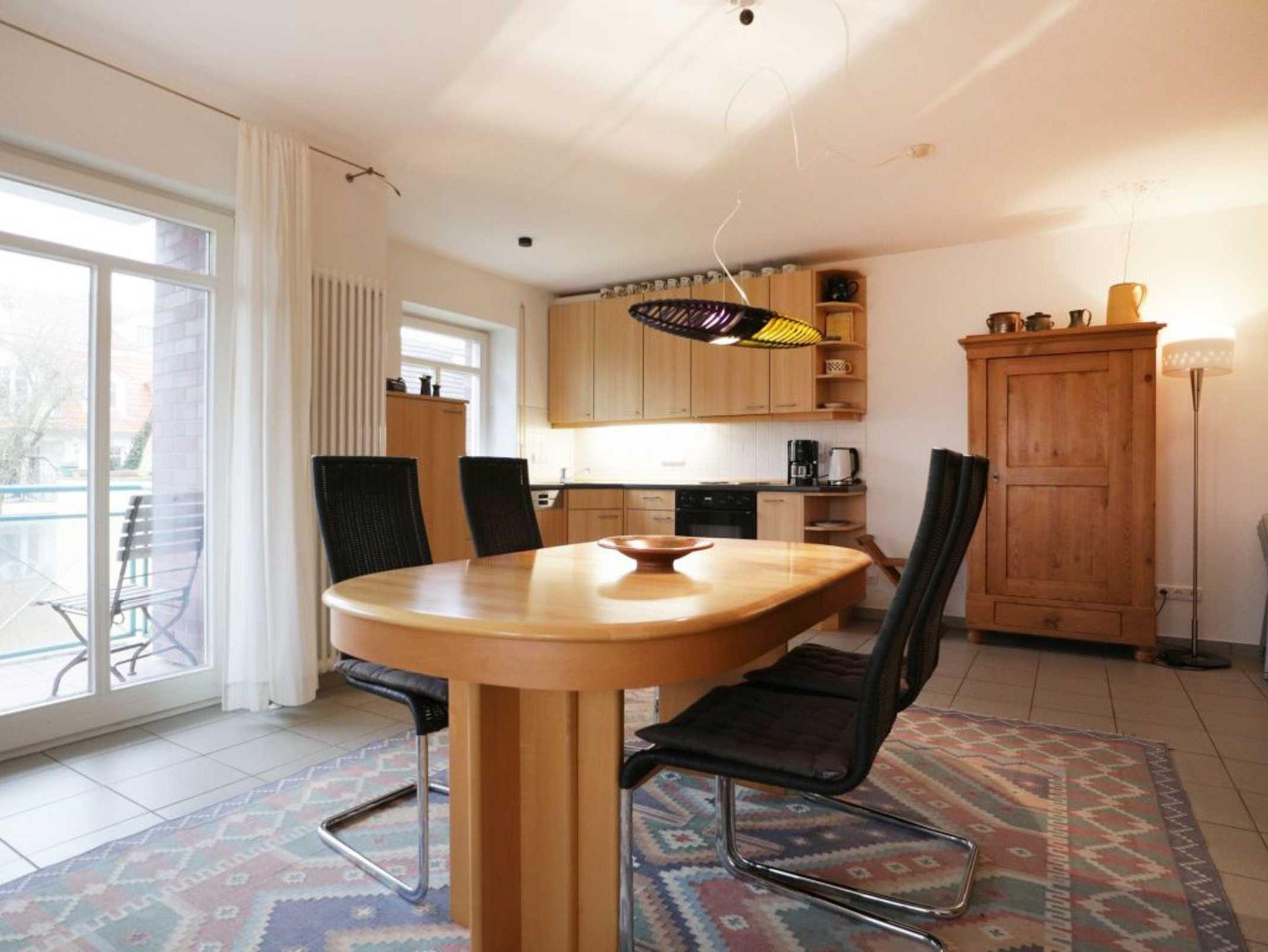 Die 2-Zimmer Ferienwohnung mit Balkon, befindet sich im 1. Obergeschoss des Hauses. Mit einer Wohnfläche von 55qm ist das Appartement für eine Belegung mit max.4Personen eingerichtet. Im Wohnraum erwartet Sie ein Sofa, das einen zusätzlichen Schlafplatz bieten kann. Ebenso ist ein Einzelbett als weitere Schlafgelegenheit im Wohnbereich vorhanden. Ein Fernseher, Musikanlage sowie gebührenfreies WLAN bieten technische Unterhaltung. Für gemeinsame Mahlzeiten befindet sich ein großer Esstisch im Wohnraum, an den eine offene Küchenzeile grenzt: Herd, Backofen, Kühlschrank mit integr. Frostfach, Toaster, Kaffeemaschine, Wasserkocher usw laden zum Kochen ein. Auf dem saisonal möblierten Nord- West Balkon können Sie Entspannen. Sie schlafen in einem separaten Schlafzimmer mit Doppelbett. Ein großzügiger Kleiderschrank bietet viel Platz für Ihre Urlaubgarderobe. Zugehörig ist ein hell gefliestes Duschbad mit Waschtisch, Handtuchheizung, Föhn, WC. Vorteilhaft ist ein weiteres Gäste-WC in der Wohnung. Waschmaschine und Wäschetrockner können im Haus gemeinschaftlich ? Münzbetrieb- genutzt werden. Zur Wohnungsausstattung gehören auch Bügeleisen und Bügelbrett.