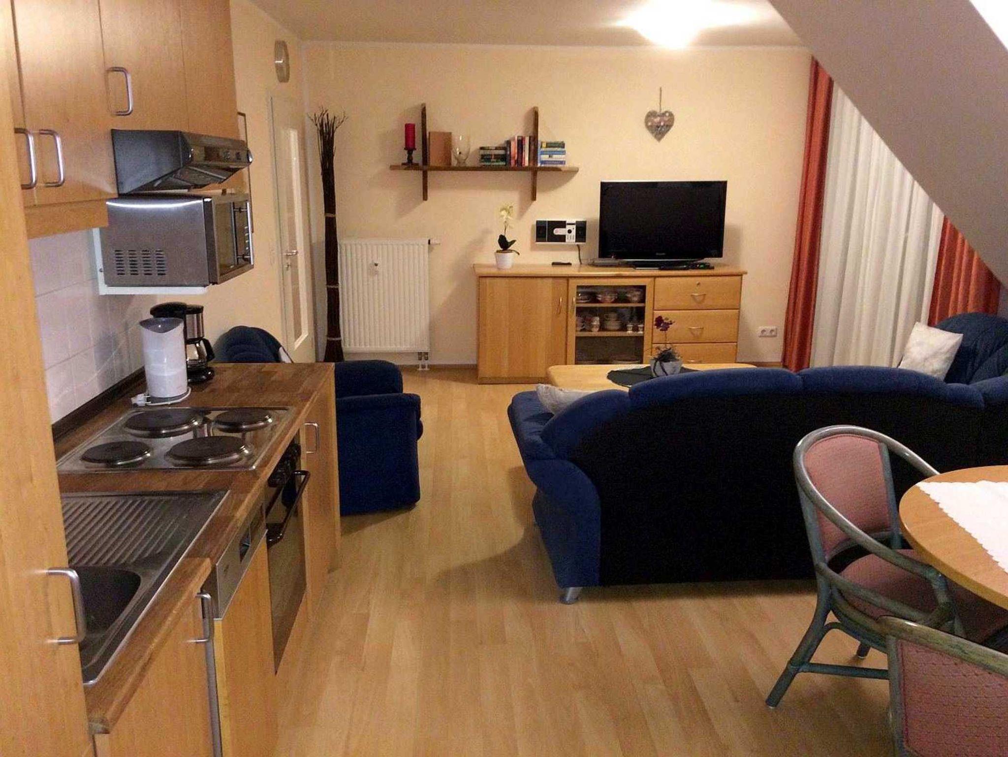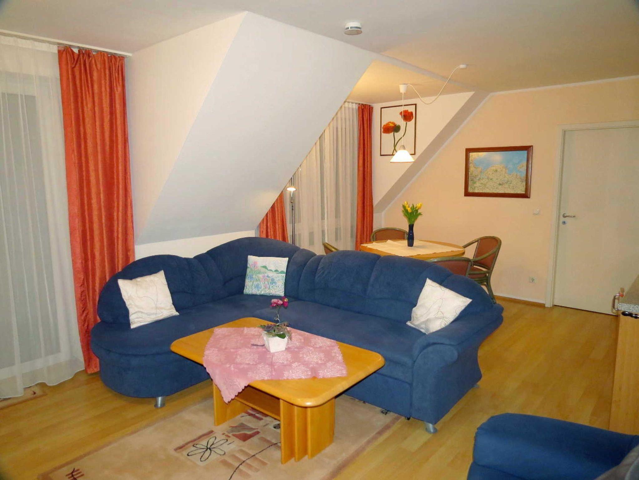 Im Wohnzimmer können Sie es sich in der Polsterecke oder einem bequemen Sessel gemütlich machen und auf dem LCD-TV oder mit kostenfreiem Sky-TV entspannen. Die Polsterecke lässt sich bei Bedarf zu einer Liegefläche von ca. 190 x 130 cm umbauen. Vor einem großen Fenster bietet der Essbereich ausreichend Platz für bis zu 4 Personen. Die Küchenzeile ist voll ausgestattet ? inklusive Spülmaschine, Kühlschrank mit Tiefkühlfach und allen Utensilien für die Zubereitung Ihrer Mahlzeiten.