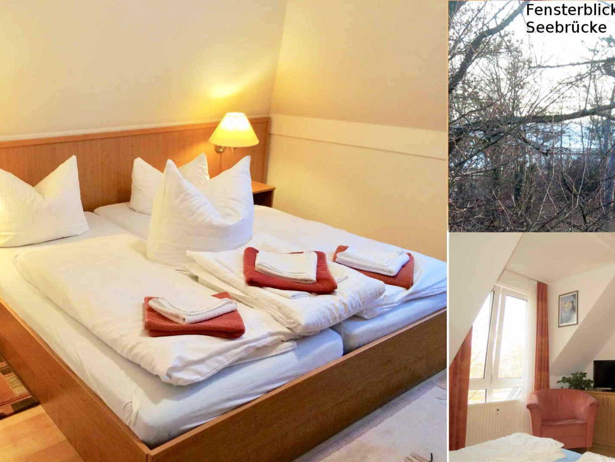 Das Schlafzimmer bietet ein Doppelbett (2 x 200 x 90 cm) für erholsamen Schlaf sowie einen Flachbild-TV. Durch das nach Norden gelegene Fenster bleibt das Zimmer auch an warmen Sommertagen angenehm kühl.