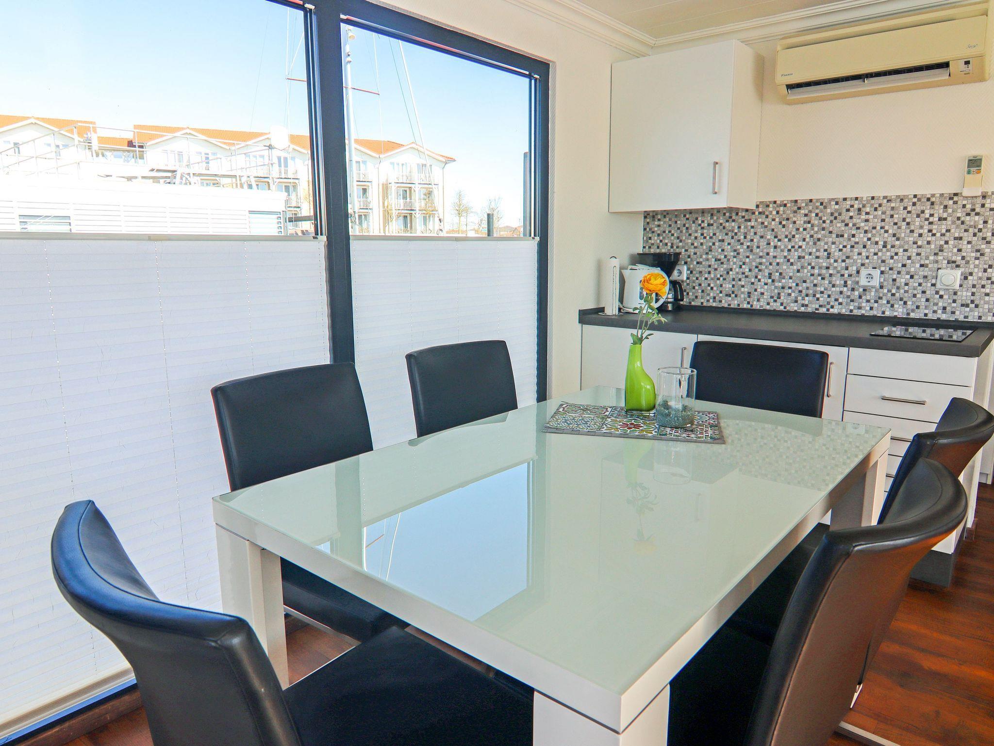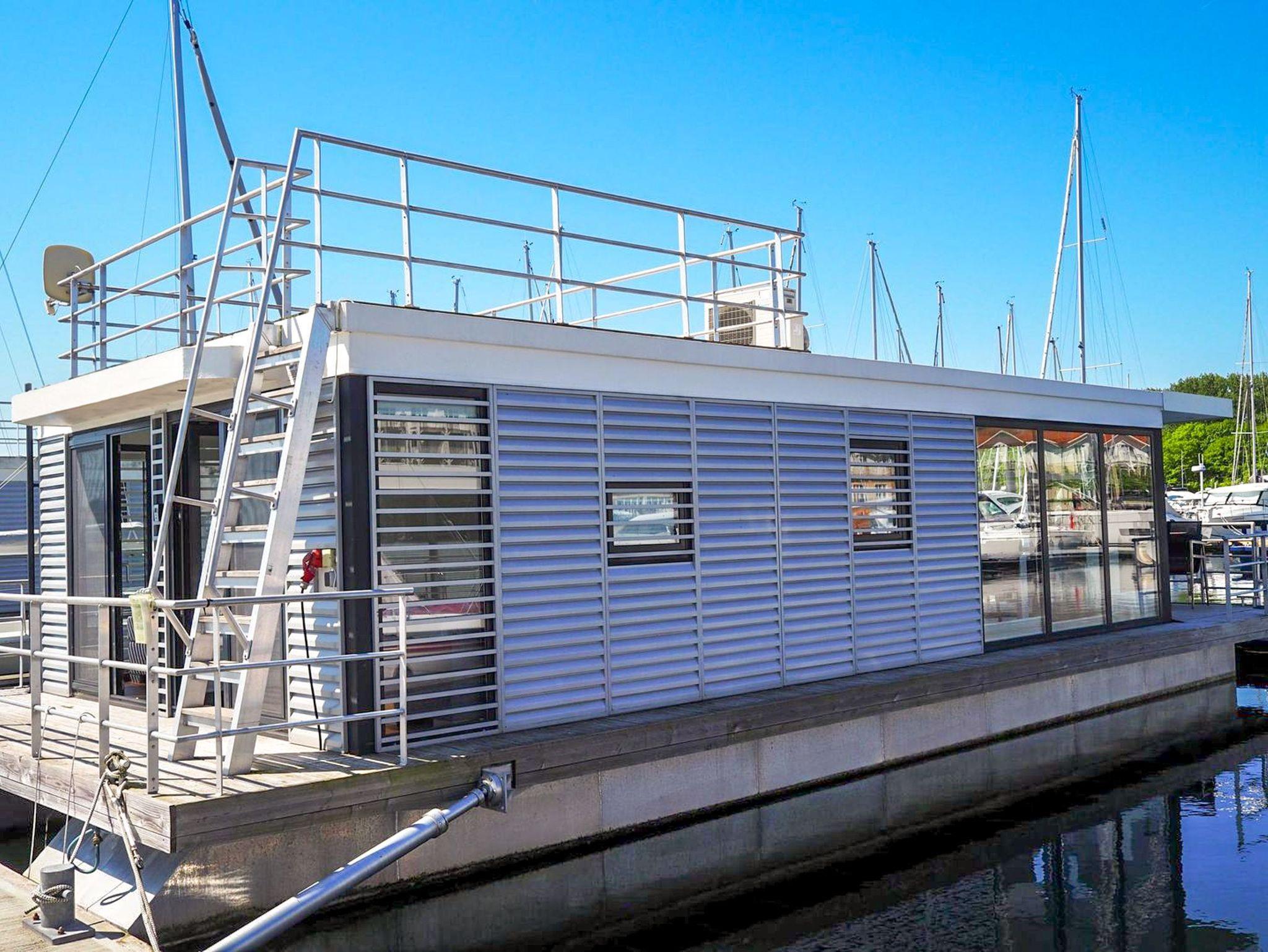 Floating House 2 im Ostseebad Boltenhagen ist das perfekte Zuhause auf Zeit für alle, die Urlaub direkt auf dem Wasser lieben. Das festliegende Hausboot bietet Platz für bis zu 4 Personen und verbindet das besondere Lebensgefühl eines Bootes mit dem Komfort eines modernen Ferienhauses alles auf einer Ebene, hell, stilvoll und wunderbar entspannt. Der großzügige Wohnbereich ist offen gestaltet und lädt zum Ankommen und Wohlfühlen ein. Eine gemütliche Eck-Couch, ein großer Esstisch und weite Fensterfronten bringen das Licht und die Umgebung direkt ins Innere. Die angrenzende Küche ist funktional und voll ausgestattet: mit Spülmaschine, Kühlschrank, Mikrowelle, Kaffeemaschine, Toaster, Wasserkocher und allem, was du brauchst, um dich auch kulinarisch wie zuhause zu fühlen. Für erholsame Nächte und genügend Platz für deine Souvenirs stehen dir zwei separate Schlafzimmer mit Doppelbetten (160x200) und Kleiderschränken zur Verfügung. Ein modernes Duschbad sowie ein separates WC mit Waschtisch sorgen für Komfort und Privatsphäre ganz egal ob ihr zu zweit oder zu viert unterwegs seid. Draußen warten gleich zwei besondere Rückzugsorte: eine 15m² große Terrasse am Bug mit Sitzmöbeln für dein Frühstück an der frischen Luft und eine 25m² Dachterrasse mit weitem Blick perfekt für Sonnenanbeter, Leseratten oder Träumer. Für das passende Klima sorgt eine Klimaanlage mit Warmluftfunktion, außerdem gibt es Smart-TV, Radio und CD-Player an Bord. WLAN steht über das Hafennetz zur Verfügung und ein kostenfreier Parkplatz in der Nähe des Hafens ist ebenfalls inklusive.