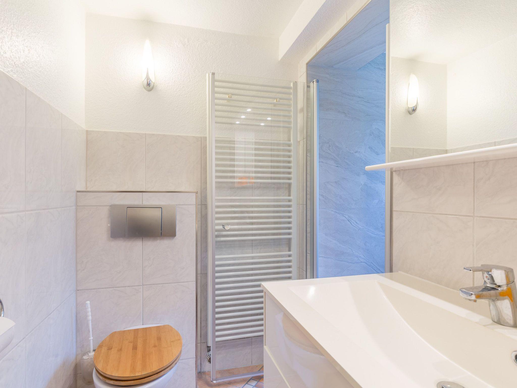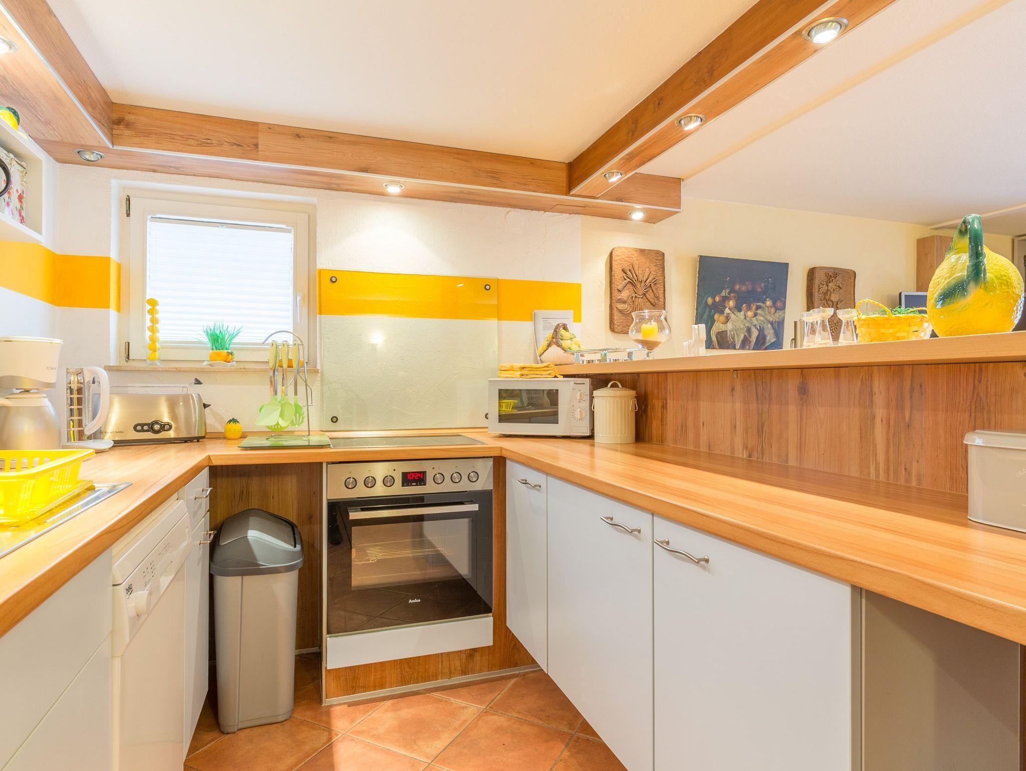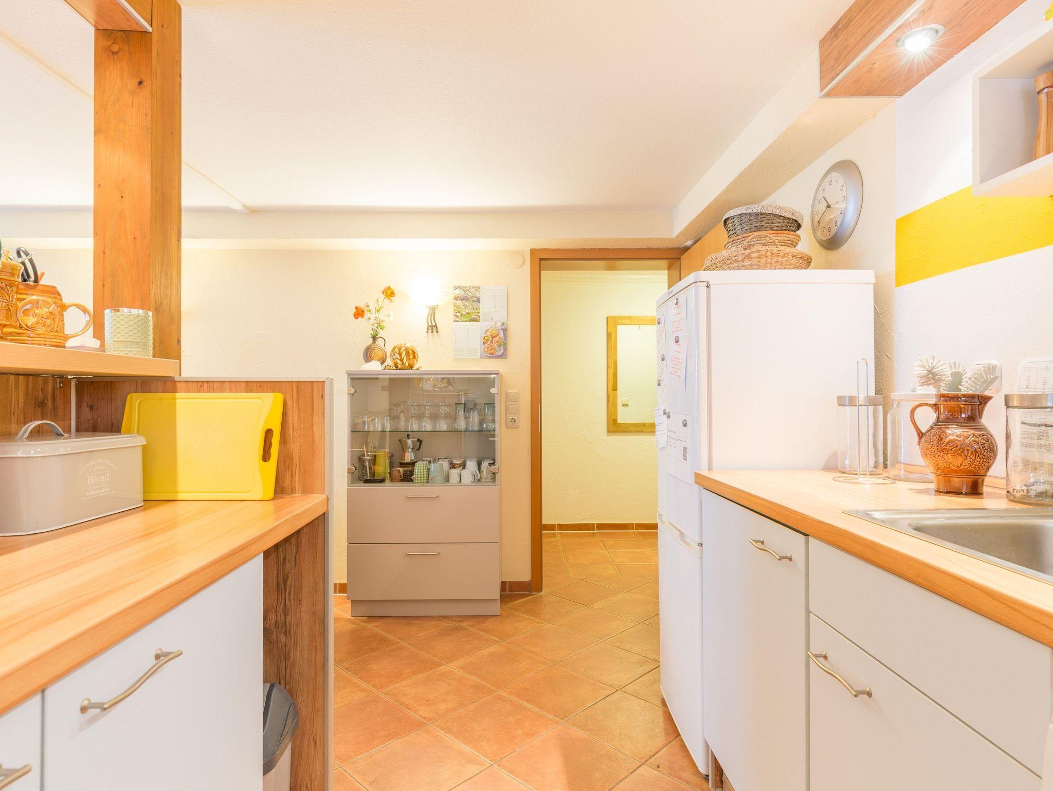 Die Ferienwohnung im Haus Sterntaucher bietet Platz im Erdgeschoss /Untergeschoss mit ein paar flachen Stufen absteigend für maximal 4 Personen. Ein großzügiger Wohn-Essbereich mit integrierter Küche lädt zum Wohlfühlen ein.