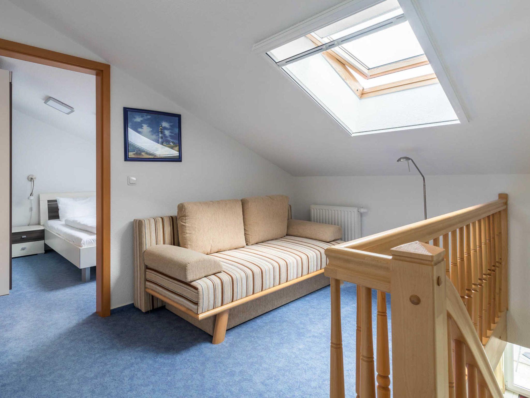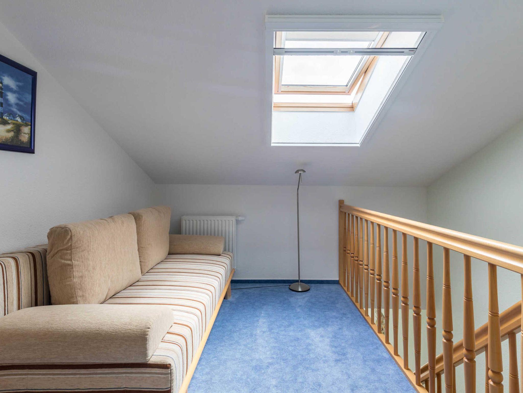 In der zweiten Wohnebene, im DG finden Sie eine offene Galerie mit Schlafcouch, die im ausgezogenen Zustand für zwei weitere Personen fungieren kann.