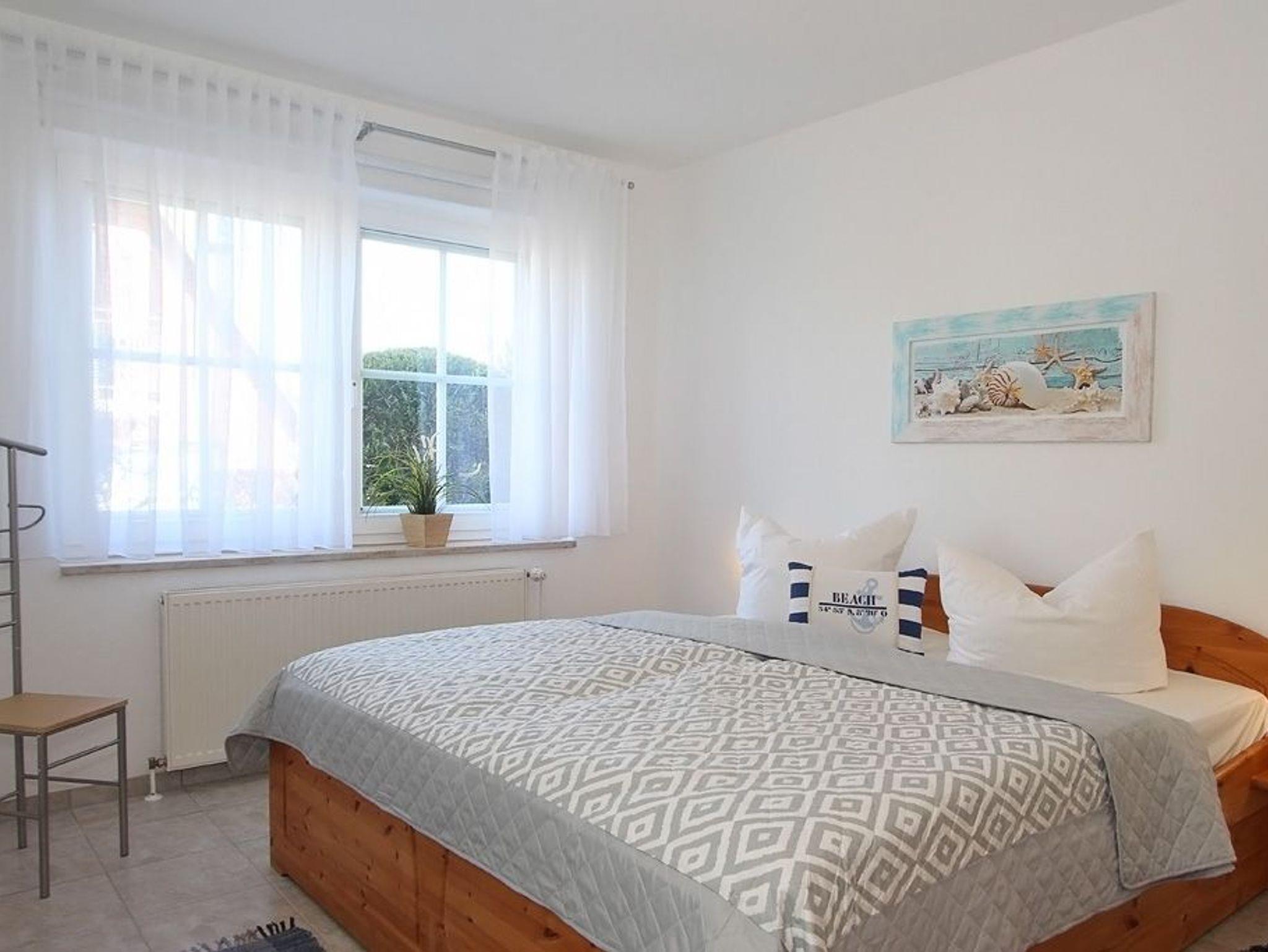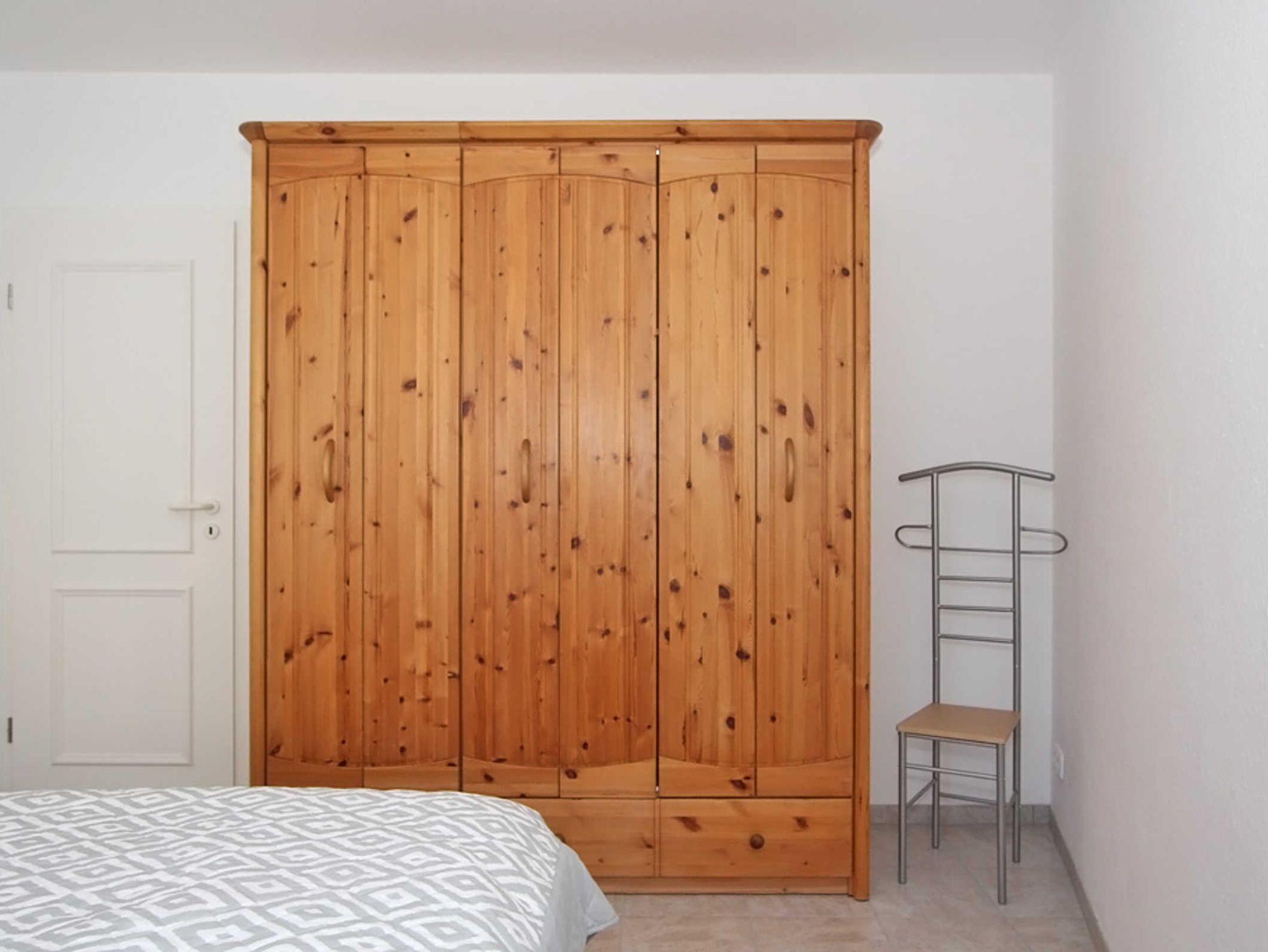 Im Schlafzimmer treffen Sie auf ein Doppelbett und auf einen Kleiderschrank für Ihre Urlaubsgarderobe.