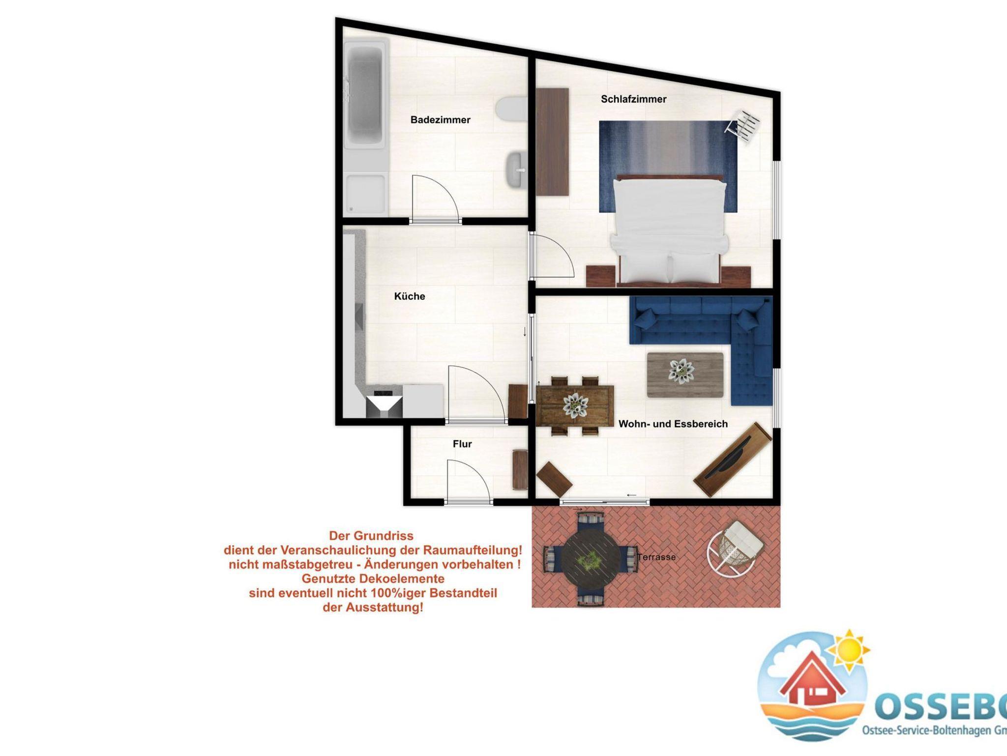 Gemütliche 2-Zimmer-Ferienwohnung mit Terrasse im Ferienparadies Jenny an der Ostsee in Boltenhagen.