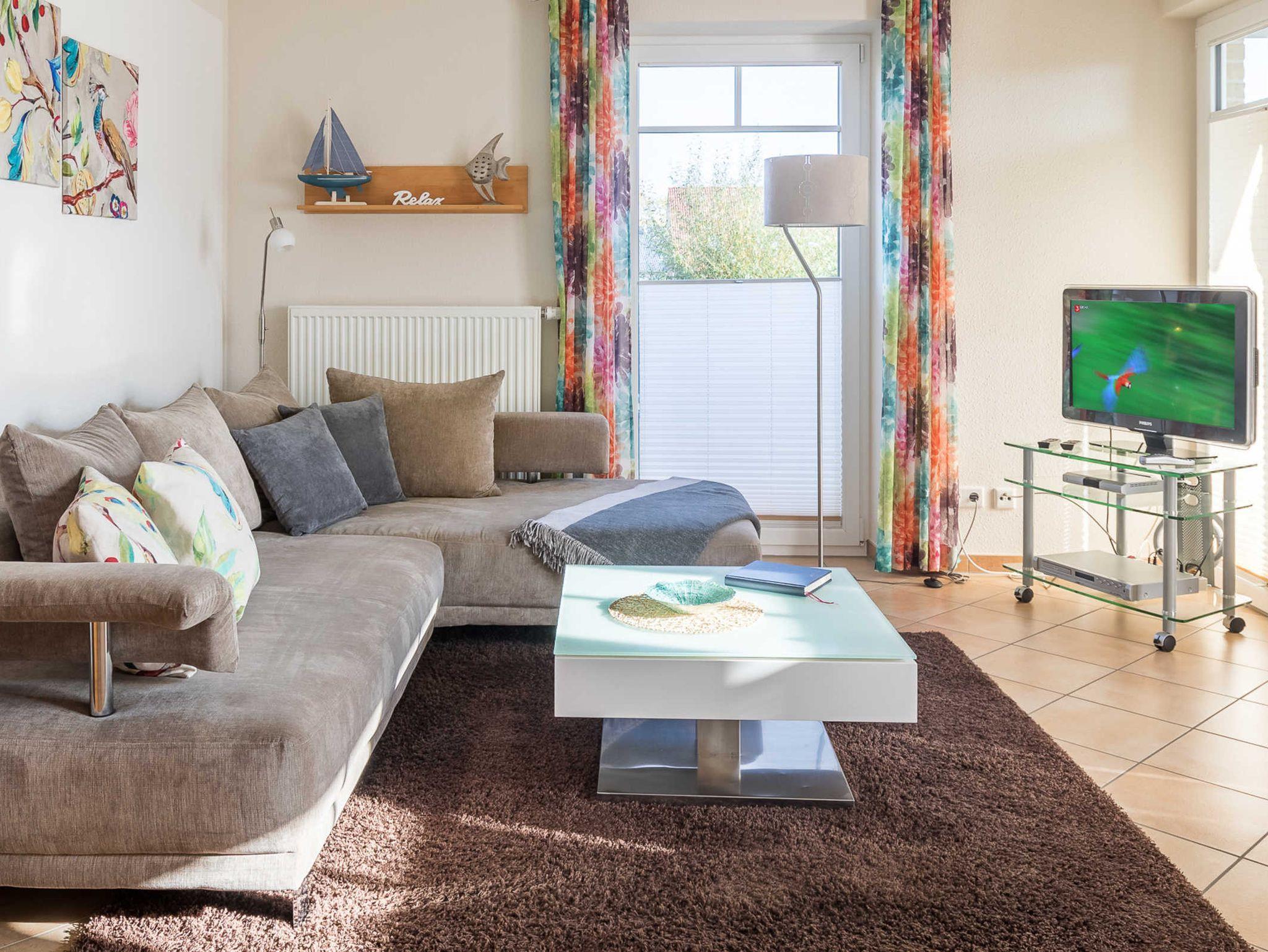 In dieser 3-Zimmer-Wohnung im EG können Sie auf rund 68qm Wohnfläche herrlich mit bis zu 4 Gästen + Kleinkind Ihren Ostseeurlaub verbringen.