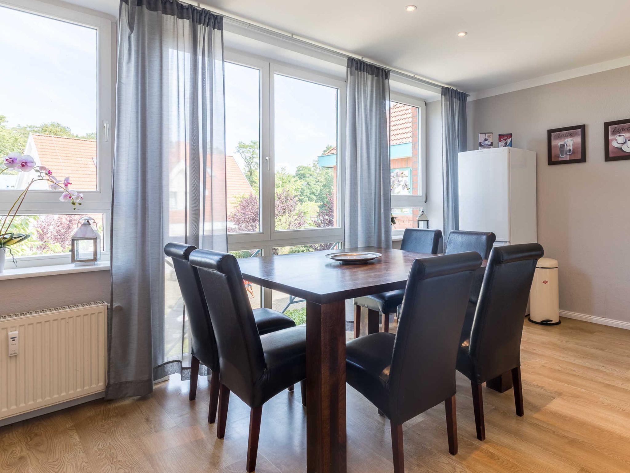 In dieser zum Innenhof gelegenen 4-Zimmer-Wohnung im 1.OG können auf großzügigen 123qm Wohnfläche bis zu 6 Gäste + Kleinkind ihren Urlaub genießen.