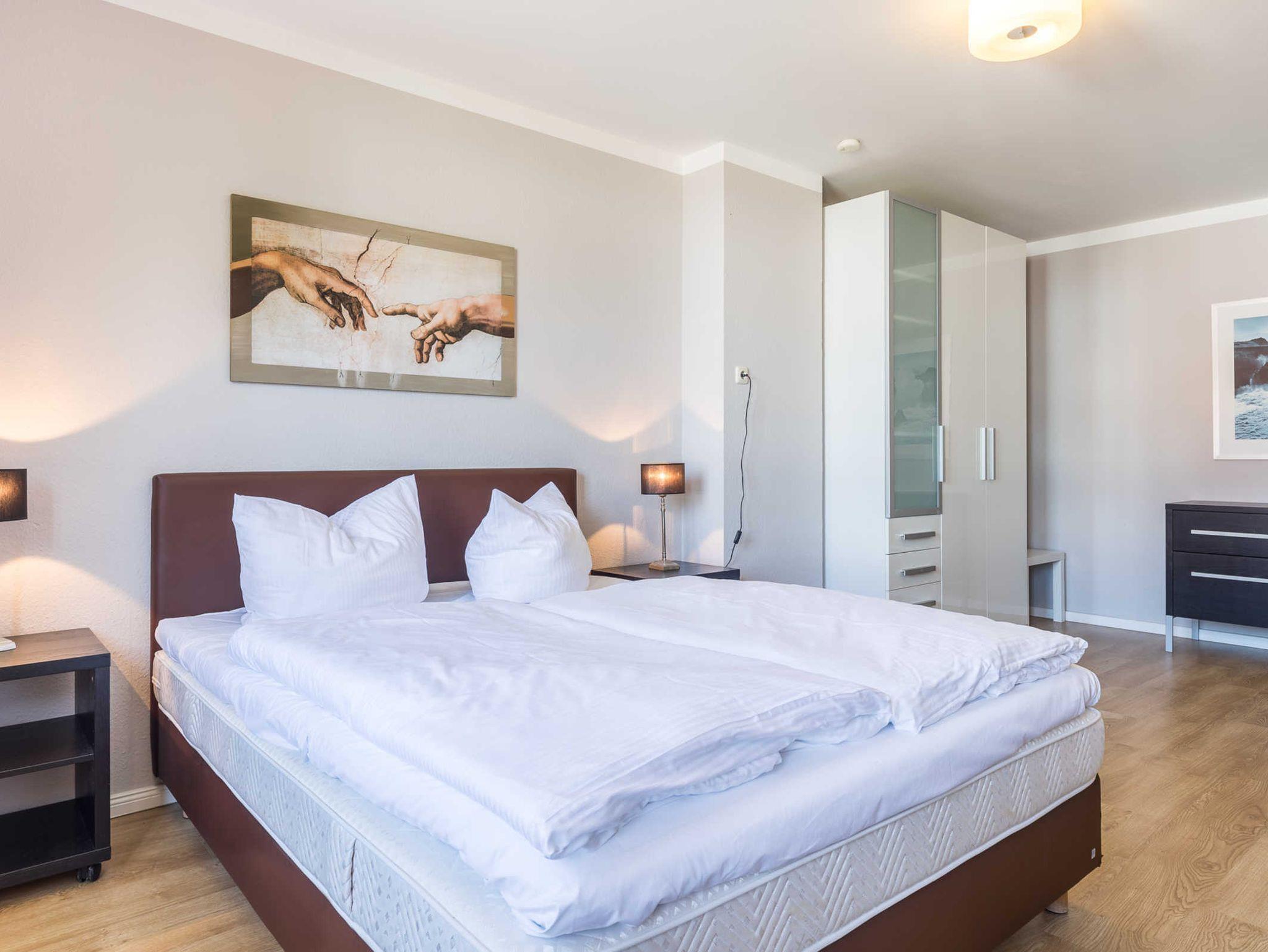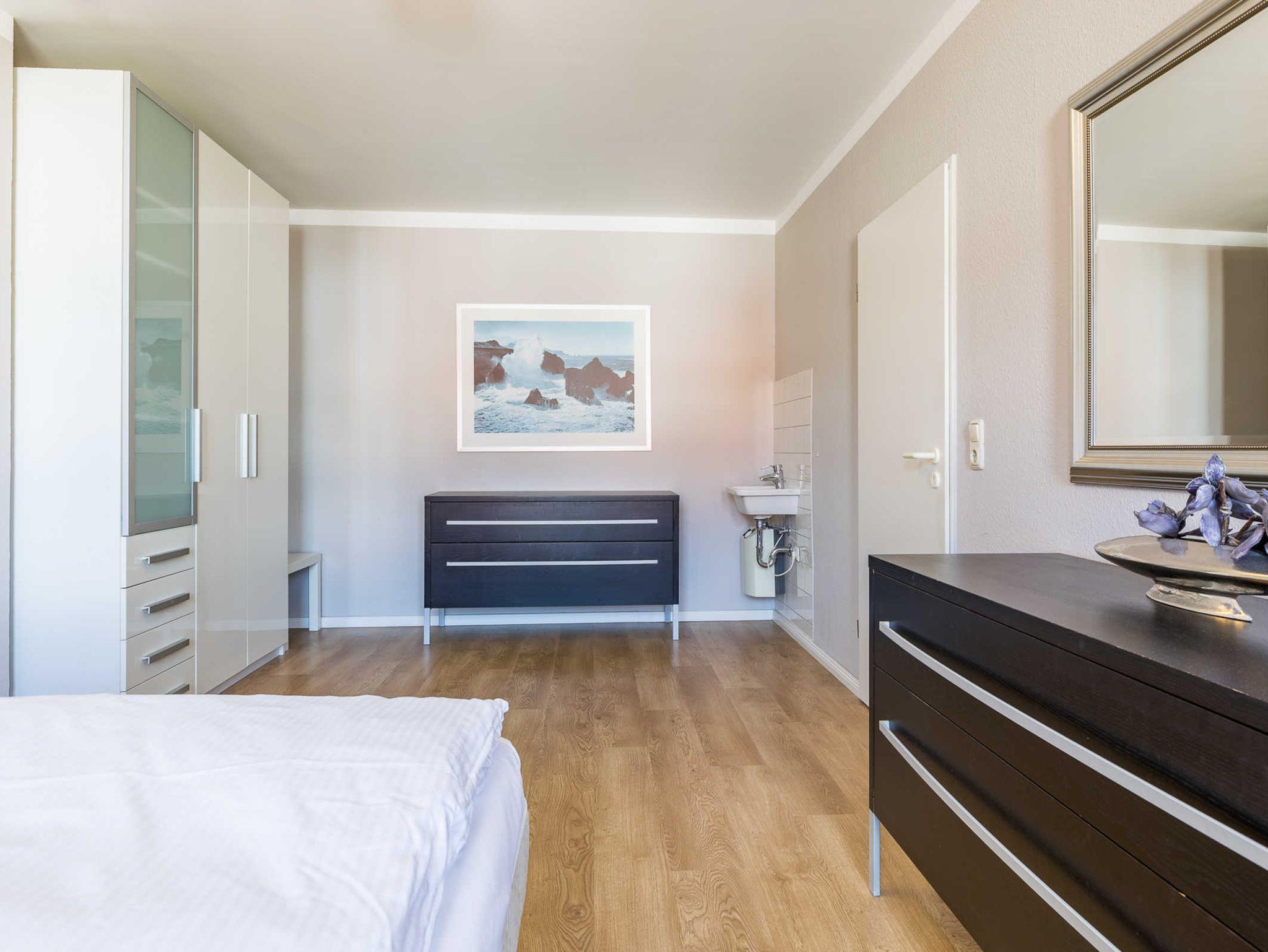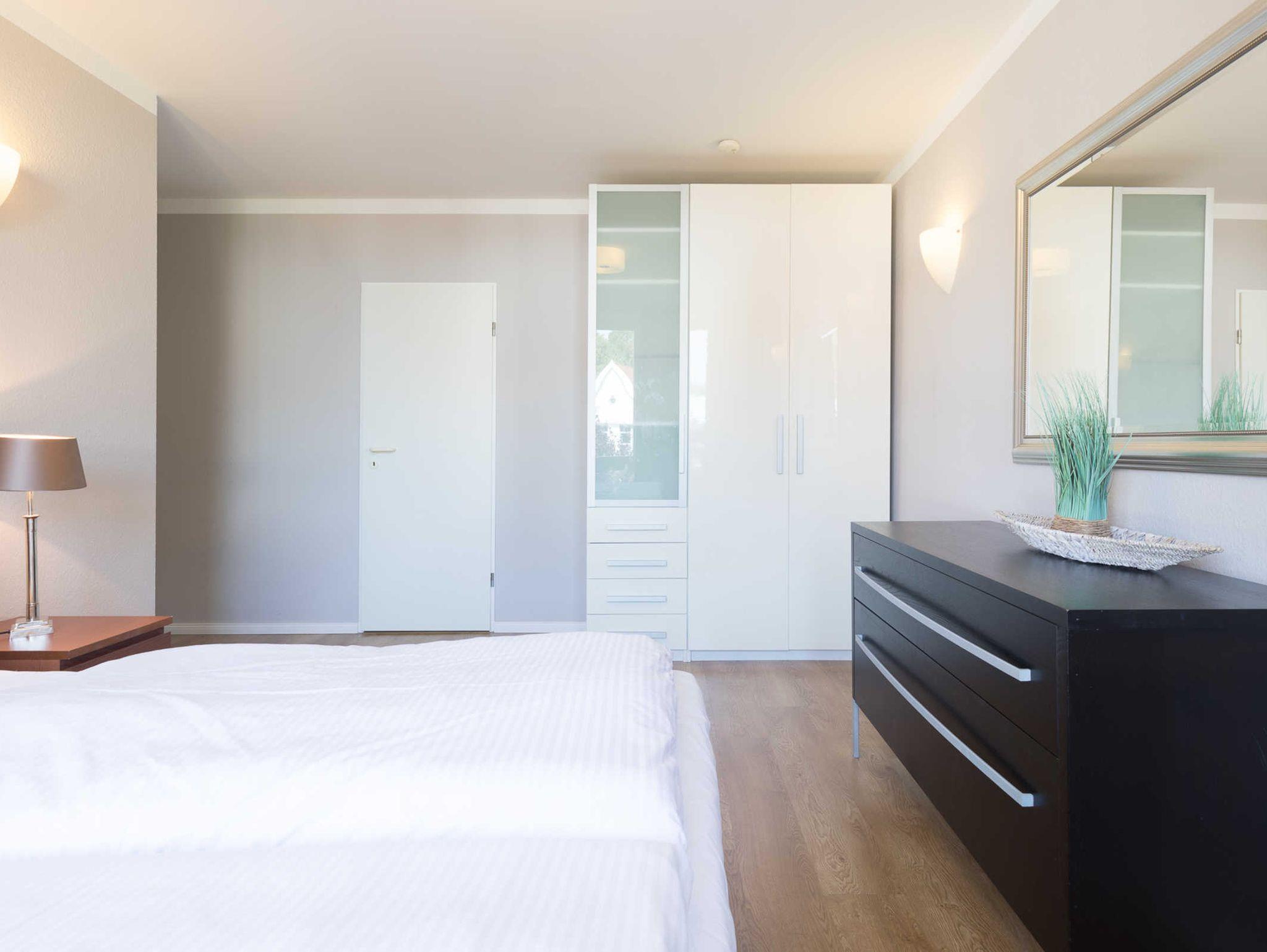 Alle drei Schlafzimmer sind jeweils mit einem Doppelbett (2 Doppelbetten 160x200 und 1 Doppelbett 180x200) sowie z.T. mit Kleiderschrank und/ oder Kommoden ausgestattet.