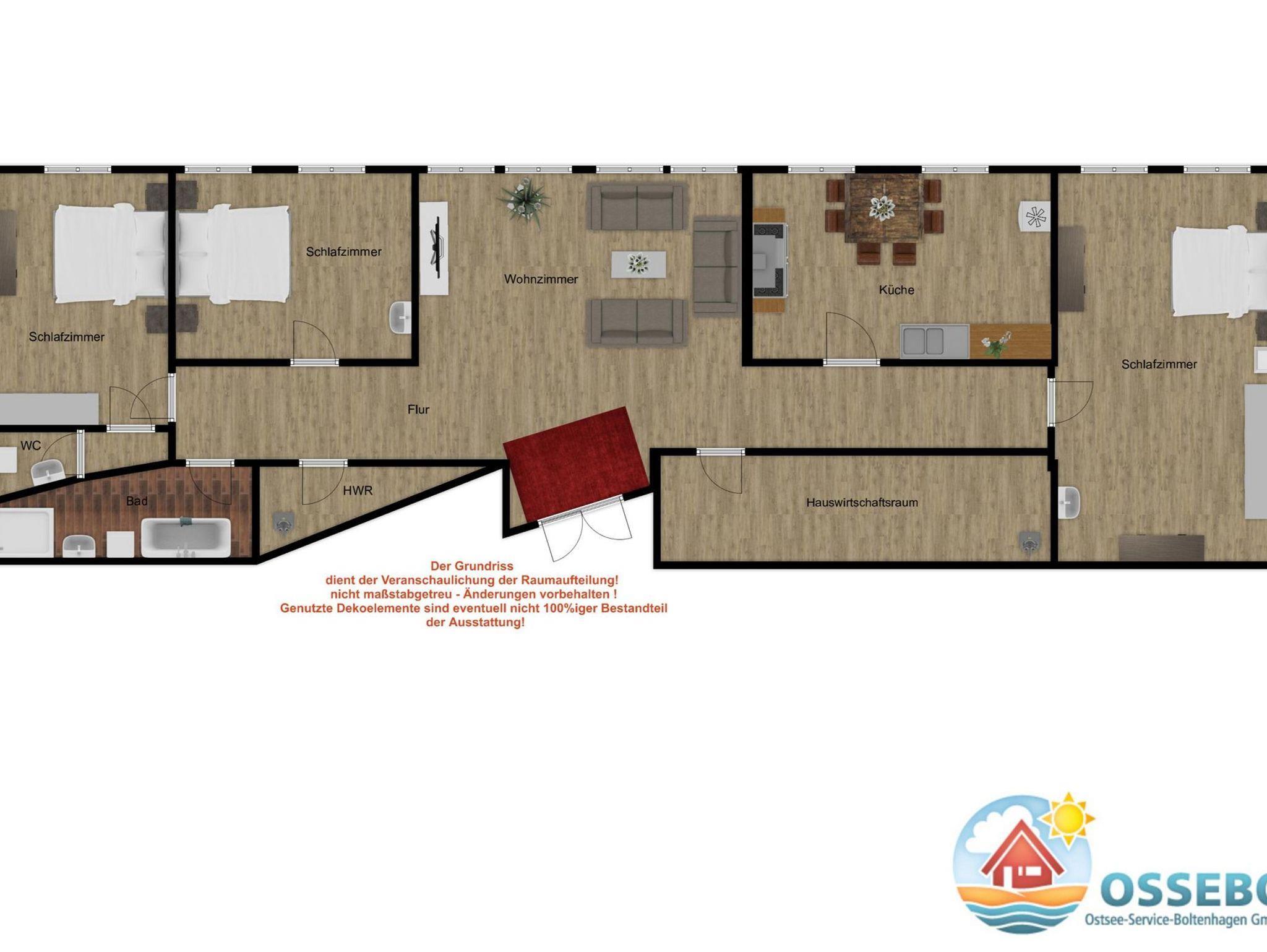 Diese 4-Zimmer-Ferienwohnung mit drei eigenen Schlafzimmern ist ideal für einen Urlaub mit der gesamten Familie in Boltenhagen Zentrum an der Ostsee.