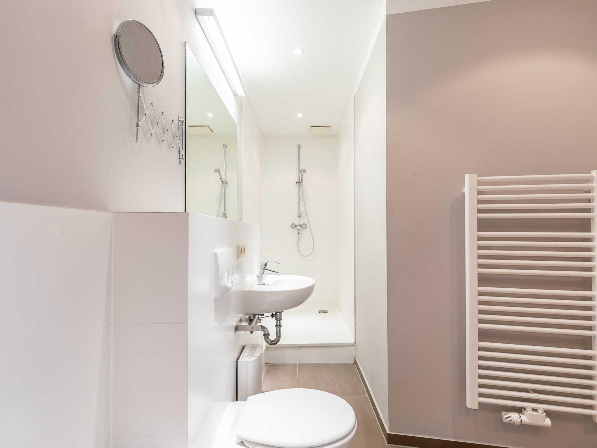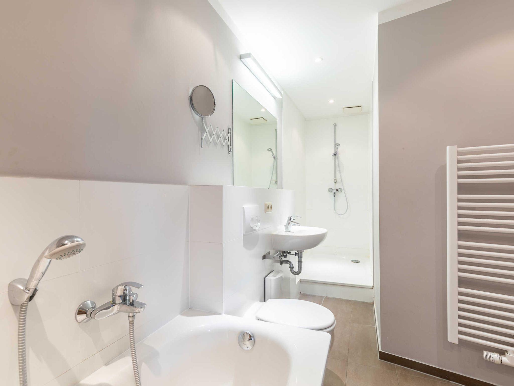 Das Vollbad mit Dusche, Badewanne, WC sowie das zusätzliche separate Gäste-WC komplettieren die Unterkunft.