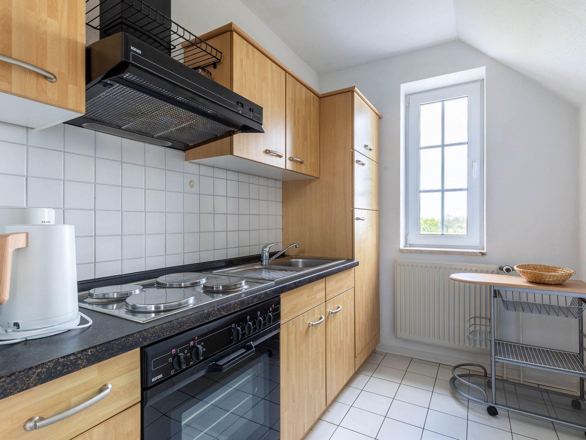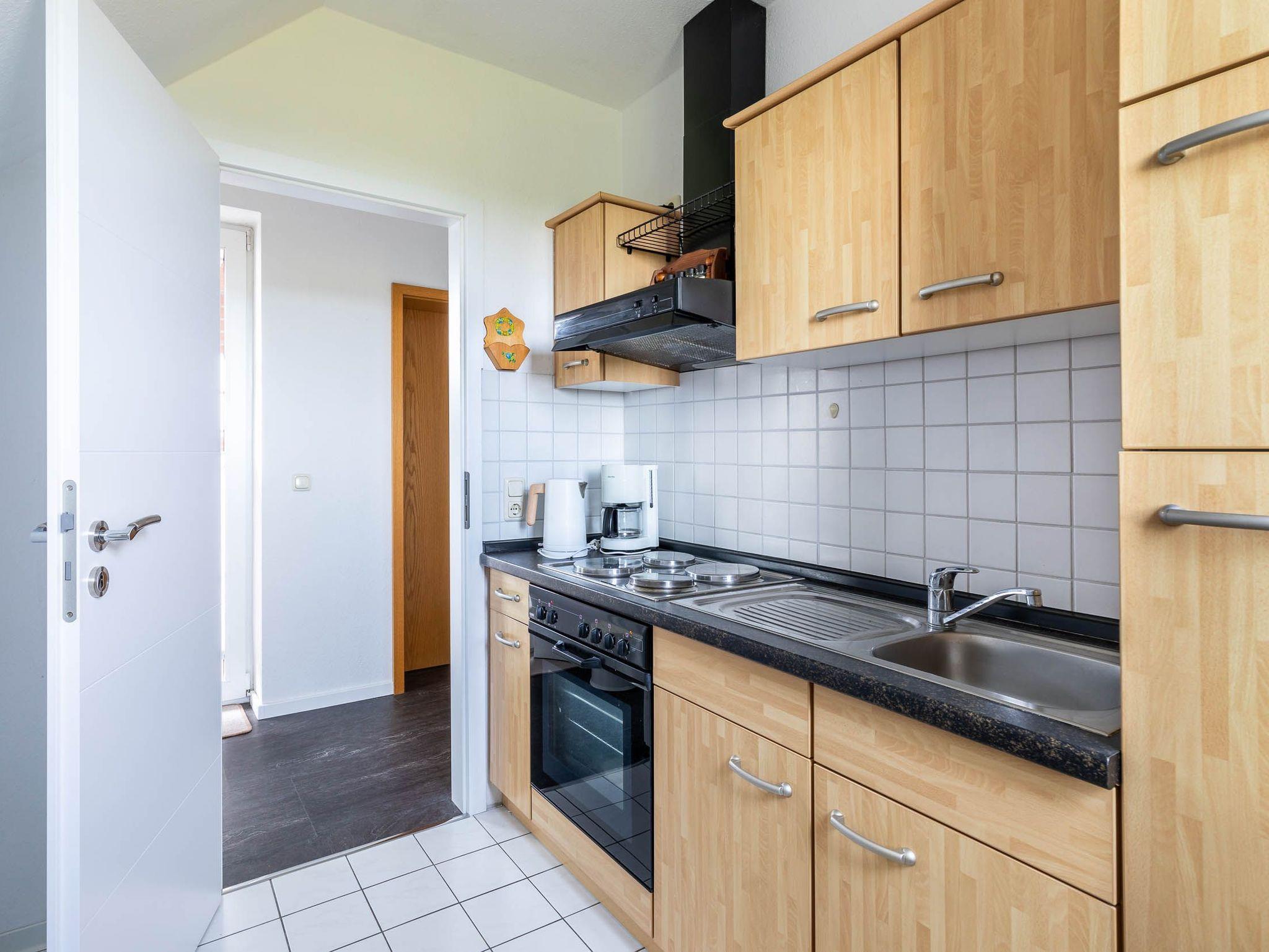 Die Küche ist komplett und zeitgemäß ausgestattet und sorgt für eine problemlose Selbstversorgungsmöglichkeit. So finden Sie hier neben einem Wasserkocher, einer Kaffeemaschine, Herd und Kühlschrank.