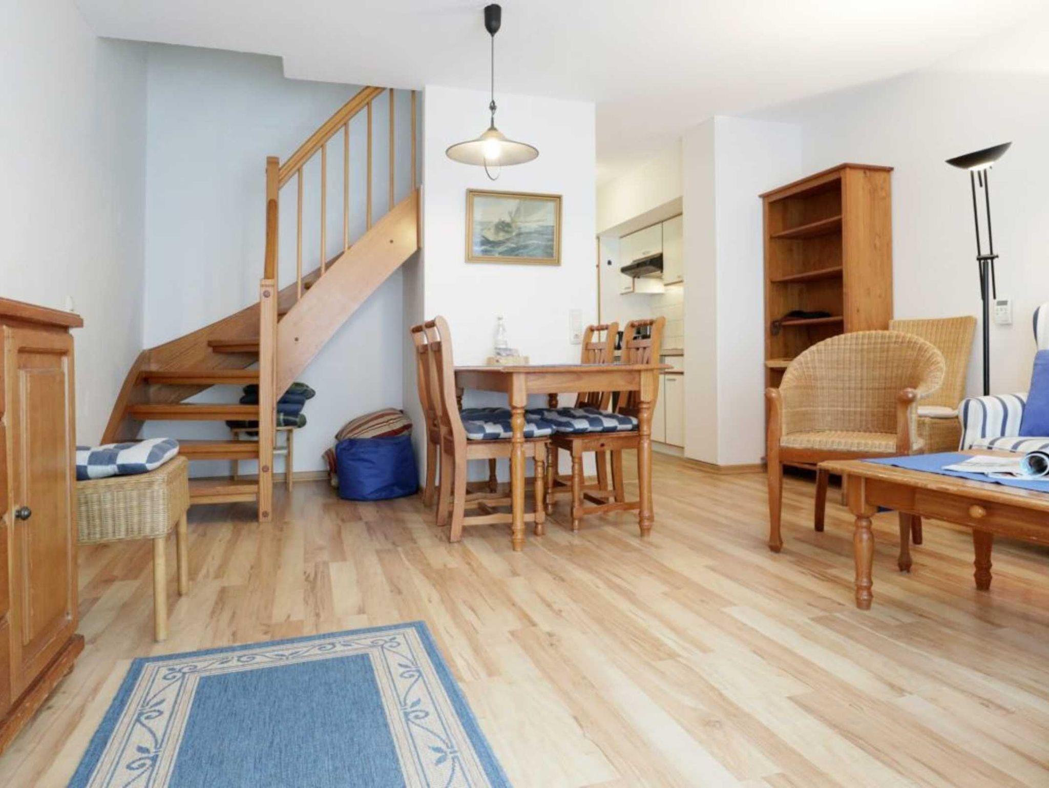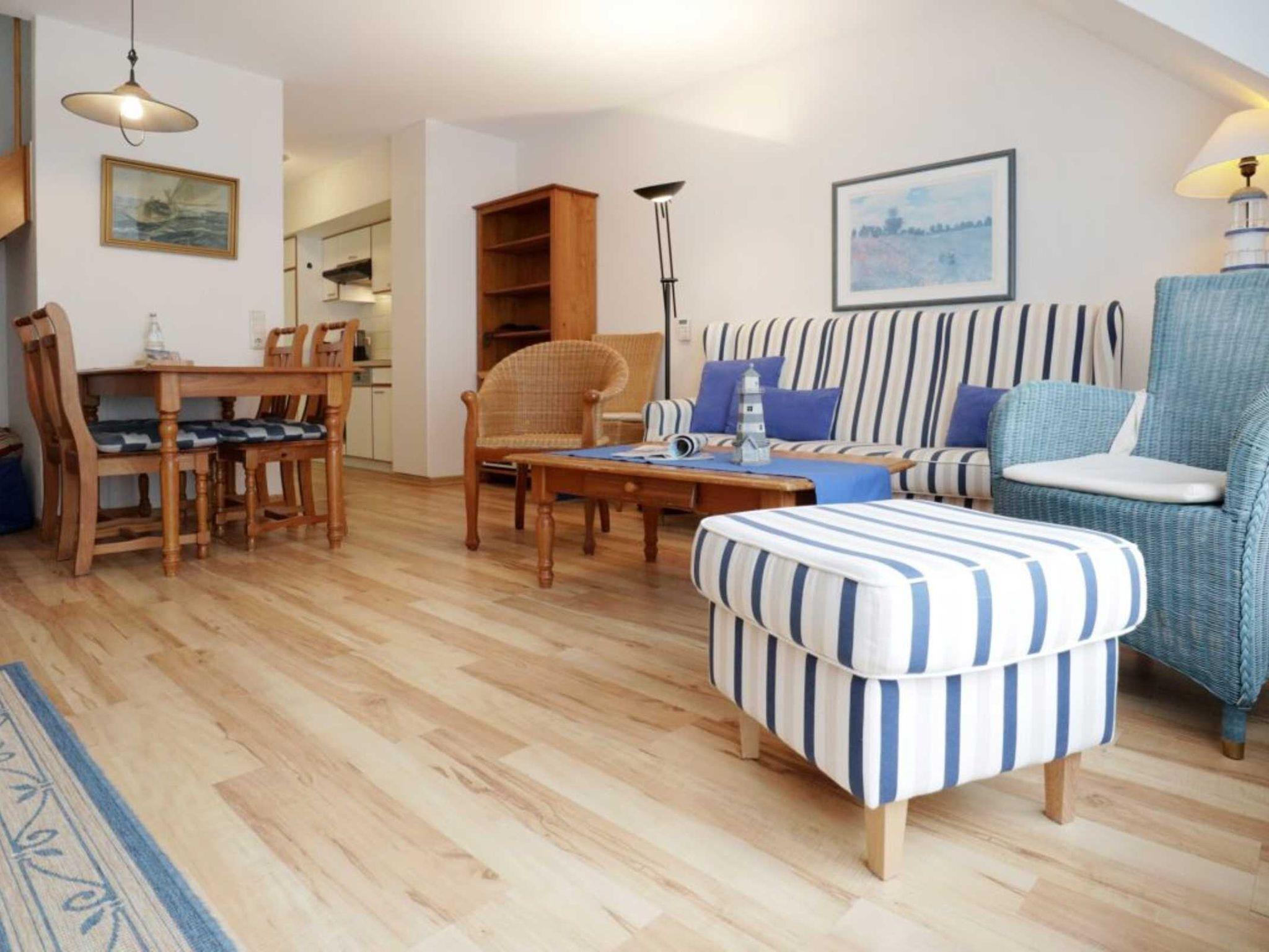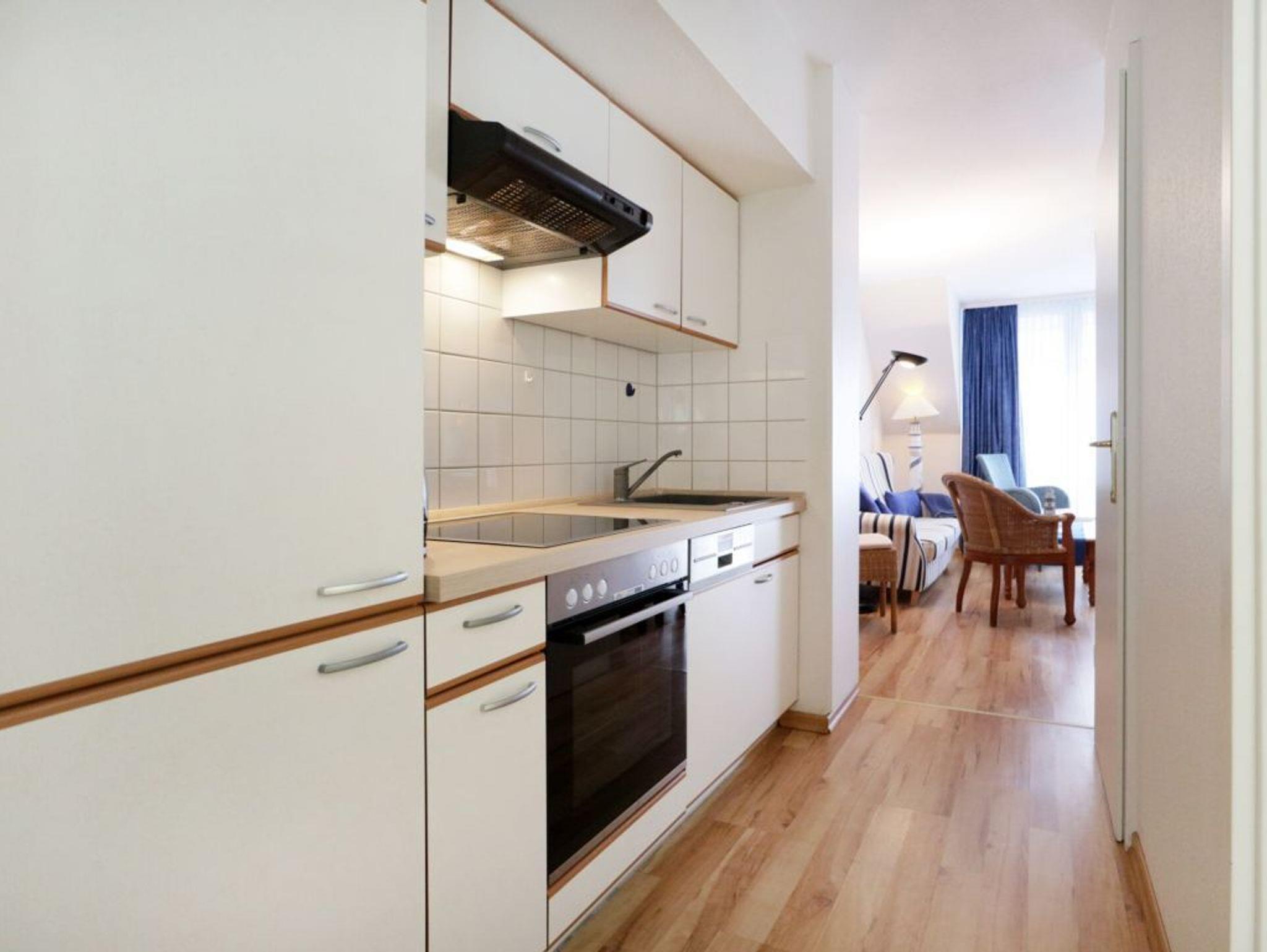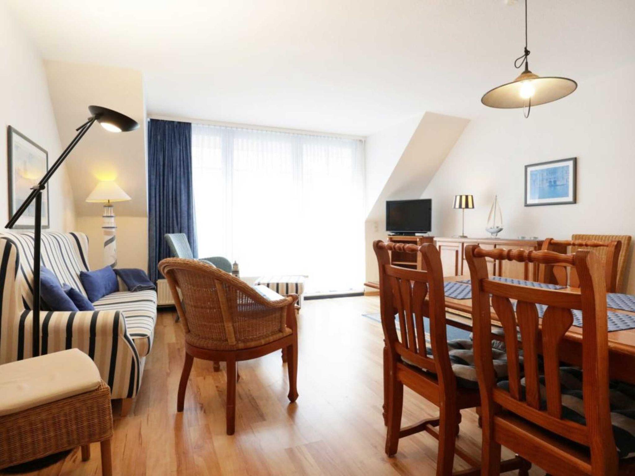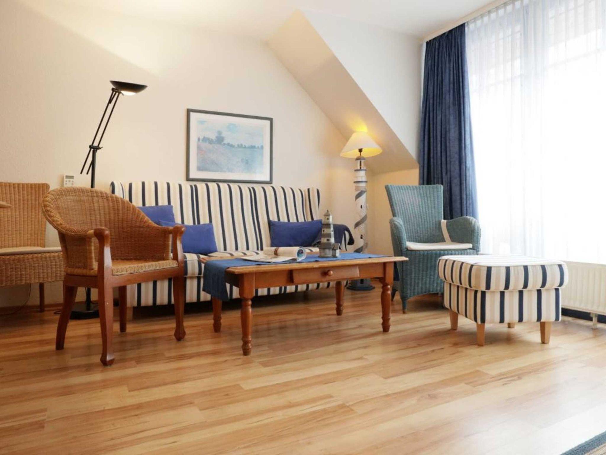 Mit einer liebevollen Möblierung und guter Ausstattung empfängt Sie die Nichtraucher Ferienunterkunft -Papillon 16/6 ? Auf einer Wohnfläche von 65qm, die sich über zwei Ebenen erstreckt, können Sie mit bis zu 6 Personen einen schönen Urlaub nahe der Ostsee verbringen. In wenigen Gehminuten sind Sie am feinsandigen Strand. Der helle Wohn-/Essbereich mit Laminatfußbodenbelag bietet ein gemütliches Sofa, zwei Sessel, einen Esstisch, Fernsehgerät mit DVD, WLAN kostenfrei, Musikanlage und Sideboard. Vom Wohnbereich gelangen sie auf den zugehörigen Balkon. Die offene Küchenzeile ist komplett ausgestattet mit Geschirrspüler, 4 Plattenherd, Backofen, Dunstabzug. Auf der unteren Ebene ist ein Schlafzimmer mit zwei Einzelbetten und Kleiderschrank. Kinderhochstuhl und Kinderbett stehen bei Bedarf bereit. Auf der oberen Ebene sind zwei Schlafzimmer mit jeweils einem Doppelbett und Kleiderschrank. Zur Wohnung gehört ein Duschbad. Waschmaschine & Wäschetrockner -gegen Gebühr- befinden sich im Hauskeller. Ihren PKW parken Sie kostenfrei am Haus. Bitte beachten Sie, dass Haustiere nicht gestattet sind. Familien fühlen sich sehr wohl in der Anlage Papillon. Einkaufsmöglichkeiten erreichen Sie in ca. 400 Meter.