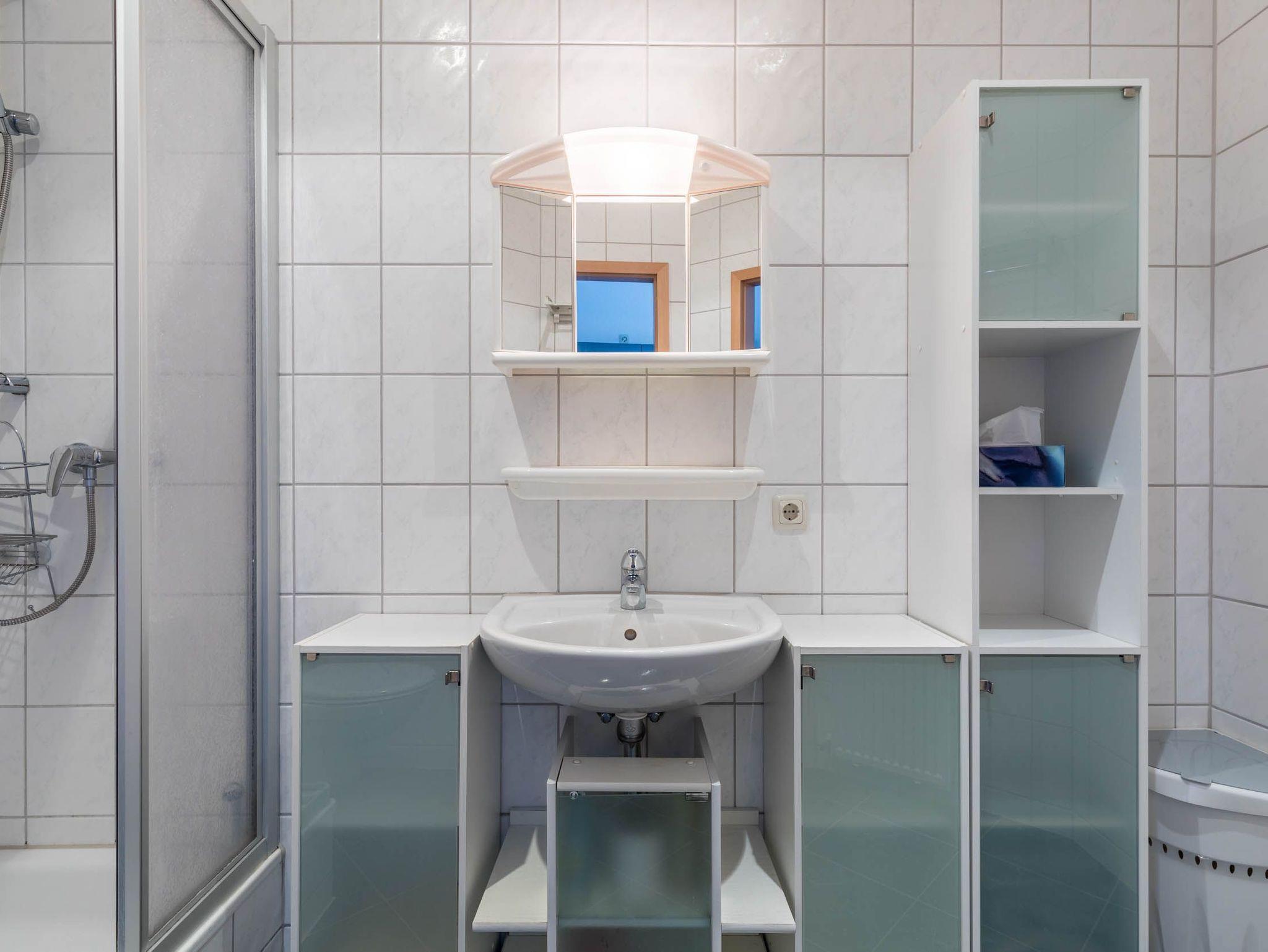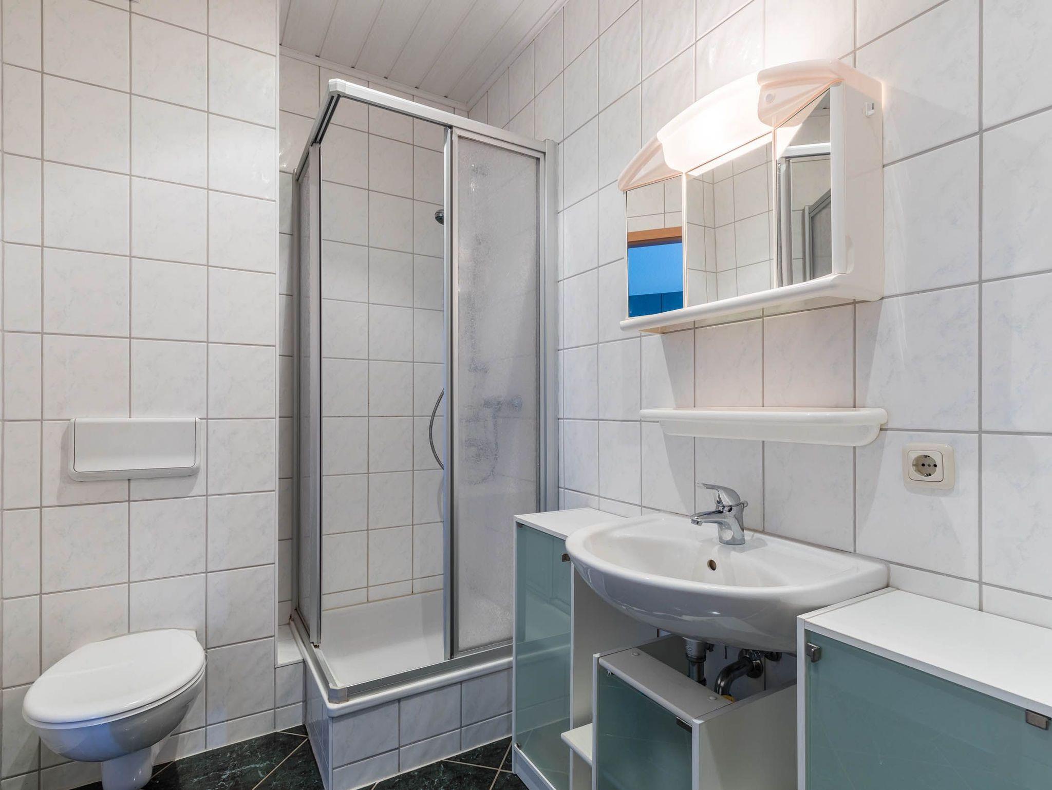 Ein modernes Bad mit Dusche, Waschbecken und WC komplettiert das komfortable Quartier im Ostseebad Boltenhagen im Ortsteil Tarnewitz.