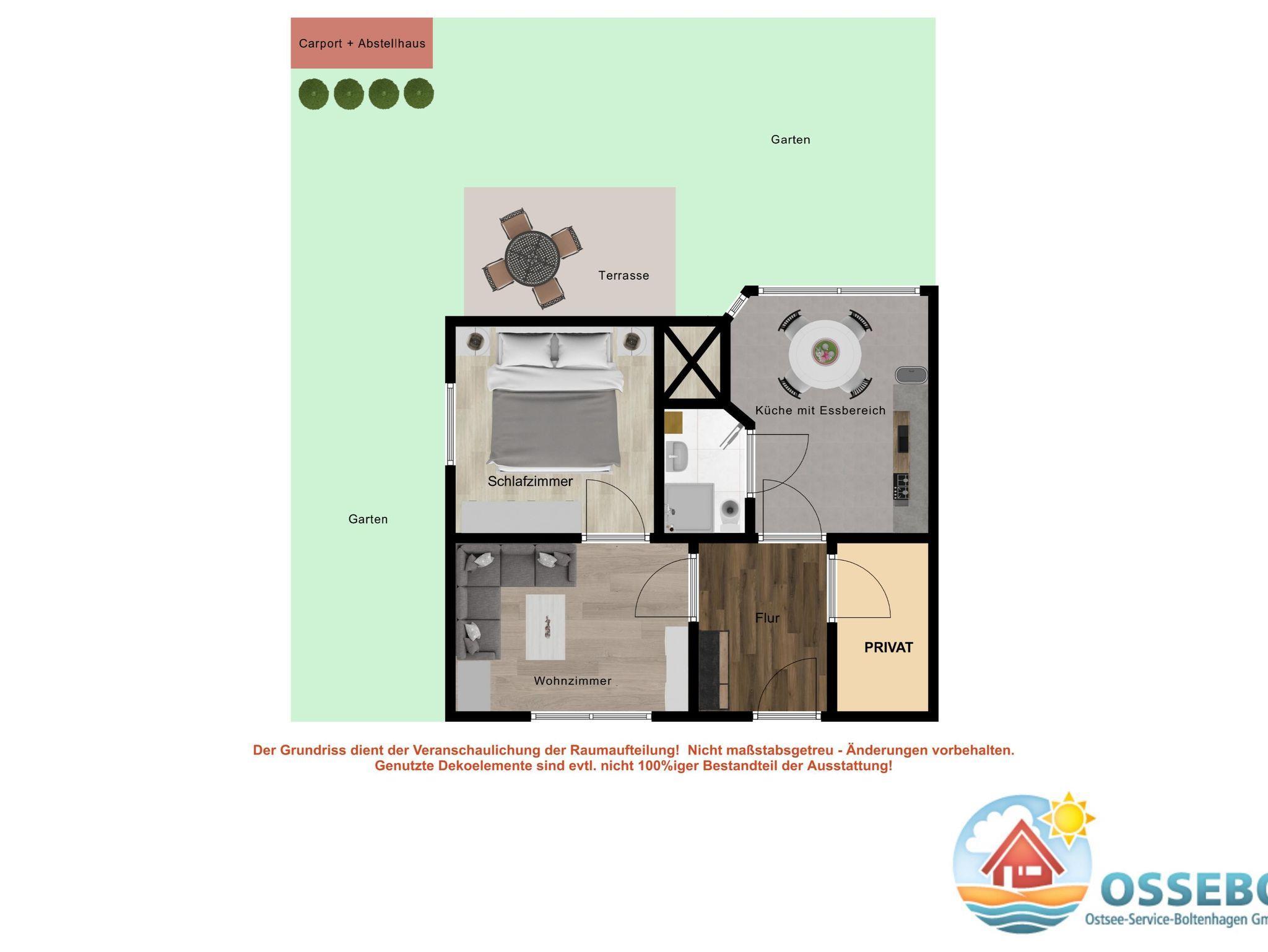 Die strandnahe 2-Zimmer-Ferienwohnung befindet sich im Erdgeschoss des Hauses und ist mühelos über die Eingangstreppe zu erreichen. Sie bietet eine komfortable Ausstattung für 3 Gäste.