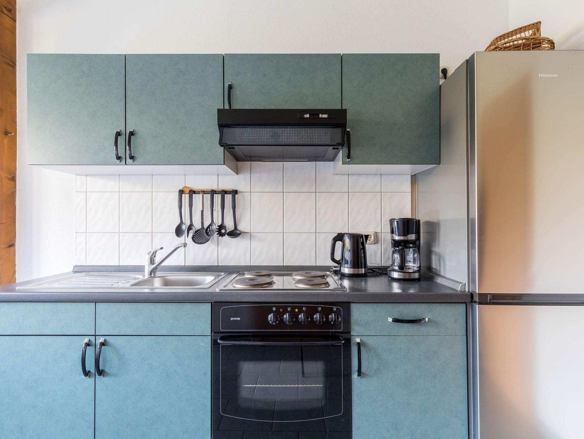 In der separaten großzügigen Küche stehen Haushaltsgeräte zur Verfügung, Ihre Mahlzeiten können Sie an der separaten Essecke einnehmen.