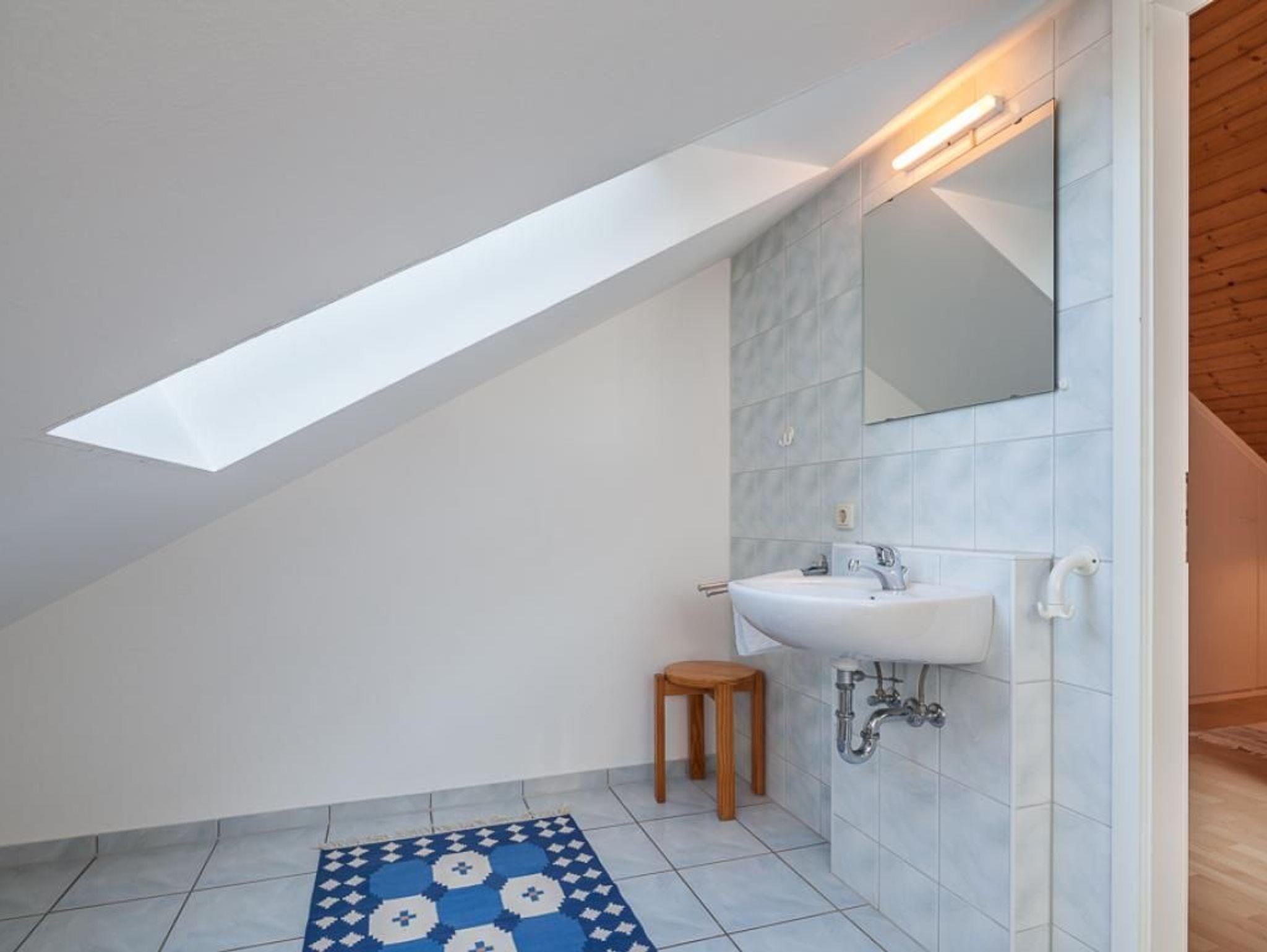 Auch ein Duschbad, wo Sie gerne auch eine Waschmaschine nutzen können befindet sich auf der unteren Hausebene. Das Obergeschoss erreichen Sie über eine Treppe. Dort befindet sich dann das zweite Schlafzimmer mit Doppelbett, Einbauschrank, Fernseher und einem Gäste WC. Für mitgebrachte Fahrräder können Sie als Unterstellmöglichkeit den abschließbaren Abstellraum am Haus nutzen. Für Ihren PKW steht kostenfrei ein Außenstellplatz bereit.