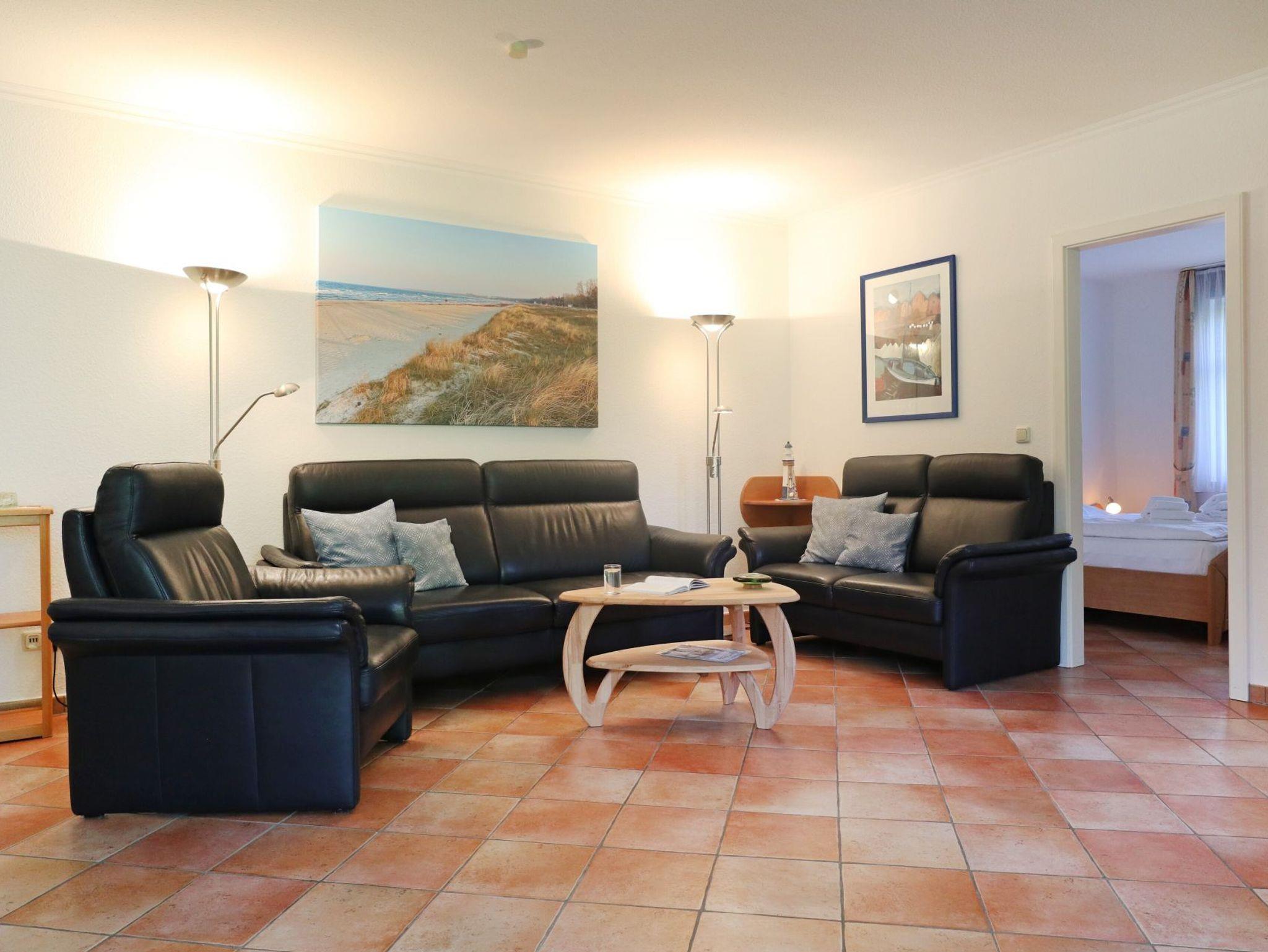 Komfortable 3-Zimmer-Ferienwohnung im Minervapark Boltenhagen, nur 70 m vom Strand entfernt, mit Terrasse und kostenfreiem WLAN.