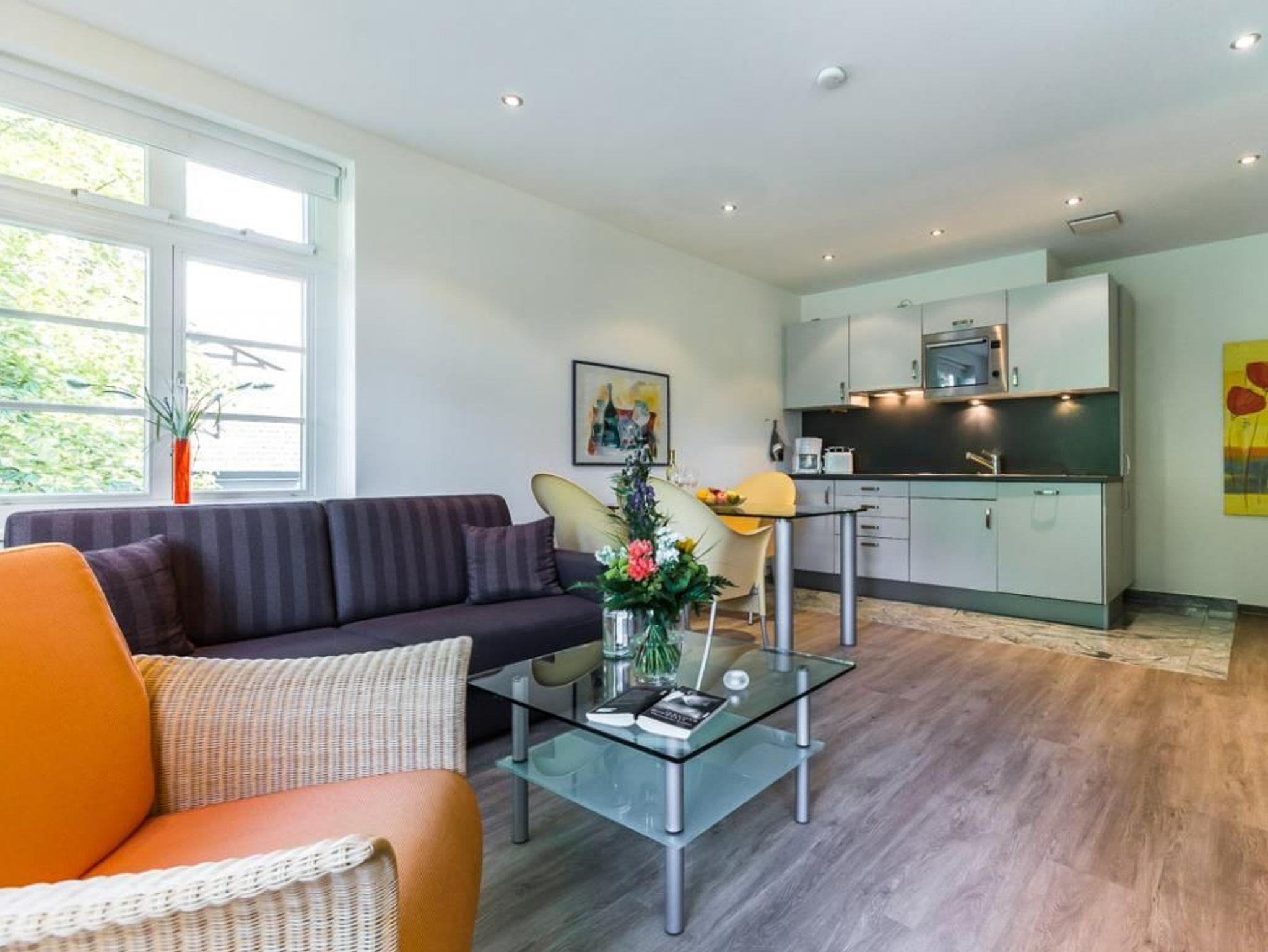 Nur 30 Meter vom Strand entfernt erwartet Sie die exklusive 2-Zimmer Ferienwohnung -Villa Höger 6 ? im 1. Obergeschoss mit einer Wohnfläche von 45qm und hochwertiger Ausstattung. Dieses Feriendomizil mit Loggia zur Seeseite ist ideal für maximal zwei Gäste. Der stilvoll gestaltete Wohn- und Essbereich empfängt Sie großzügig mit einem komfortablen Sofa, Sessel, Esstisch sowie Flatscreen-TV, Musikanlage und WLAN. Die integrierte, hochwertige Küchenzeile ist mit Ceranfeld, Mikrowelle mit Backfunktion und Geschirrspüler bestens ausgestattet. Das separate Schlafzimmer verfügt über ein Doppelbett, einen Kleiderschrank sowie ebenfalls Zugang zur Loggia. Das Duschbad mit Granitbelag und großzügigen Spiegelflächen sowie ein Gäste-WC, bieten zusätzlichen Komfort. Bei Ihrer Anreise sind die Betten bereits bezogen, Hand- und Duschtücher liegen für Sie bereit. Ein Strandkorb ist saisonal von etwa Mai bis zum 30. September im Mietpreis enthalten. Für Ihren Pkw steht ein reservierter Stellplatz in der Tiefgarage zur Verfügung, die Sie bequem mit dem gläsernen Fahrstuhl erreichen. Waschmaschine und Wäschetrockner befinden sich in einem Nebenraum der Tiefgarage und können gegen Gebühr genutzt werden. Ein Fahrradkeller ist ebenfalls vorhanden. Nichtraucher-Ferienunterkunft. Haustiere nicht gestattet. Sie verbringen Ihren Aufenthalt in einer privaten Villa in direkter Lage an der Mittelpromenade. Herzlich willkommen bei uns am Meer.