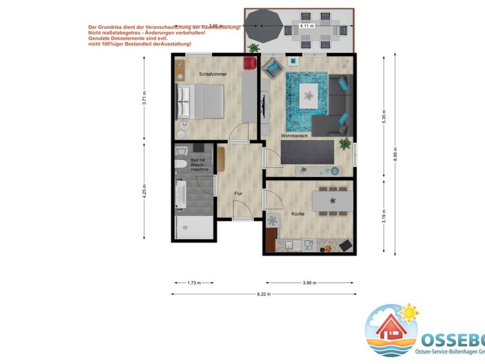 In dieser modern und komfortabel eingerichteten 2-Zimmer-Wohnung können Sie liebe Gäste einen unbeschwerten Ostseeurlaub in Strandnähe genießen. Traumlage gleich hinter der Ostseeallee mitten im Herzen Boltenhagens.
