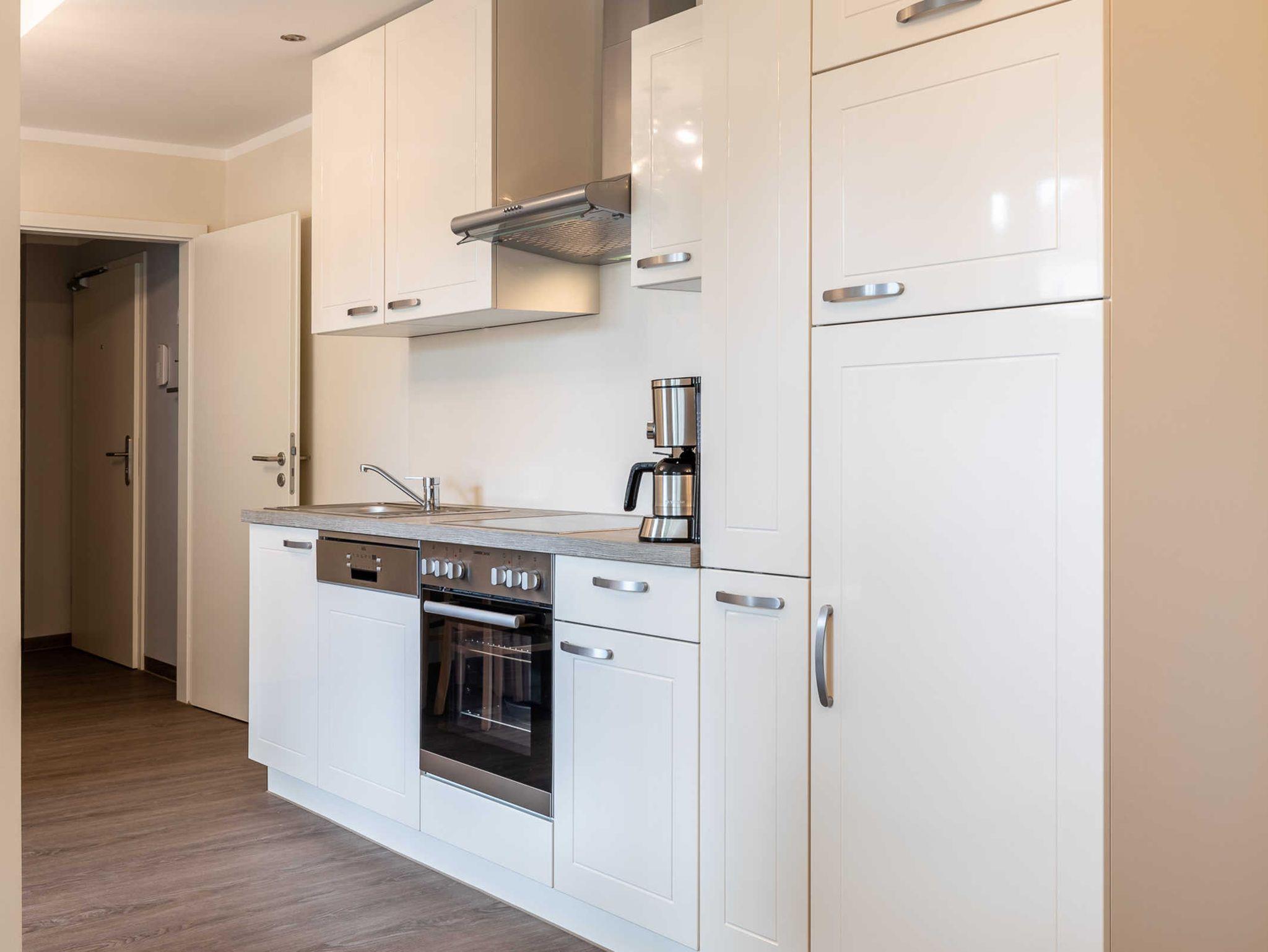 Sie bietet einen offenen Wohn- und Essbereich mit integrierter Küchenzeile und Zugang zur möblierten, überdachten Südost-Terrasse. Das bequeme Ecksofa lädt zum gemütlichen Beisammensein oder zum Entspannen beim Fernsehen ein. Der Flatscreen-TV sorgt für Ihre Multimediaunterhaltung.