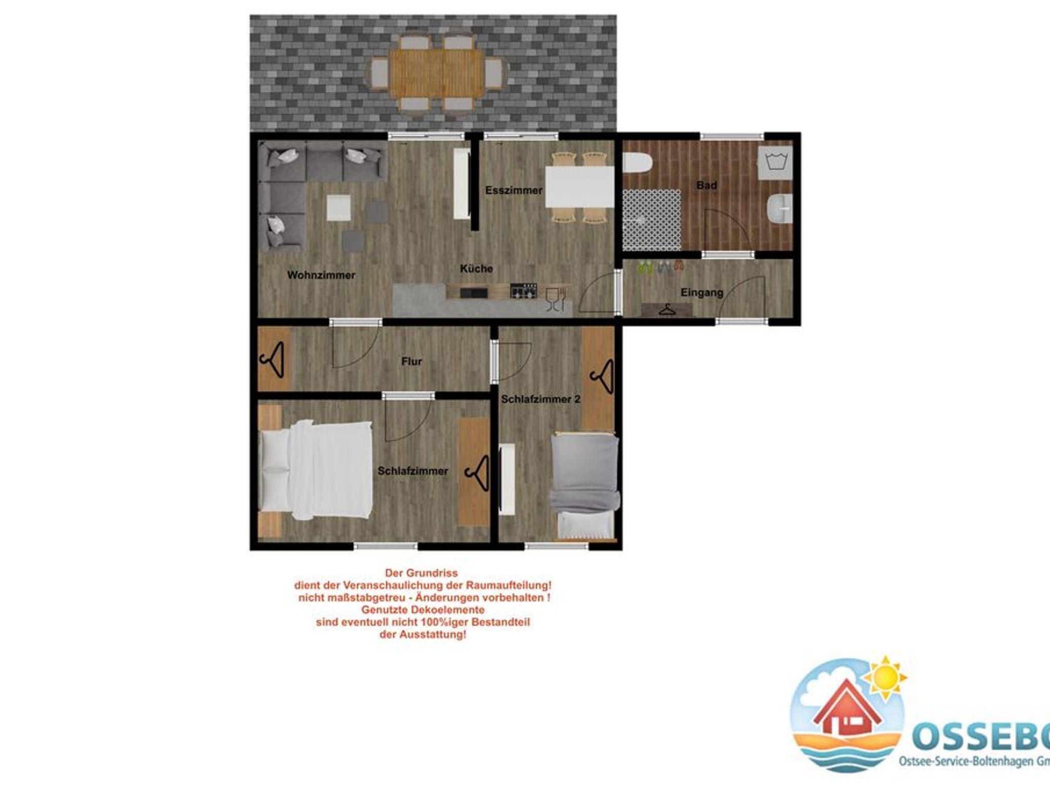 Moderne 3-Zimmer-Ferienwohnung "Hey" in Boltenhagen mit WLAN, Terrasse und Parkmöglichkeit, ideal für entspannte Familienurlaube an der Ostsee.