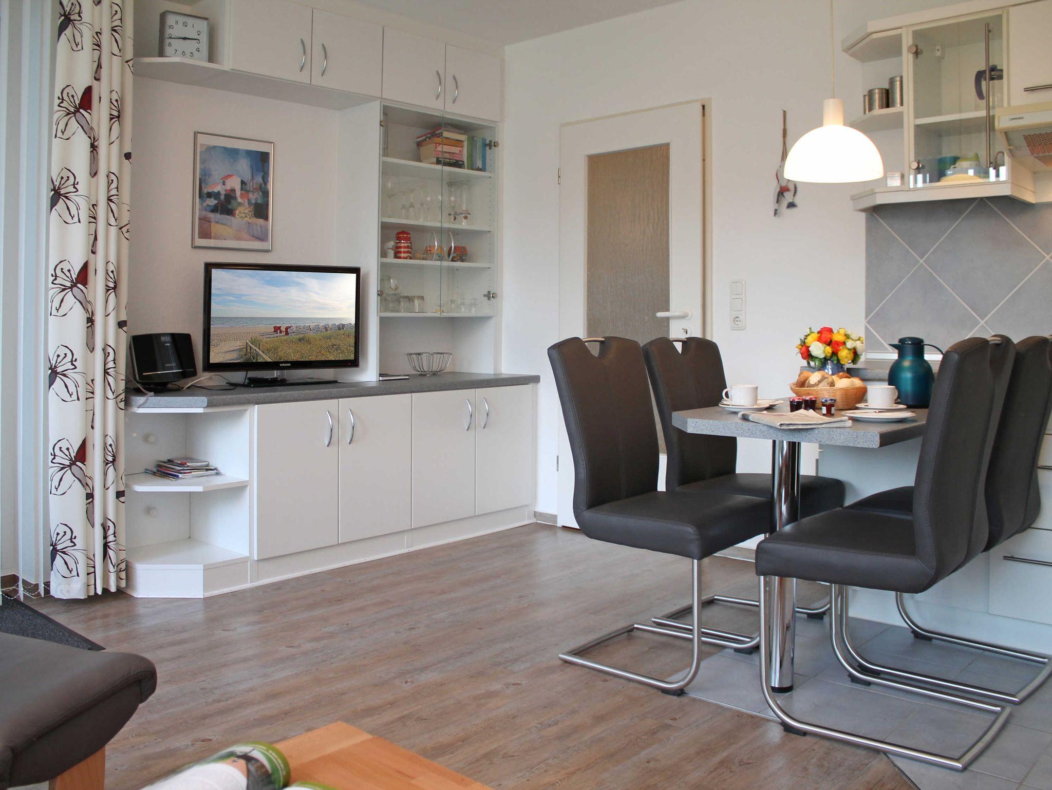 Unsere Wohnung Nr. 7 liegt sehr ruhig, zur Strandseite hin im Erdgeschoss mit schöner Terrasse; fern vom Lärm der Ostseeallee.Sie wohnen also ruhig, dennoch zentral zum Ortskern und unmittelbar am Strand. Die Wohnung ist äußerst komfortabel für 2 Personen eingerichtet und ebenso für ein zusätzliches (Klein)Kind ausgestattet . Sie besteht aus einem Wohn-/Esszimmer mit großem Küchenbereich, Schlafzimmer mit Fernseher, Einbauschrank und neuem Boxspringbett mit TEMPUR-Matratzen, Bad mit Dusche und Flur. In der Tiefgarage können Sie Ihr Fahrzeug sicher unterstellen. Von hier aus erreichen Sie bequem mit dem Fahrstuhl Ihre Wohnung. Zur Mitbenutzung steht im Keller sowohl ein Fahrrad- als auch ein Wasch-/Trockenraum zur Verfügung. Bitte haben Sie Verständnis dafür, dass es sich bei unserer Wohnung, auch aus Rücksicht auf die nachfolgenden Urlaubsgäste, um eine Nichtraucher-Wohnung handelt.