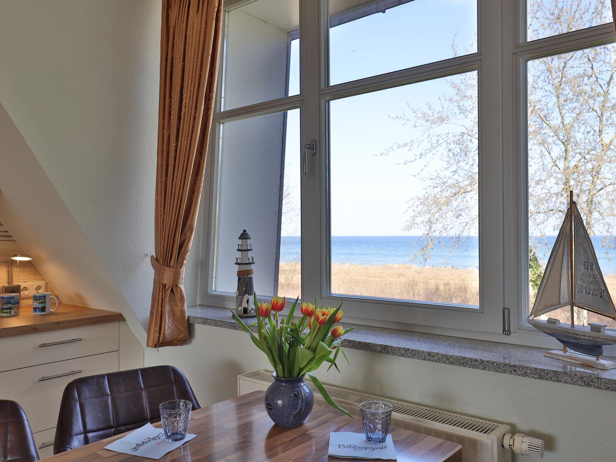 Ruhige Ferienwohnung Meeresbrise 5 mit Ostseeblick direkt hinter den Dünen an der Strandpromenade von Boltenhagen.