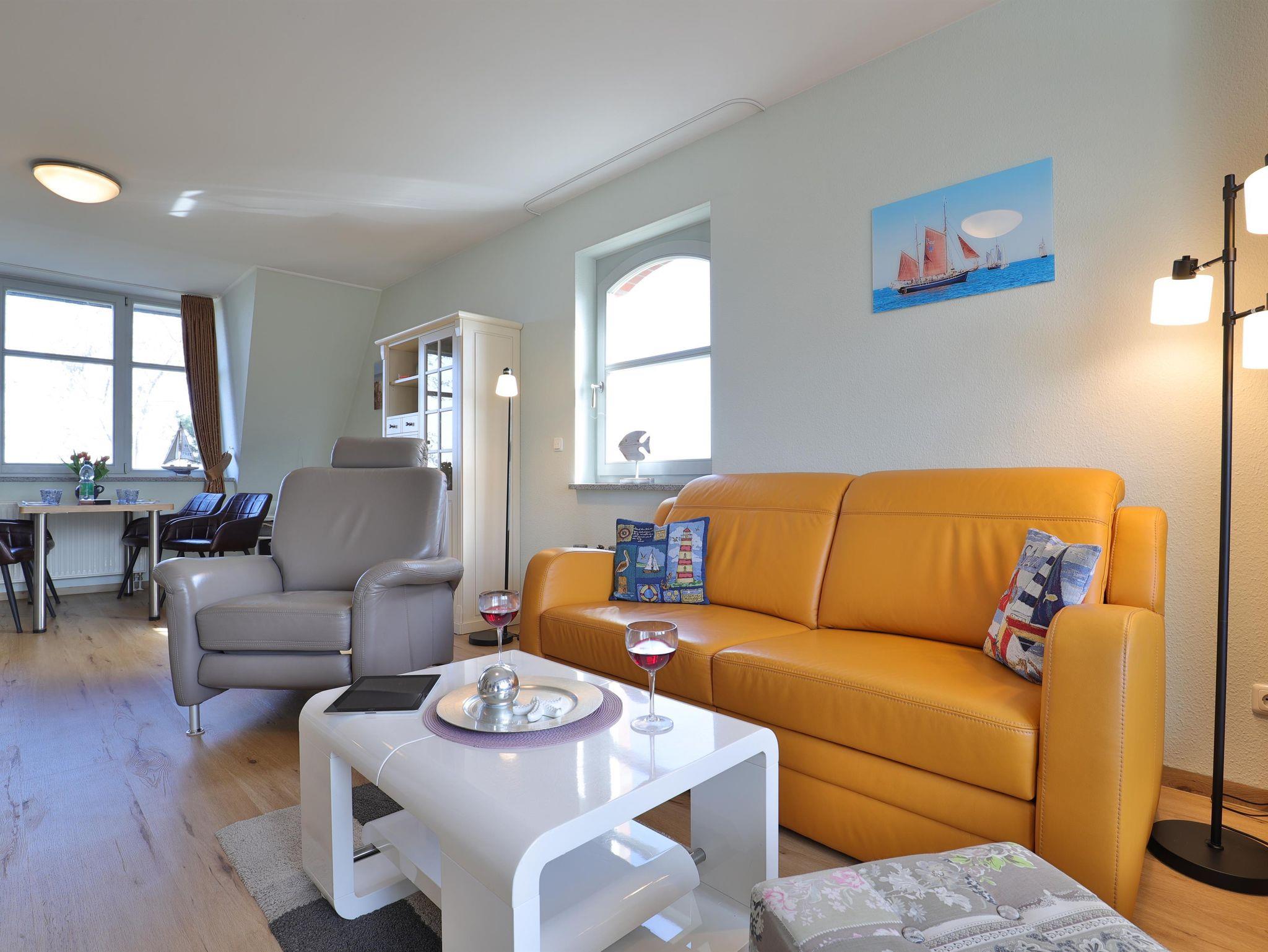 Direkt hinter den Dünen an der Strandpromenade finden Sie unsere ruhig gelegene Ferienwohnung. Der Blick vom Essplatz im kombinierten Küchen- Wohnbereich auf die Boltenhagener Bucht wird Sie begeistern. Der Küchenbereich verfügt über eine hochwertig ausgestattete Einbauküche und eine gemütliche Essecke. Das Ecksofa mit Schlaffunktion, ein großer Flat Screen TV und ein moderner Ruhesessel lassen im Wohnbereich keine Wünsche offen. Von hier haben Sie auch den Zugang zur überdachten Loggia in Westausrichtung. Hier können Sie auf zwei hochwertigen Loomsesseln den Tag ausklingen lassen.