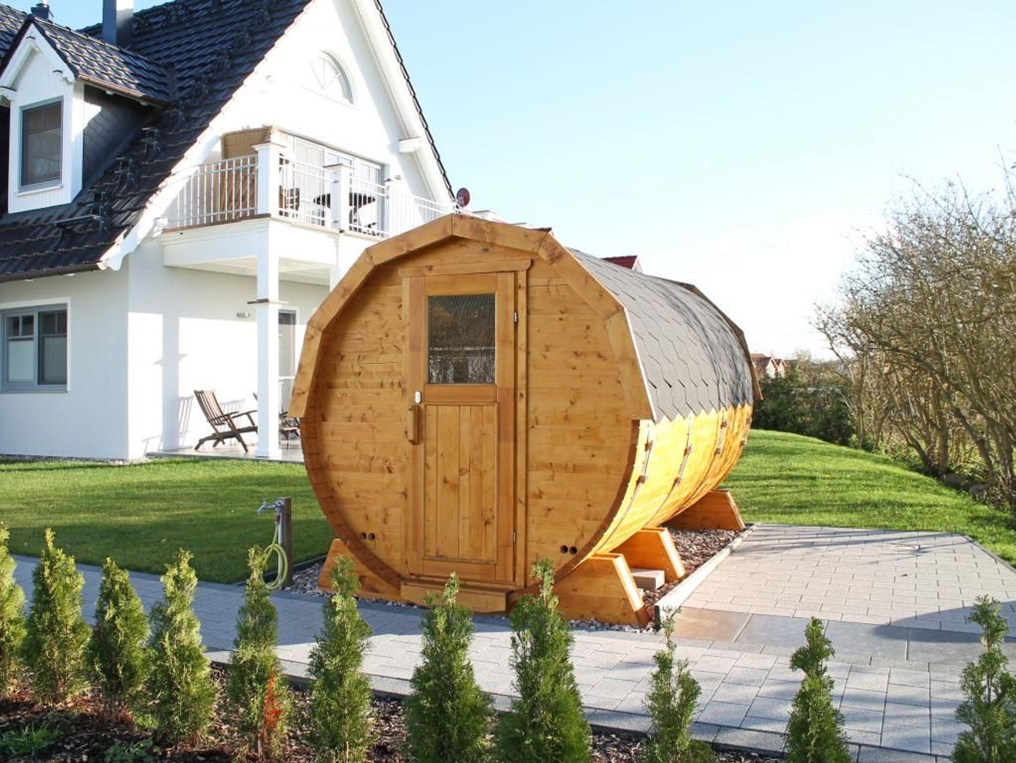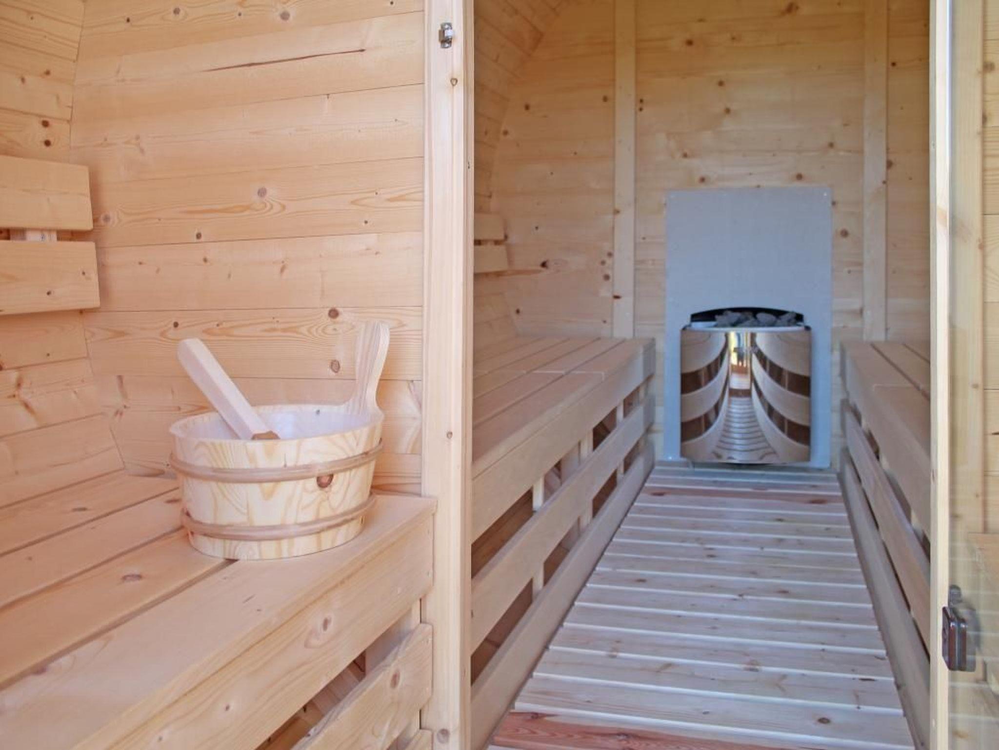 Technische Unterhaltung bieten ein Fernseher, Musikanlag, WLAN gebührenfrei. Besondere Behaglichkeit schenkt ein Kaminofen. Die offene Wohnküche ist bestens ausgestattet mit: Herd Backofen mit Mikrowellenfunktion, Dunstabzug, Kühlschrank mit Gefrierfach, Geschirrspüler, Wasserkocher, Toaster, Kaffeemaschine usw. Am großen Esstisch können Sie Ihre Mahlzeiten zu sich nehmen. Während der wärmeren Jahreszeit können Sie die großzügige, saisonal möblierte Süd-West Terrasse mit angrenzendem Rasengrundstück genießen. Die hauseigene Garten-Fasssauna steht allen Hausgästen gegen Gebühr zur Verfügung. Das Domizil verfügt über zwei separate Schlafzimmer. Eines mit Doppelbett, Kleiderschrank, Fernseher und zudem mit einem eigenen Tageslichtduschbad mit ebenerdiger Dusche, Waschtisch, WC. Im zweiten Schlafzimmer befindet sich ein ausziehbares Einzelbett, Kleiderschrank, Kommode, Fernseher. Ein zweites Duschbad, Waschtisch, WC, ist ebenfalls vorhanden.