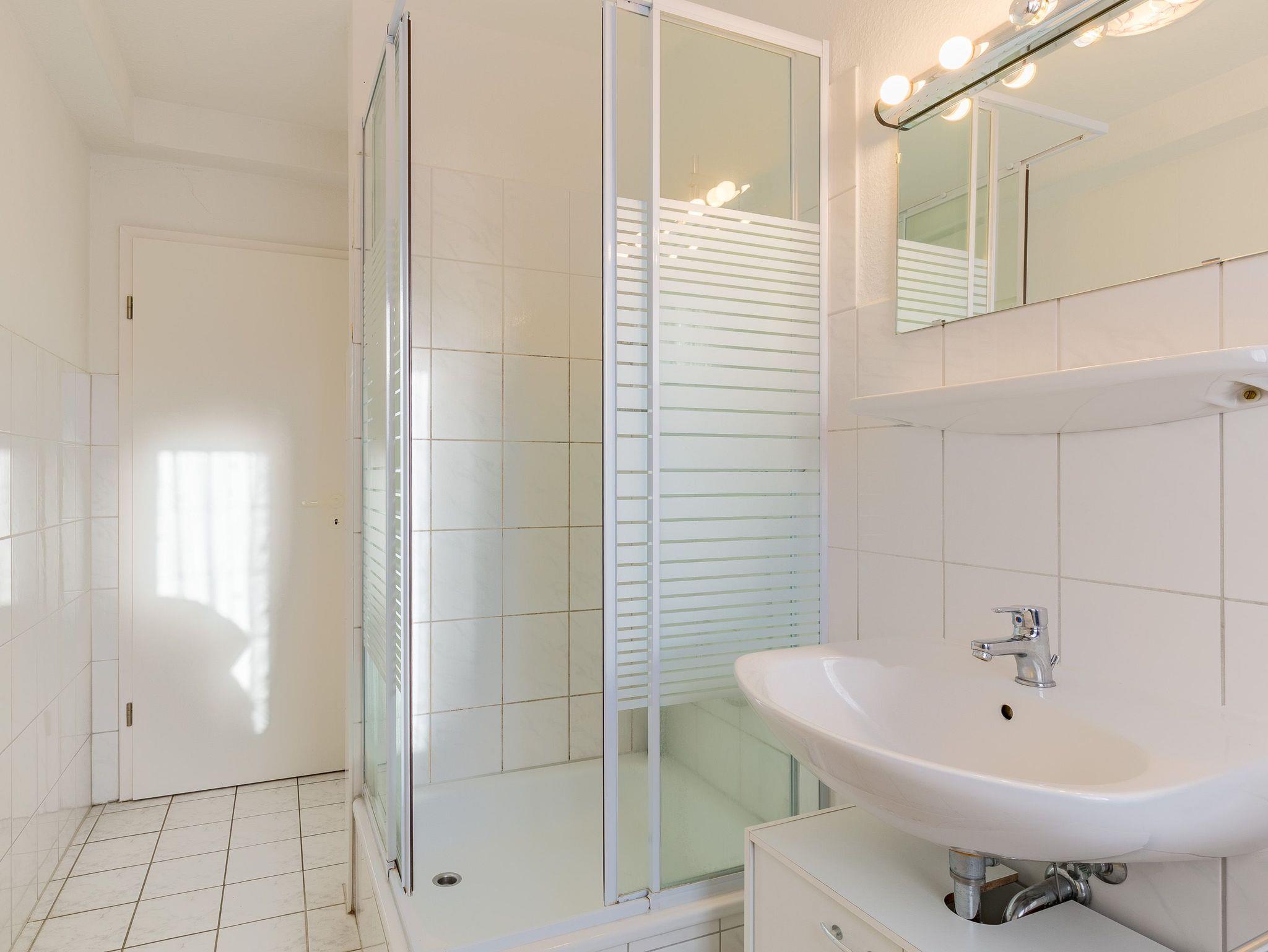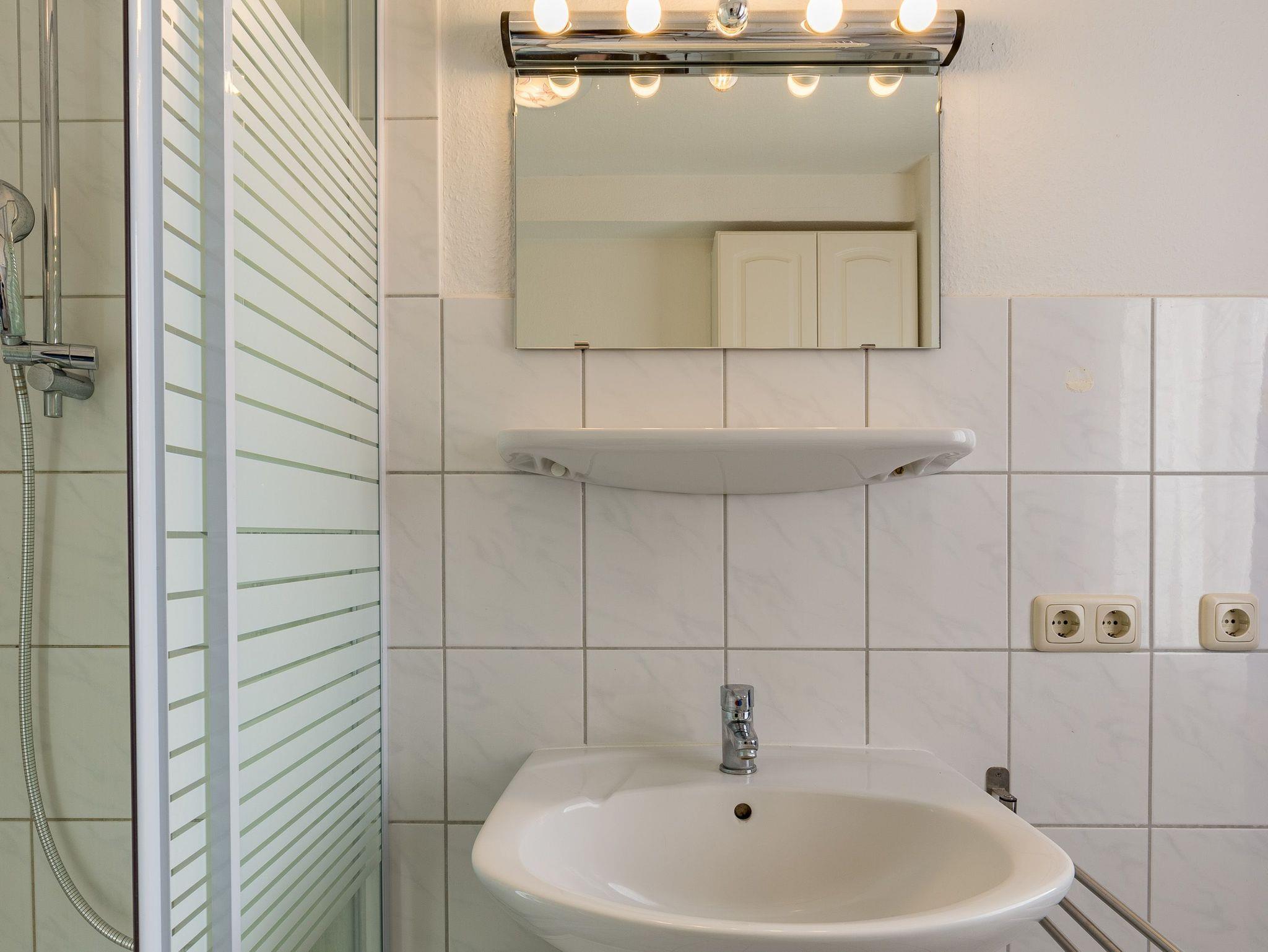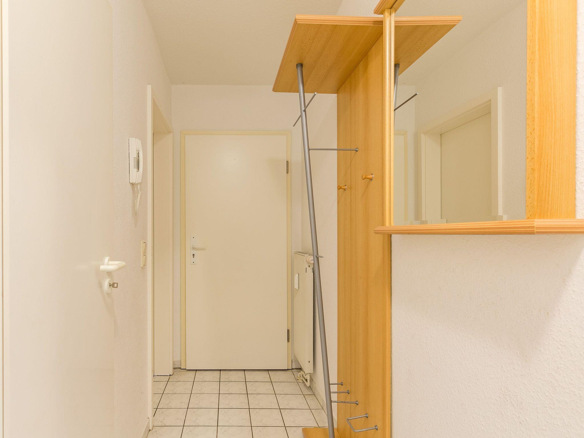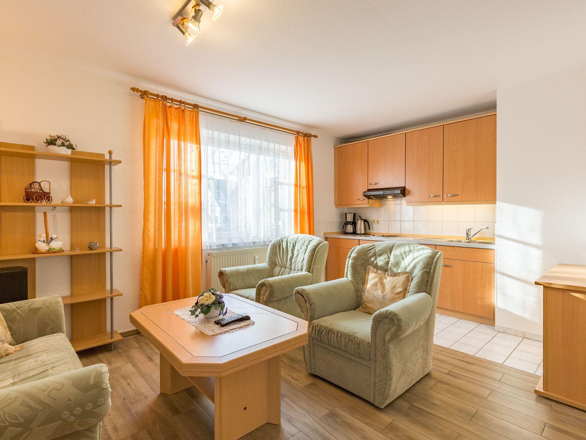 In der Küchenzeile im Wohnzimmer finden Sie eine Einbaumikrowelle, ein Kochfeld mit 2 Platten und einen kleinen Kühlschrank mit Gefrierfach. Im Schlafzimmer steht ein geräumiger Kleiderschrank für Ihre Urlaubsgarderobe. Das Doppelbett hat 2 einzelne Matratzen (Liegefläche 180x200 cm). Im kleinen Schlafzimmer stehen 2 Einzelbetten ( Liegeflächen: 90x200 cm und 90x180 cm) . Auf dem Balkon ( Westseite) stehen Balkonmöbel für Sie bereit. Ihr Auto stellen Sie sicher auf dem Außenstellplatz in der Nähe des Hauses ab. Haustiere sind in dieser Wohnung nicht erlaubt.