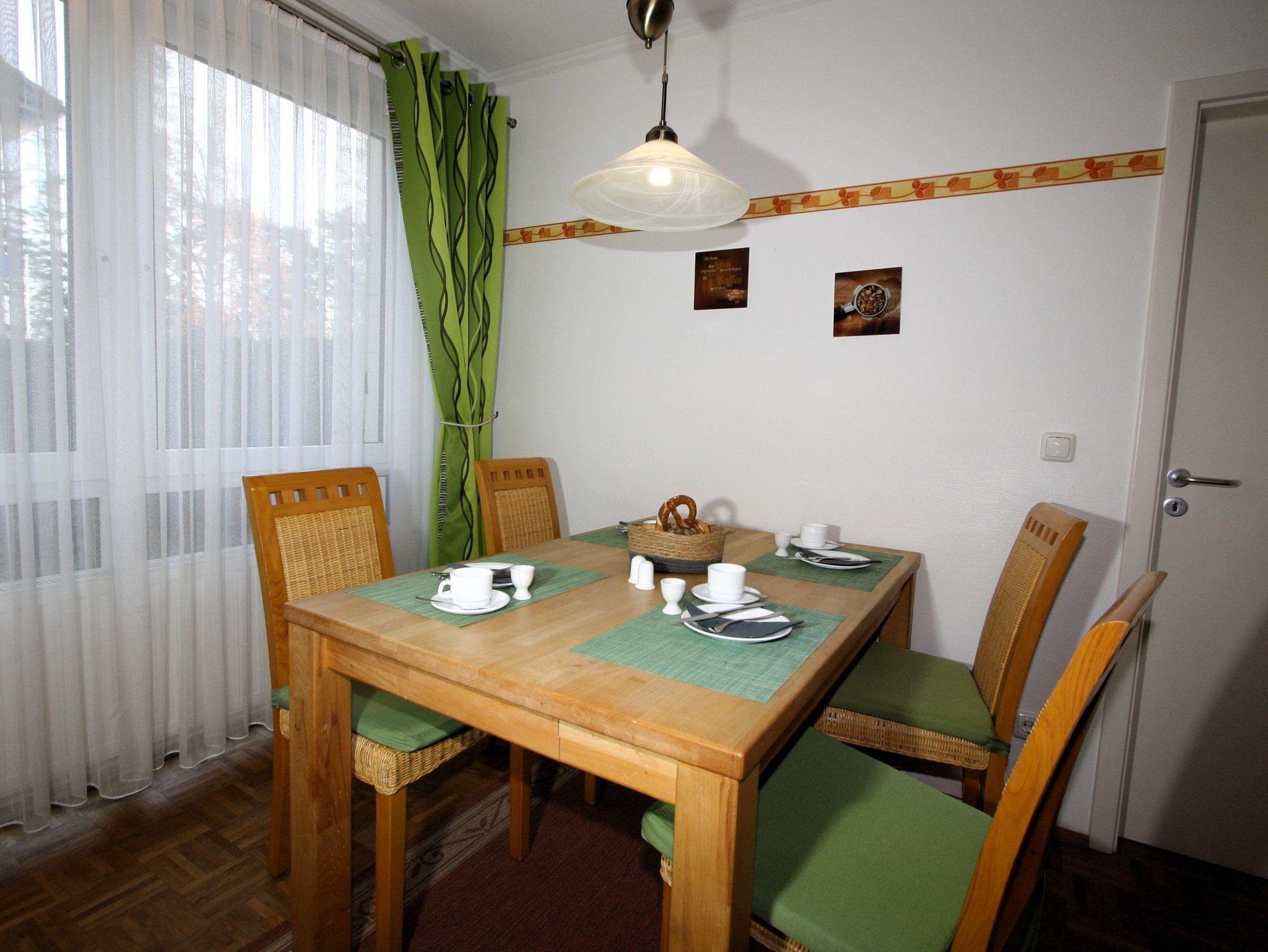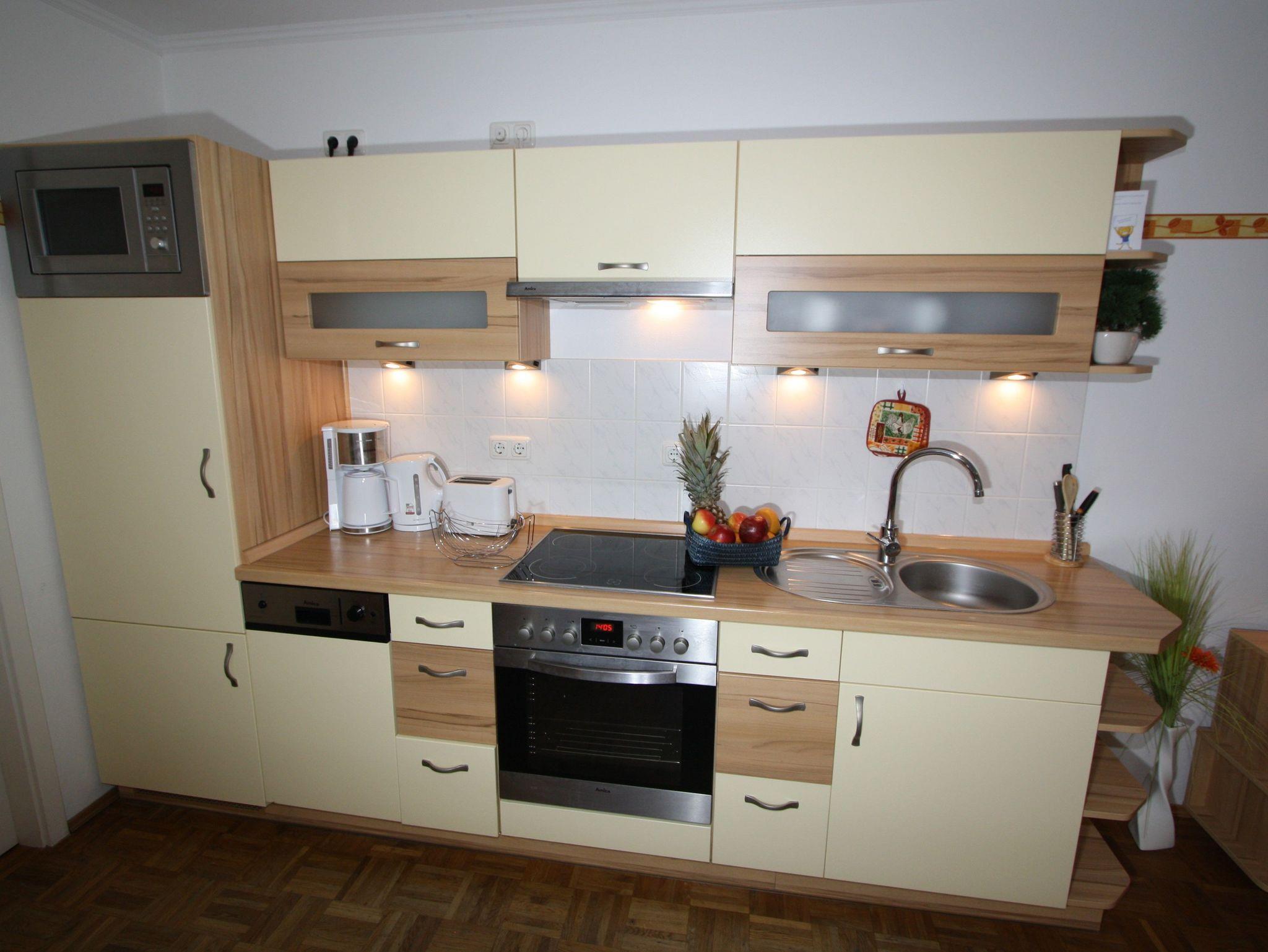 Sie finden im Wohnraum einen separaten Essplatz mit einer modern voll ausgestatteten Küche mit Ceranfeld, Backofen, Mikrowelle und Geschirrspüler.