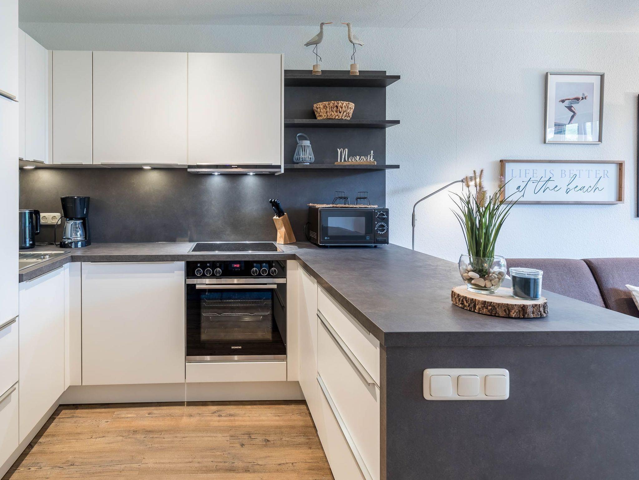 Die Ausstattung umfasst eine voll ausgestattete Küchenzeile mit Kaffeemaschine, Mikrowelle und Geschirrspüler. Eine Terrasse lädt zum Entspannen im Freien ein. Ein Tiefgaragenparkplatz steht für Sie zur Verfügung. Die Ferienwohnung ist besonders für Allergiker geeignet und verfügt über einen Fahrradkeller. Eine WLAN-Verbindung ist inklusive, ebenso wie ein TV-Flachbild. Es handelt sich um eine Nichtraucherwohnung.