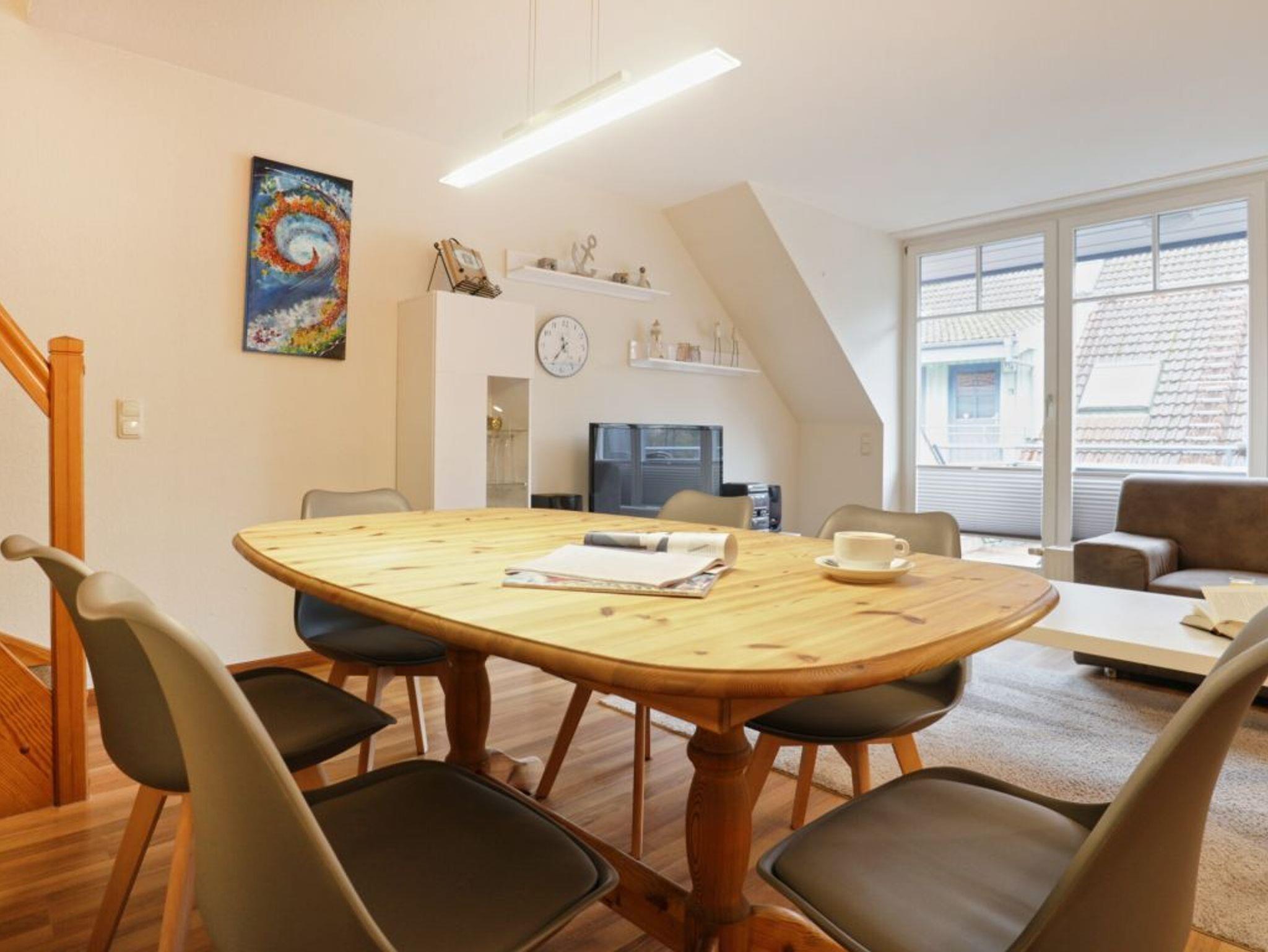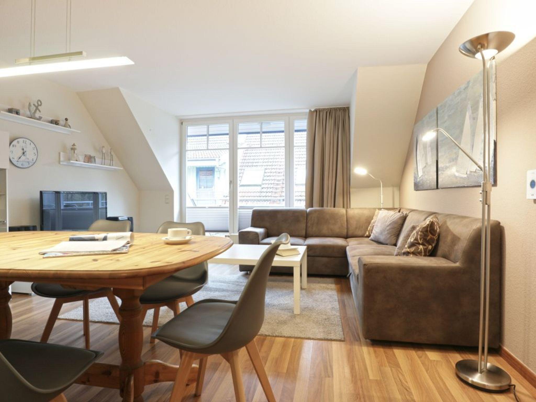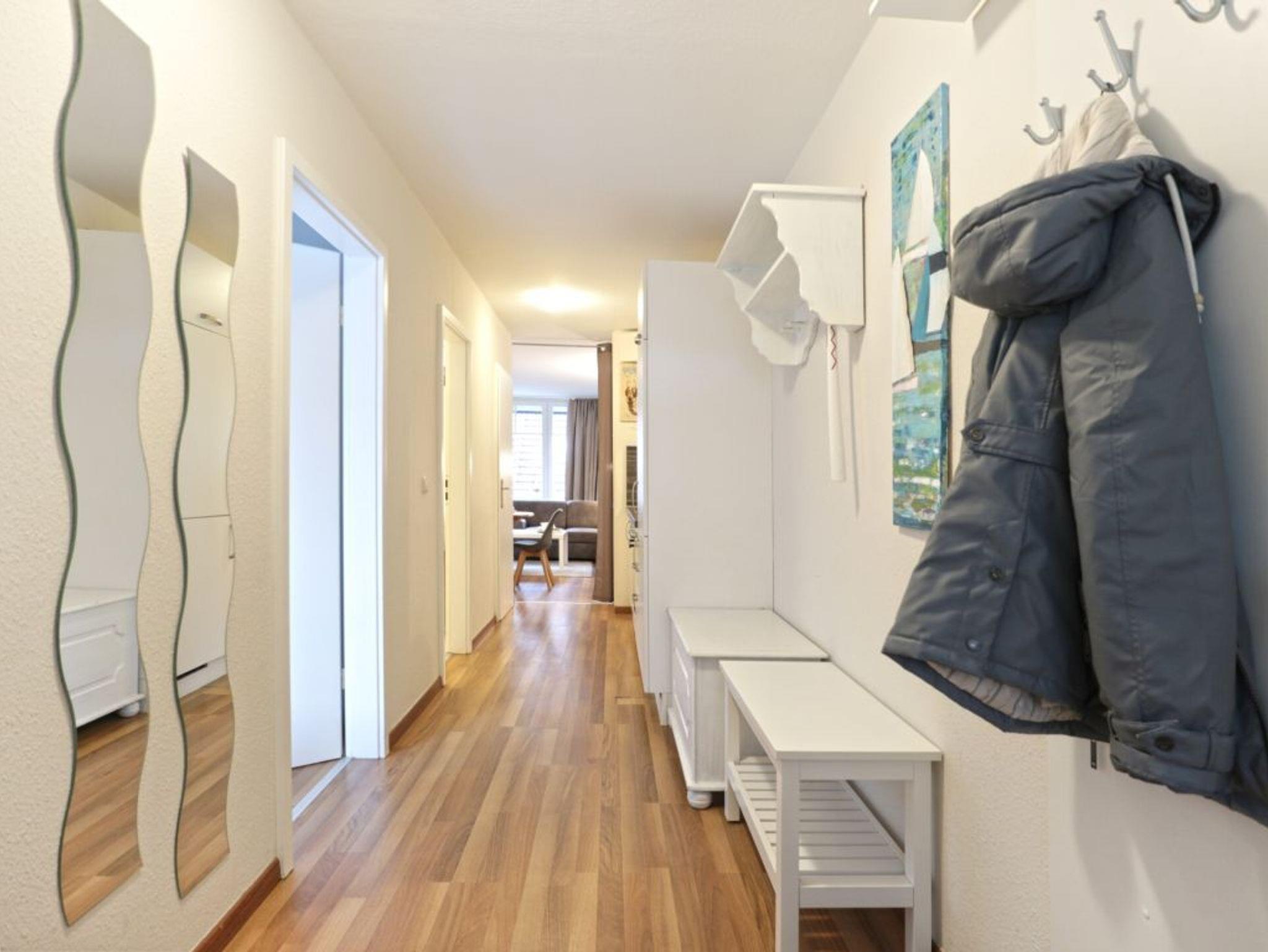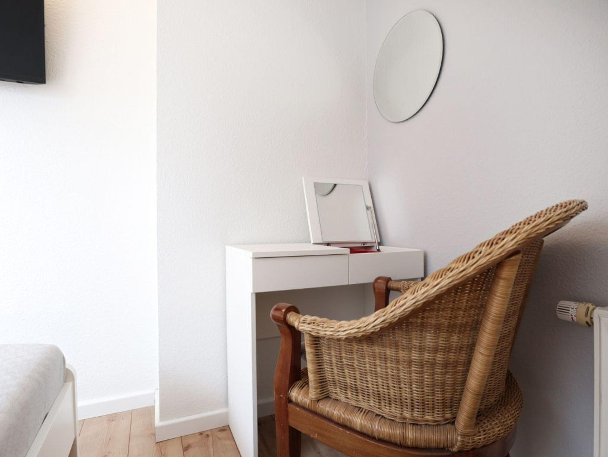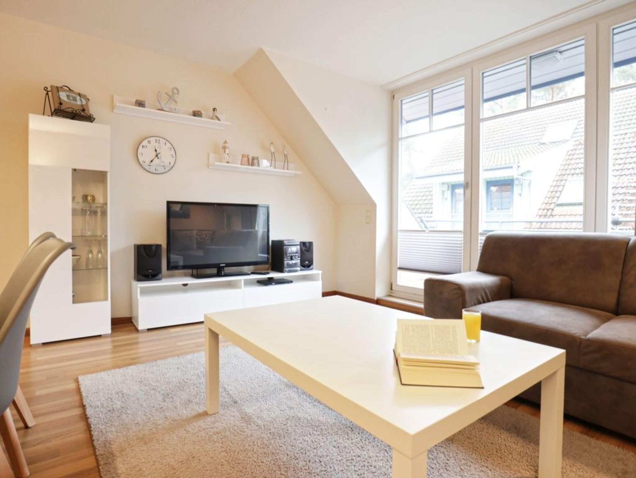 Die charmante 4-Zimmer Ferienwohnung Papillon 9-7 mit saisonal möbliertem Balkon in Süd-West, liegt im 1. Obergeschoss des Hauses. Mit bis zu 6 Personen lädt die Maisonetten Wohnung mit einer Wohnfläche von 65qm zu einem erholsamen Urlaub ein. Es empfängt Sie ein komfortabel eingerichteter Wohn-Essbereich mit einer großzügigen Sitzgarnitur sowie einem Essbereich für gemeinsame Mahlzeiten. Elektronische Unterhaltung bieten ein Flachbildfernseher, Blu-Ray-Player und eine Musikanlage. Die in den Wohnbereich integrierte, offene Küchenzeile ist modern ausgestattet mit Ceranherd, Backofen, Mikrowelle, Dunstabzugshaube, Geschirrspüler, Kühlschrank mit Gefrierfach, Kaffeemaschine, Toaster, Wasserkocher usw. Zudem befinden sich auf dieser Ebene ein separates Schlafzimmer mit zwei Einzelbetten, Kleiderschrank und einer Sitzmöglichkeit, wie auch ein hell gefliestes Duschbad mit zwei Waschtischen und einem getrennten WC. Über eine Treppe gelangen Sie in das obere Geschoss, wo sich zwei weitere Schlafzimmer jeweils mit einem Doppelbett, 1x Kleiderschrank und 1x mit Kommode befinden. Für unsere Kleinsten Gäste ist ein Kinderhochstuhl in der Wohnung vorhanden. Gäste mit Hund sind in diesem Ferienappartement herzlich willkommen. WLAN (Glasfaser) steht Ihnen kostenfrei zur Verfügung. Waschmaschine und Wäschetrockner können gegen Gebühr im Kellergeschoss des Hauses genutzt werden. Für Ihren PKW ist ein kostenfreier Außenstellplatz nah am Haus reserviert. Weitere, öffentliche Stellplätze befinden sich gegen Gebühr auf den Parkplätzen im Ort. Den feinsandigen Ostseestrand erreichen Sie in ca.250 Meter.