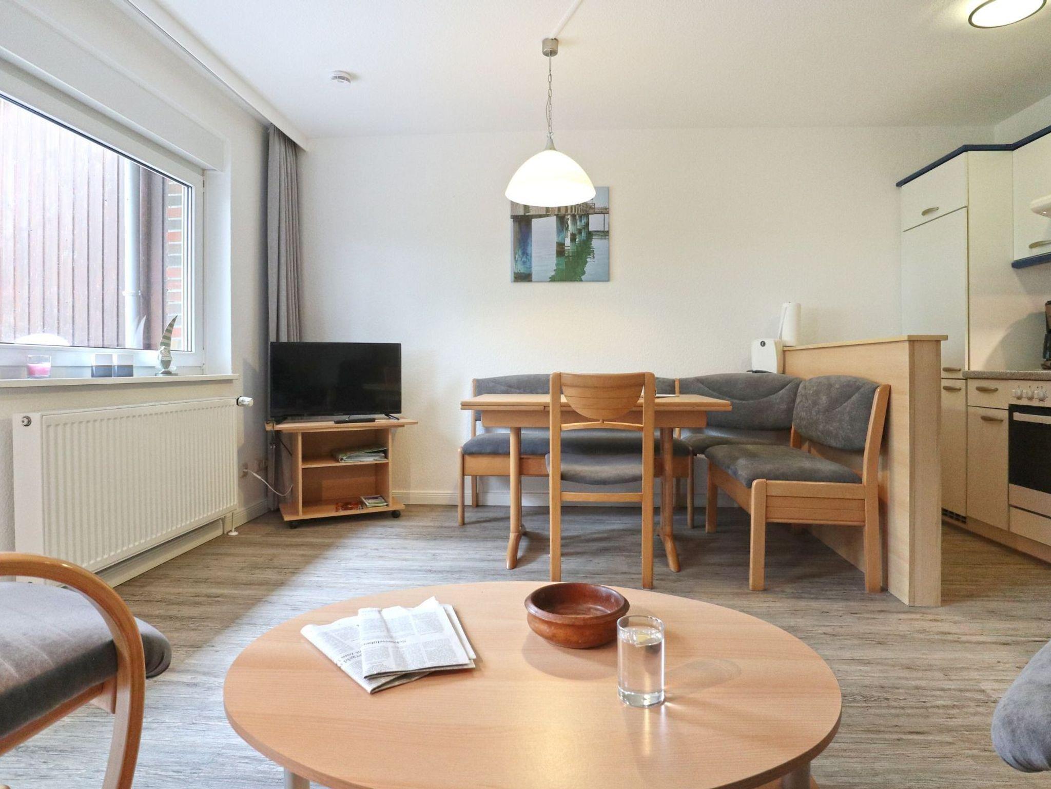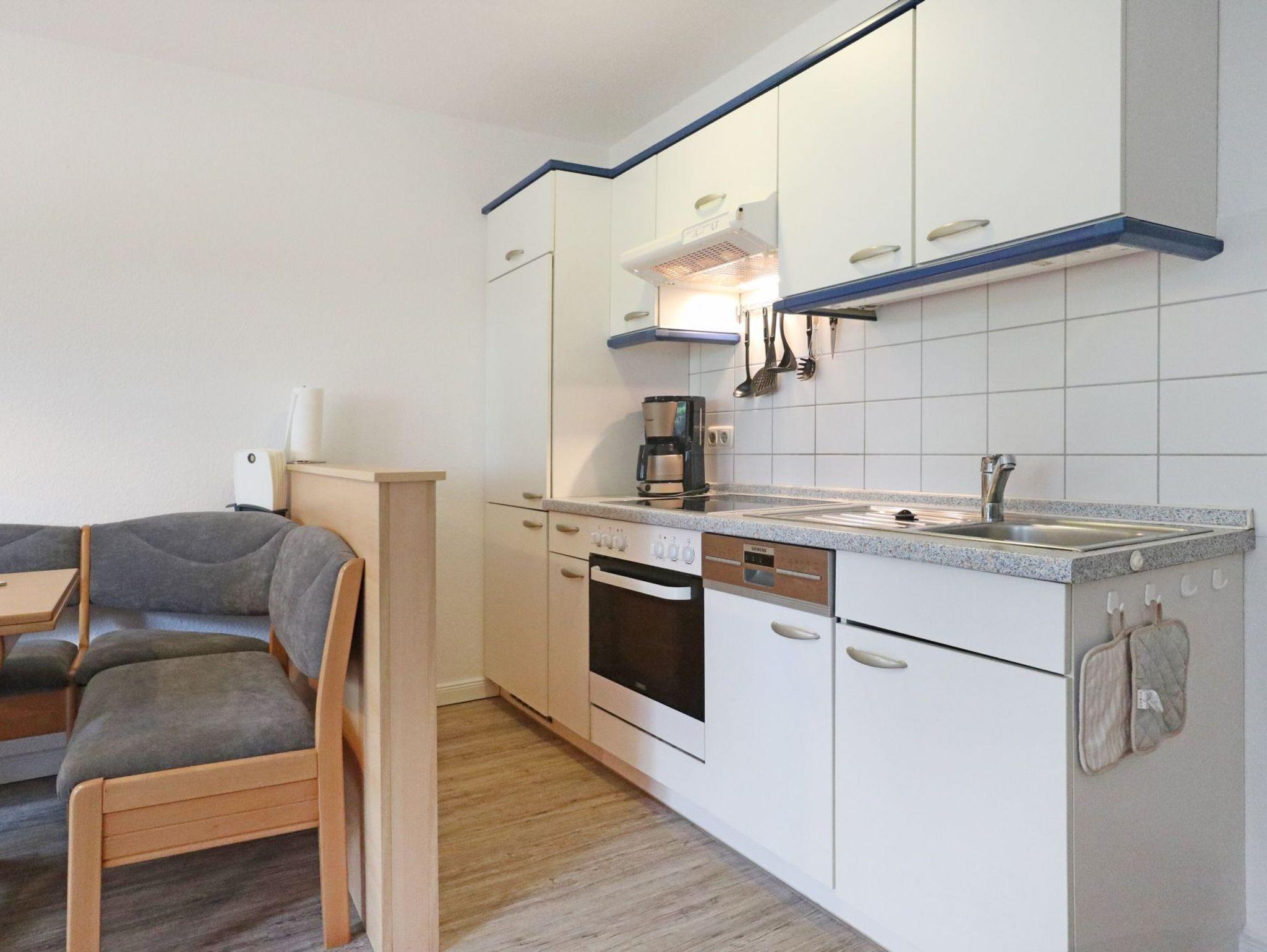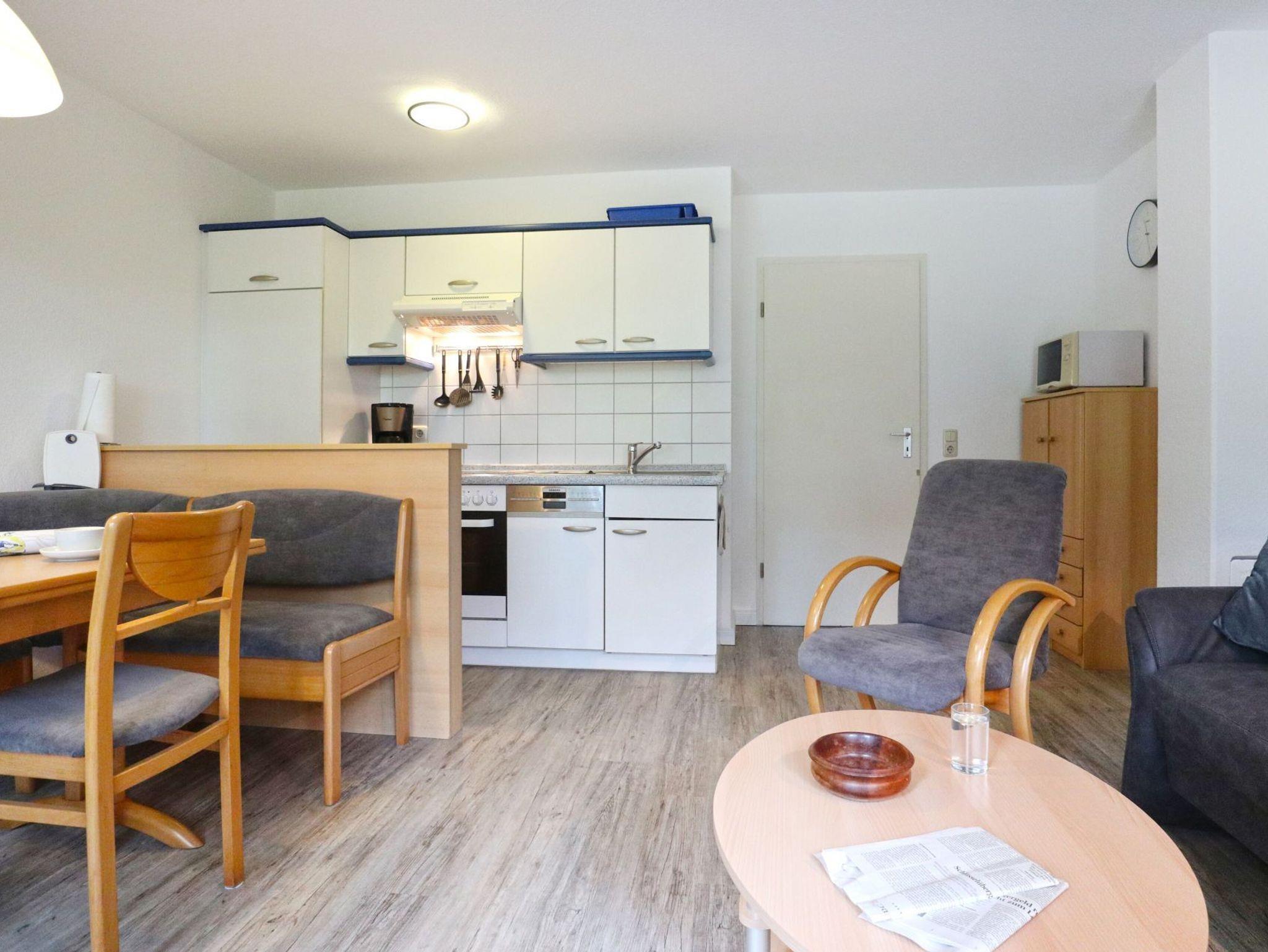 Das Ferienreihenhaus - Urlauberdorf 27 C - mit Südterrasse bietet auf 54qm familienfreundliches Wohnen zum Wohlfühlen. Der gemütliche Wohn- und Essbereich ist mit einem Sofa, Fernseher, Radio und einer Esszimmerbank ausgestattet ? ideal für entspannte Stunden mit der Familie. WLAN kostenfrei. Zwei separate Schlafzimmer sowie ein Duschbad sorgen für Komfort und Privatsphäre. Die integrierte Küchenzeile ist voll ausgestattet mit Herd, Backofen, Geschirrspüler, Mikrowelle, Kaffeemaschine, Wasserkocher, Toaster u.v.m. Erholung finden Sie auf der saisonal möblierten Süd Terrasse. Im Erdgeschoss befinden sich ein Schlafzimmer mit zwei Einzelbetten und Kleiderschrank sowie ein zweckmäßiges Duschbad mit WC und kostenfreier Waschmaschinen Nutzung. Auch ein Bügeleisen und Bügelbrett befinden sich im Haus. Über eine Treppe gelangen Sie ins Obergeschoss mit einem weiteren Schlafzimmer mit Doppelbett, Kleiderschrank, 2. Fernseher sowie Sitzgelegenheit. Familienfreundlich gehören ein Kinderhochstuhl, Kinderbett zur Ausstattung.