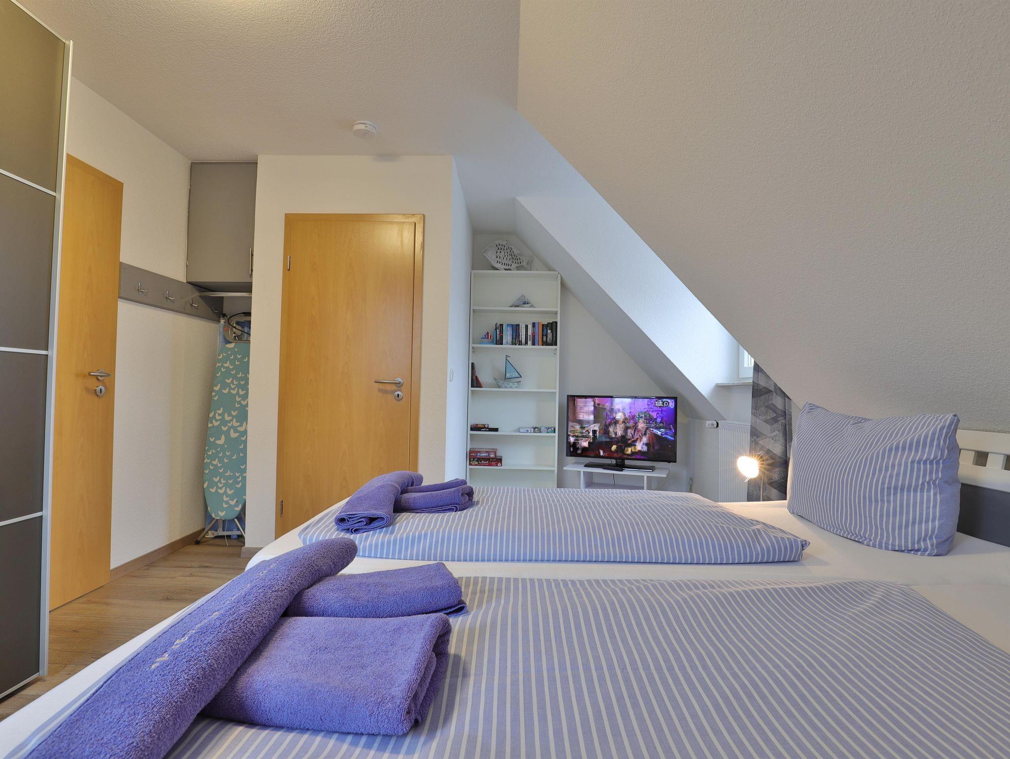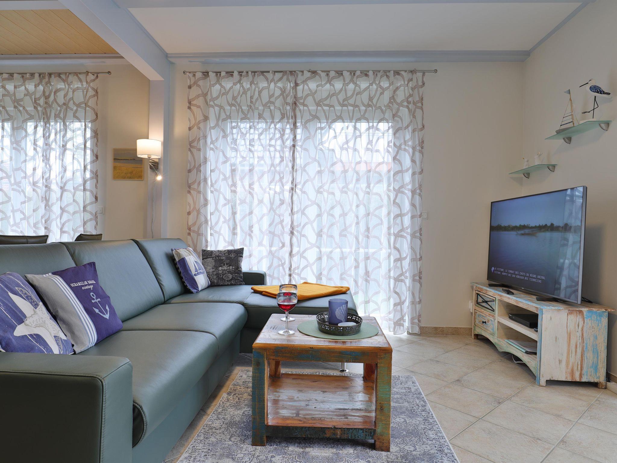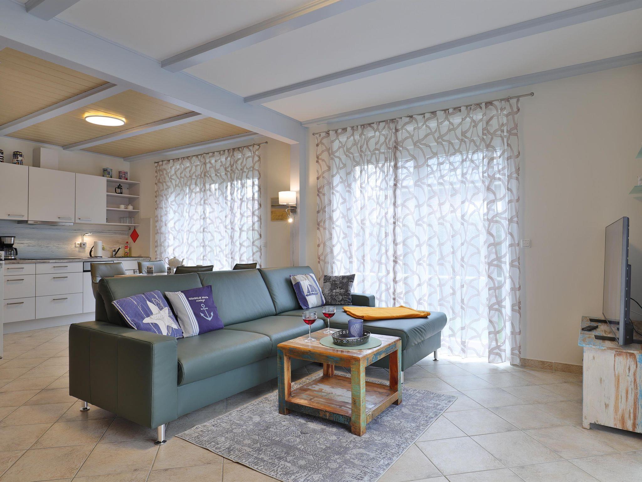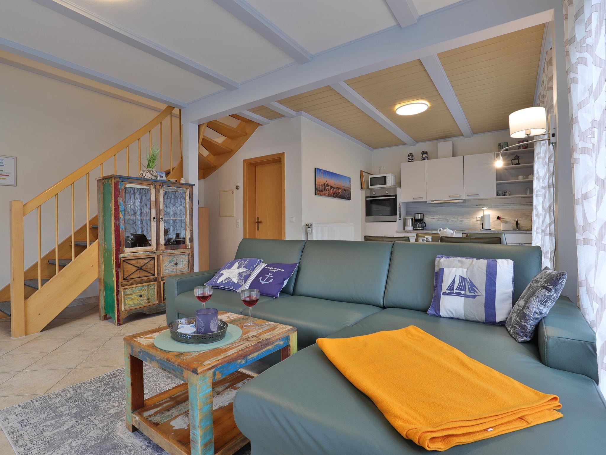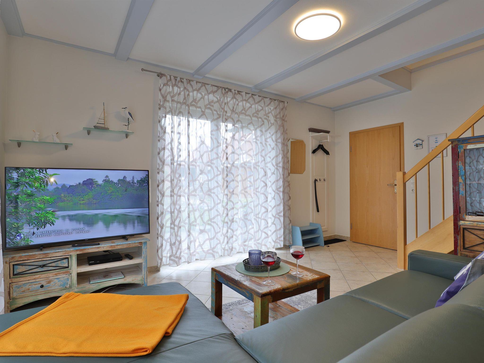 In unserer strand- und zentrumsnah gelegenen DHH MARINA, ausgestattet für Ô Personen, werden Sie sich wohlfühlen. Diese DHH ist ausgestattet mit einem großzügen Wohn- Essbereich mit Zugang zur Terrasse in Süd- Westausrichtung.Ýen Schlafbereich mit einem großen Doppelbett und einem zweiten TV finden Sie in der Gallerie im Obergeschoss.