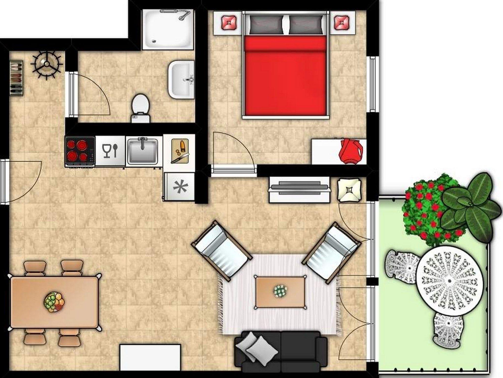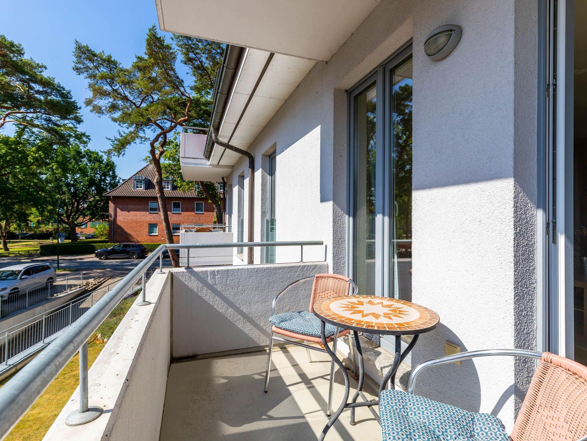 Und wenn Sie sich zum Frühstücken auf den möblierten Südost-Balkon setzen, sehen Sie zwischen den Bäumen das Meer!
