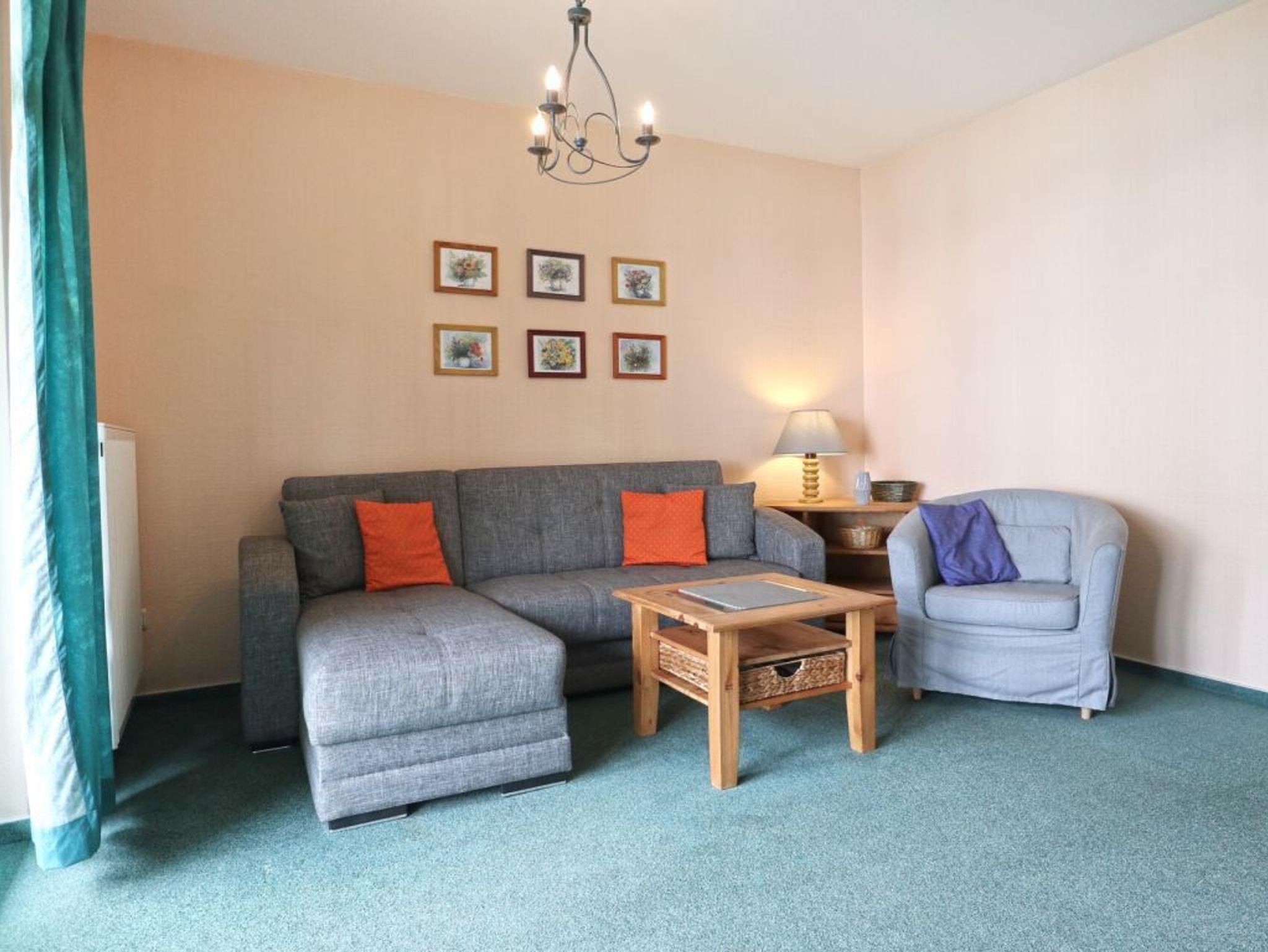 Die 2-Zimmer Ferienwohnung ?Minervapark 13? mit Balkon, befindet sich im 1. Obergeschoss und besitzt eine Wohnfläche von 57qm mit Teppichbodenbelag. Eine Belegung mit bis zu 3Personen möglich. Für technische Unterhaltung stehen Fernseher, Musikanlage bereit und WLAN nutzen Sie gebührenfrei. Vom Wohn-/Essbereich mit dem ausziehbaren Sofa, als dritte Schlafgelegenheit, gelangen Sie auf den saisonal möblierten West Balkon. Auch ein Esstisch mit vier Sitzplätzen ist im Wohnbereich vorhanden. Für die Eigenversorgung finden Sie in der separaten Küche alles, zur Zubereitung Ihrer Urlaubsmahlzeiten: Ceranherd, Backofen, Dunstabzug, Kühlschrank mit integr. Gefrierfach, Geschirrspüler, Kaffeemaschine, Wasserkocher, Toaster usw. Im separaten Schlafzimmer mit Doppelbett und Kleiderschrank verbringen Sie angenehme Nächte. Zugehörig ist ein Duschbad mit Fliesenbodenbelag, Waschtisch, Föhn, WC. Für Kleinkinder stehen ein Kinderbett und ein Kinderhochstuhl bereit. Ihren PKW parken Sie in der hauseigenen Tiefgarage und gelangen von dort bequem mit dem Fahrstuhl zu den Wohnungsetagen. Nichtraucher. Keine Haustiere.
