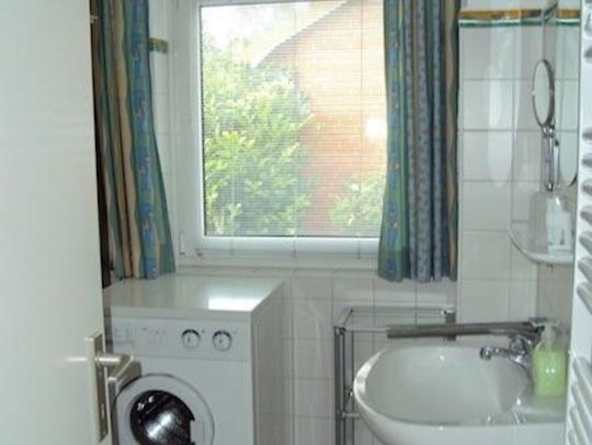 Das Badezimmer ist mit WC, Waschbecken, Dusche und Föhn ausgestattet. Eine Waschmaschine steht Ihnen hier ebenfalls zur Verfügung.