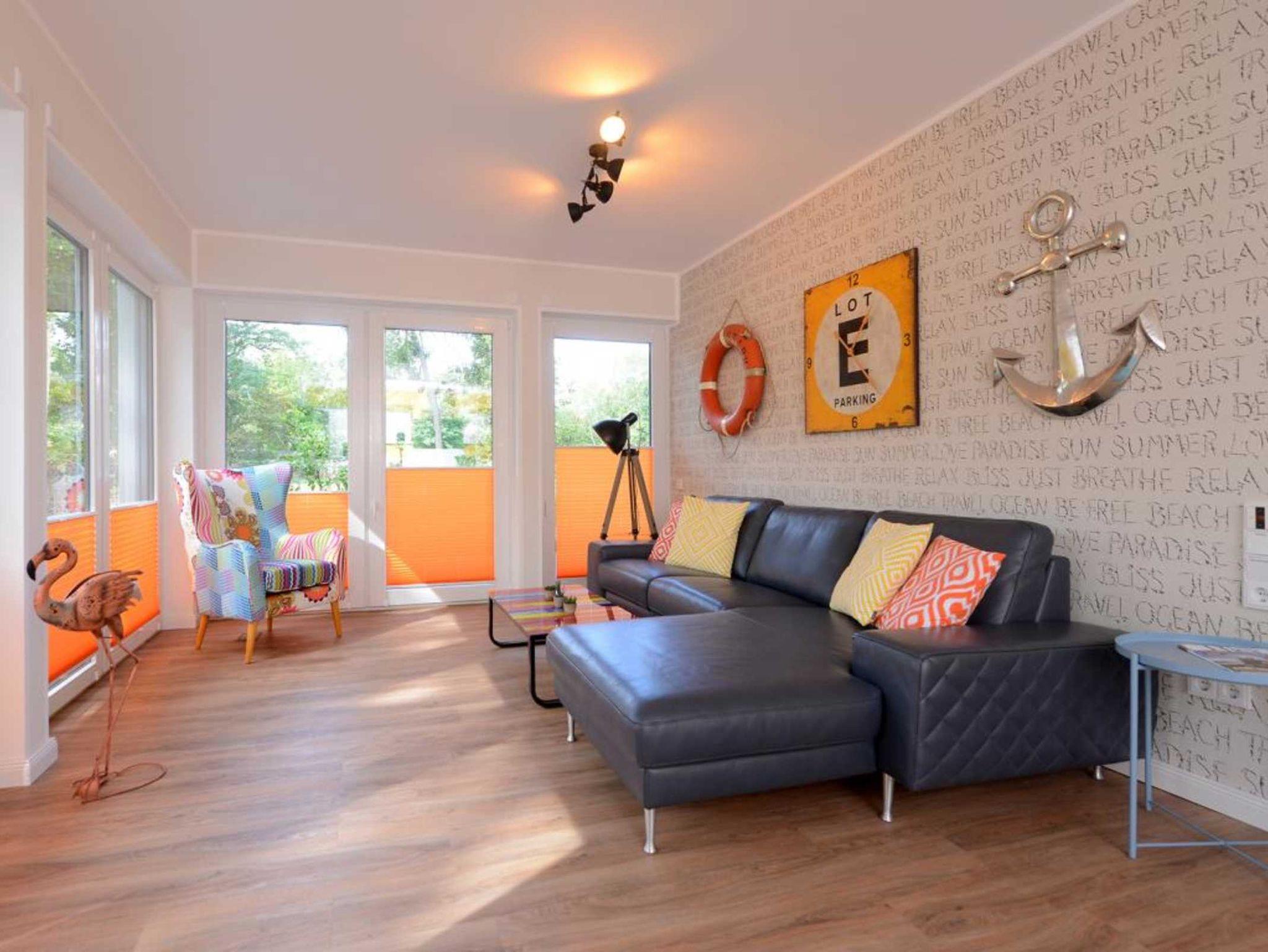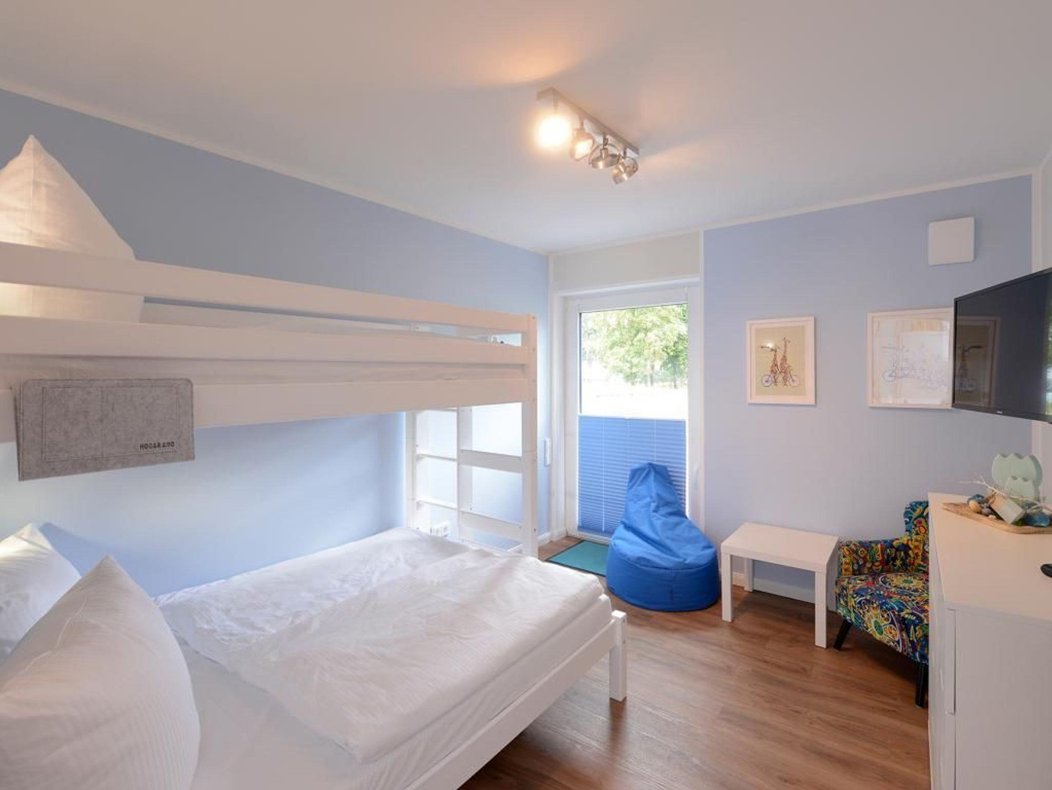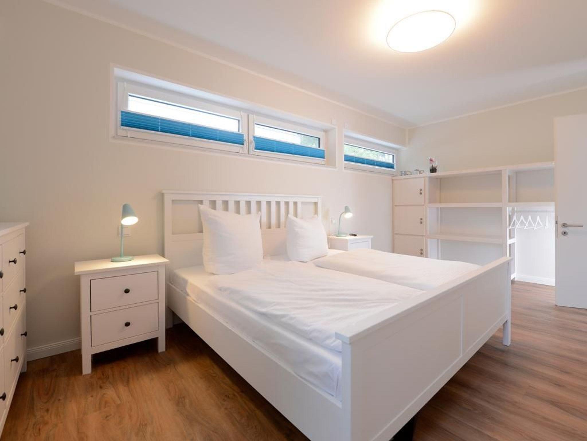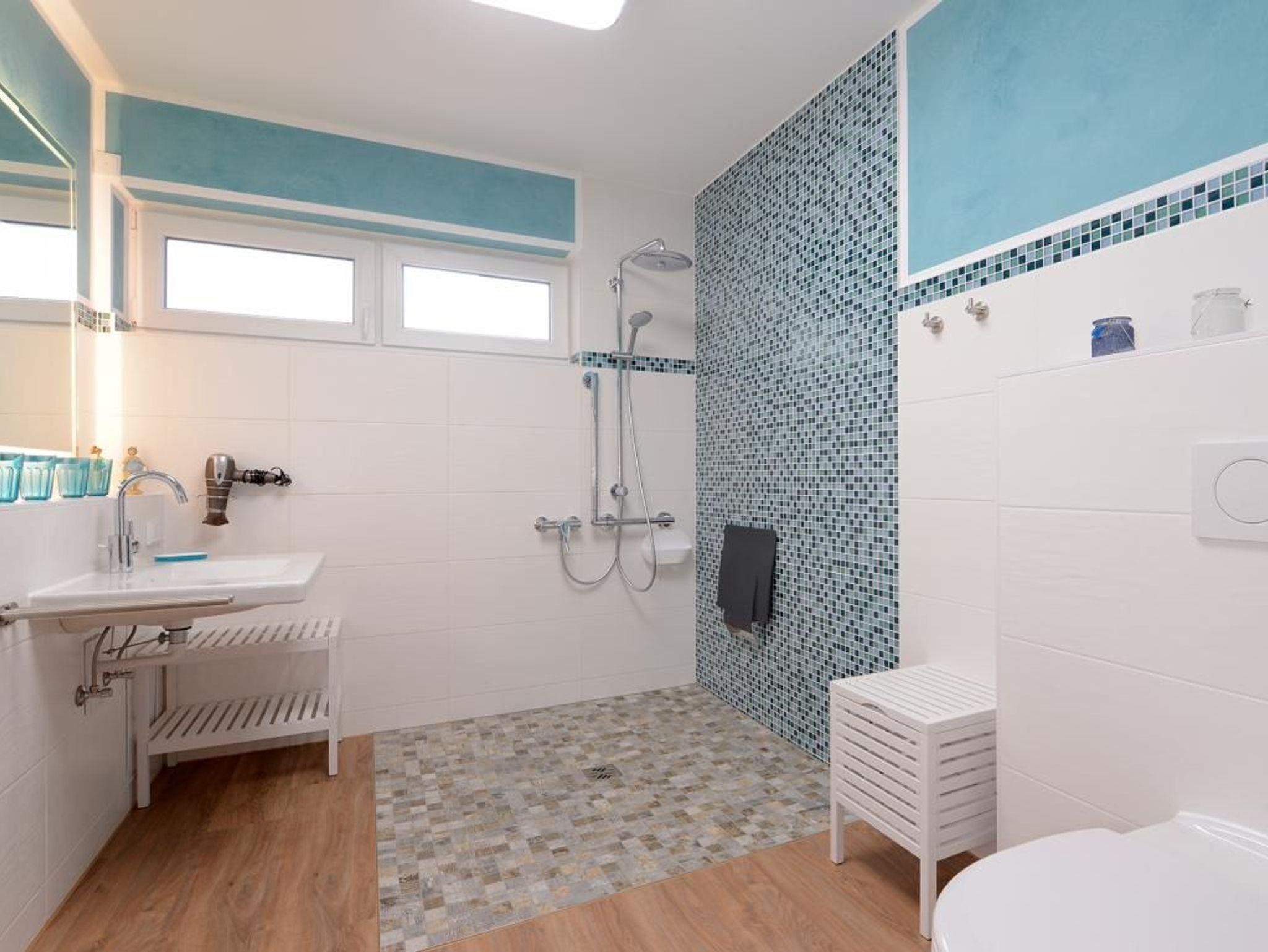 Das barrierefreie Appartement im Erdgeschoss bietet auf 81 qm sehr komfortablen Wohnraum für bis zu 4 Personen und eignet sich ideal für einen entspannten Urlaub in strandnaher Lage. Zwei möblierte Terrassen, ein großzügiger Wohn- und Essbereich, eine voll ausgestattete Küche sowie zwei separate Schlafzimmer schaffen beste Voraussetzungen für erholsame Ferientage. Der helle Wohnbereich mit bodentiefen Fenstern, gemütlichem Sofa und Essplatz geht fließend in die moderne Küche mit Induktionsherd, Backofen, Geschirrspüler und umfangreicher Ausstattung über. WLAN, ein internetfähiger Fernseher und eine Musikanlage sorgen für zeitgemäßen Komfort. Der Wohn-/Küchenbereich lässt sich durch eine Schiebetür vom restlichen Wohntrakt trennen. Beide Schlafzimmer sind hochwertig sowie mit Fernseher eingerichtet. Eines verfügt über ein Doppelbett mit einseitiger Hubfunktion und elektrisch verstellbarer Liegefläche sowie Terrassenzugang, das zweite über ein Katamaran Bett (untere Matratze 1,40 x 2,00 m, obere Matratze 0,90 x 2,00 m) und eignet sich ideal für bis zu drei Kinder. Bei Anreise sind bezogene Betten für zwei Personen inklusive. Das moderne, rollstuhlgerechte Tageslichtbad ist mit ebenerdiger Dusche, unterfahrbarem Waschbecken (Höhe 74,5 cm) sowie einem WC mit Sitzhöhe 48 cm und Haltegriff in 86 cm Höhe ausgestattet. Fußbodenheizung und Klimatisierung sorgen ganzjährig für angenehme Temperaturen. Elektrische Verschattung, Insektenschutz sowie ein extrabreiter Tiefgaragenstellplatz gegen Gebühr (max. Höhe 1,95 m, max. Länge 5,30 m) und eine Fahrradabstellmöglichkeit für mitgebrachte Fahrräder runden das Angebot ab. Ein komfortables Feriendomizil für Gäste, die Barrierefreiheit, Erholung und die Nähe zum Meer ? nur 50 Meter- schätzen. Nichtraucher. Keine Haustiere.