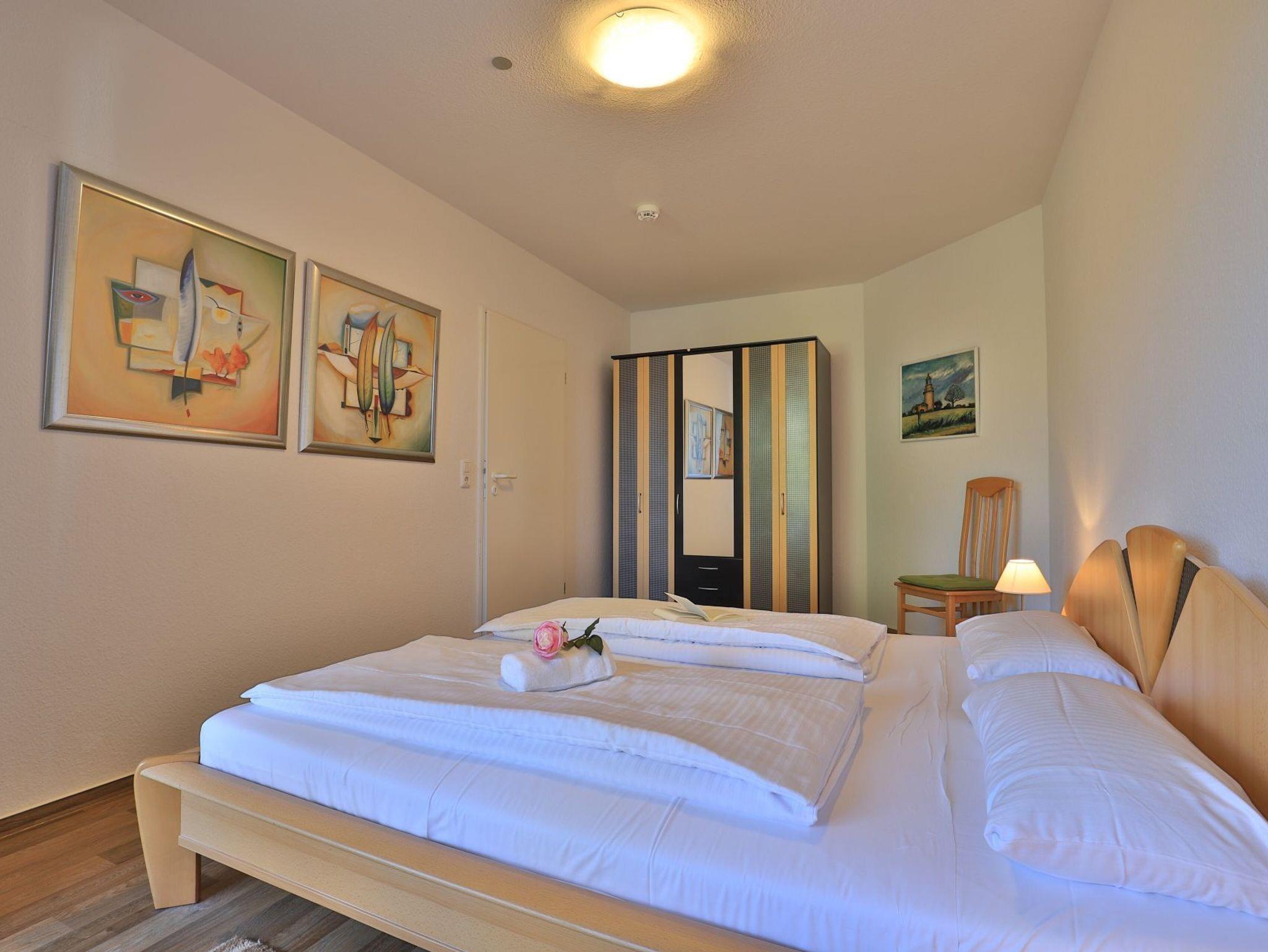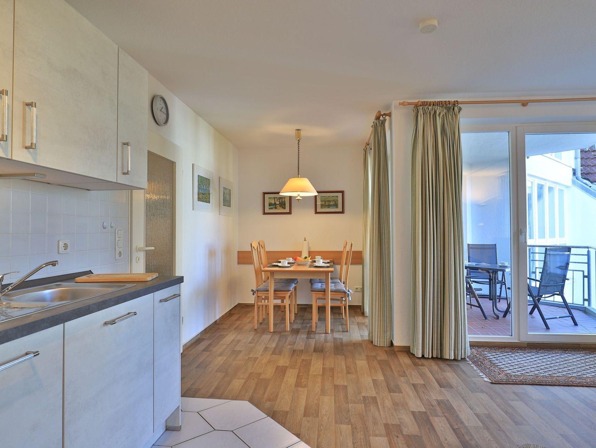 Die 2-Zimmer Ferienwohnung ?Likedeeler 24? mit Balkon, befindet sich im 1. Obergeschoss und besitzt eine großzügige Wohnfläche von 60qm. Eine Belegung mit bis zu 2 Personen möglich. Das mit drei Sternen klassifizierte Appartement ist insgesamt sehr komfortabel eingerichtet. Im Wohn-/Essbereich empfängt Sie eine bequeme Sofagarnitur ? erweiterbar als weitere Schlafgelegenheit- mit zwei Sesseln sowie ein Esstisch mit vier Sitzplätzen. Für technische Unterhaltung können Sie den Fernseher und die Musikanlage nutzen zudem steht WLAN kostenfrei bereit. Die in den Wohnbereich integrierte und bestens ausgestattete Wohnküche ist offen integriert und ermöglicht die Eigenversorgung mit: Ceranherd, Backofen, Mikrowelle, Dunstabzug, Kühlschrank mit integr. Gefrierfach, Geschirrspüler, Kaffeemaschine, Wasserkocher, Toaster usw. Ihre Speisen nehmen Sie am Esstisch zu sich, oder während der wärmeren Jahreszeit auf dem saisonal möblierten Balkon in Nord-Ost Ausrichtung. Ihre Nächte verbringen Sie in einem separaten, sehr behaglichen Schlafzimmer mit Doppelbett und großem Kleiderschrank. Idealerweise besitzt das Schlafzimmer einen zweiten Balkonzugang. Das hell geflieste Duschbad ist mit Waschtisch, Föhn, WC ausgestattet. Allen Hausgästen stehen eine Waschmaschine und Wäschetrockner gegen Gebühr im Untergeschoss der Ferienanlage zur Verfügung. Ihr Fahrzeug parken Sie in der hauseigenen Tiefgarage auf einem fest zugeordneten Stellplatz. Mit dem Fahrstuhl gelangen Sie zu den Wohnungsetagen.
