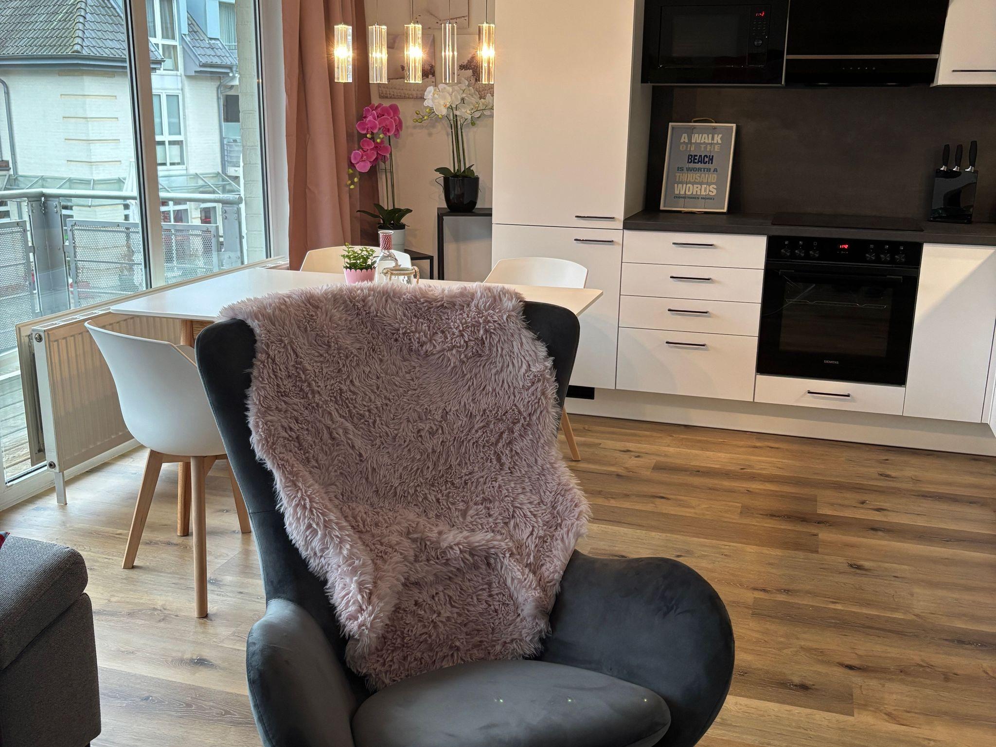 Ihre gut ausgestattete Zwei-Zimmer-Ferienwohnung für bis zu vier Personen verfügt über einen Balkon oder Terrasse, kostenfreies WLAN und sky-Empfang. Sie erreichen die Wohnung bequem mit dem Aufzug, für Ihren PKW steht ein Platz in der Tiefgarage zur Verfügung. Dort befindet sich zudem ein Waschraum mit Münzwaschmaschinen und Münzwäschetrockner und ein Platz für Ihre Fahrräder.