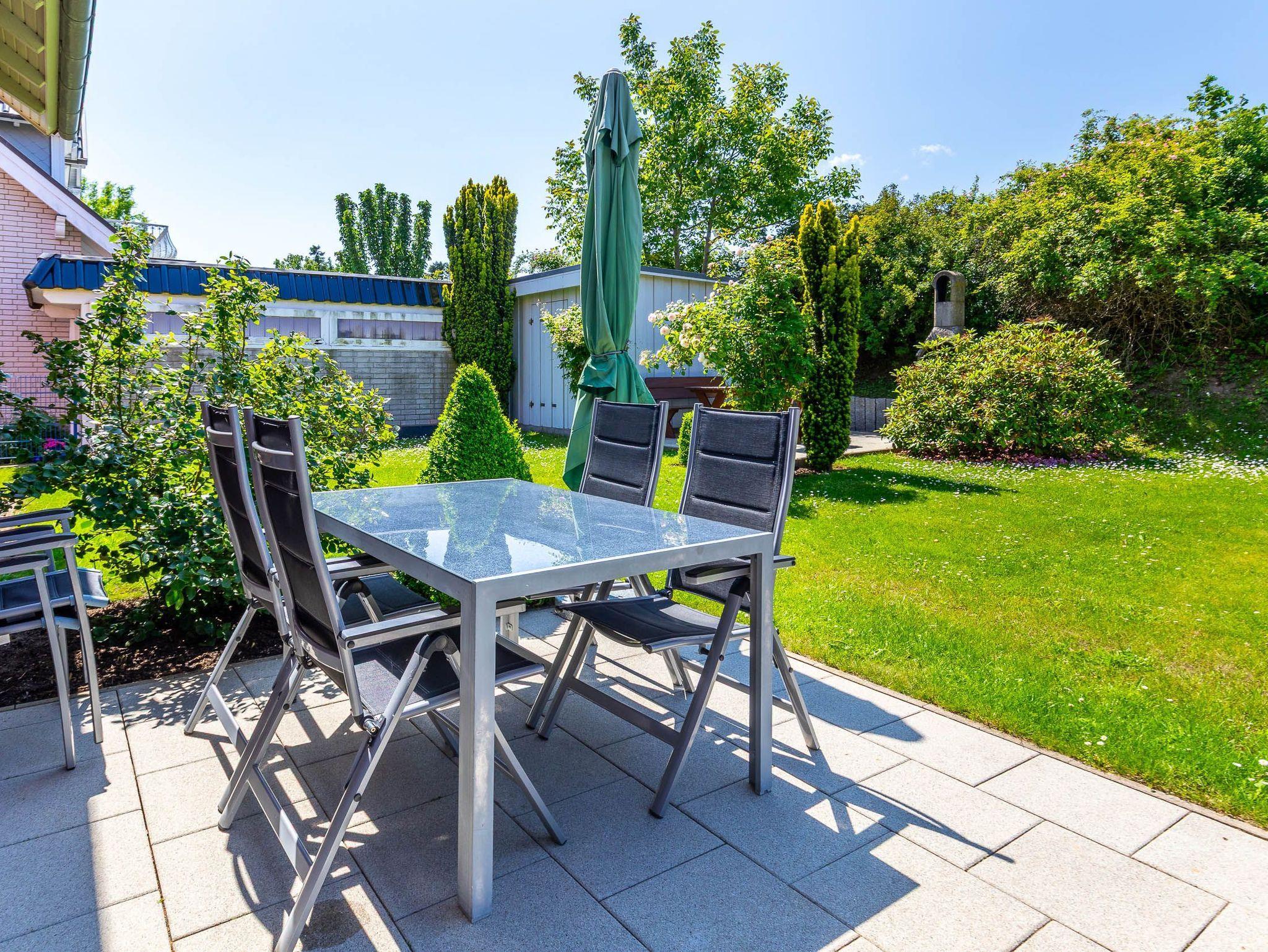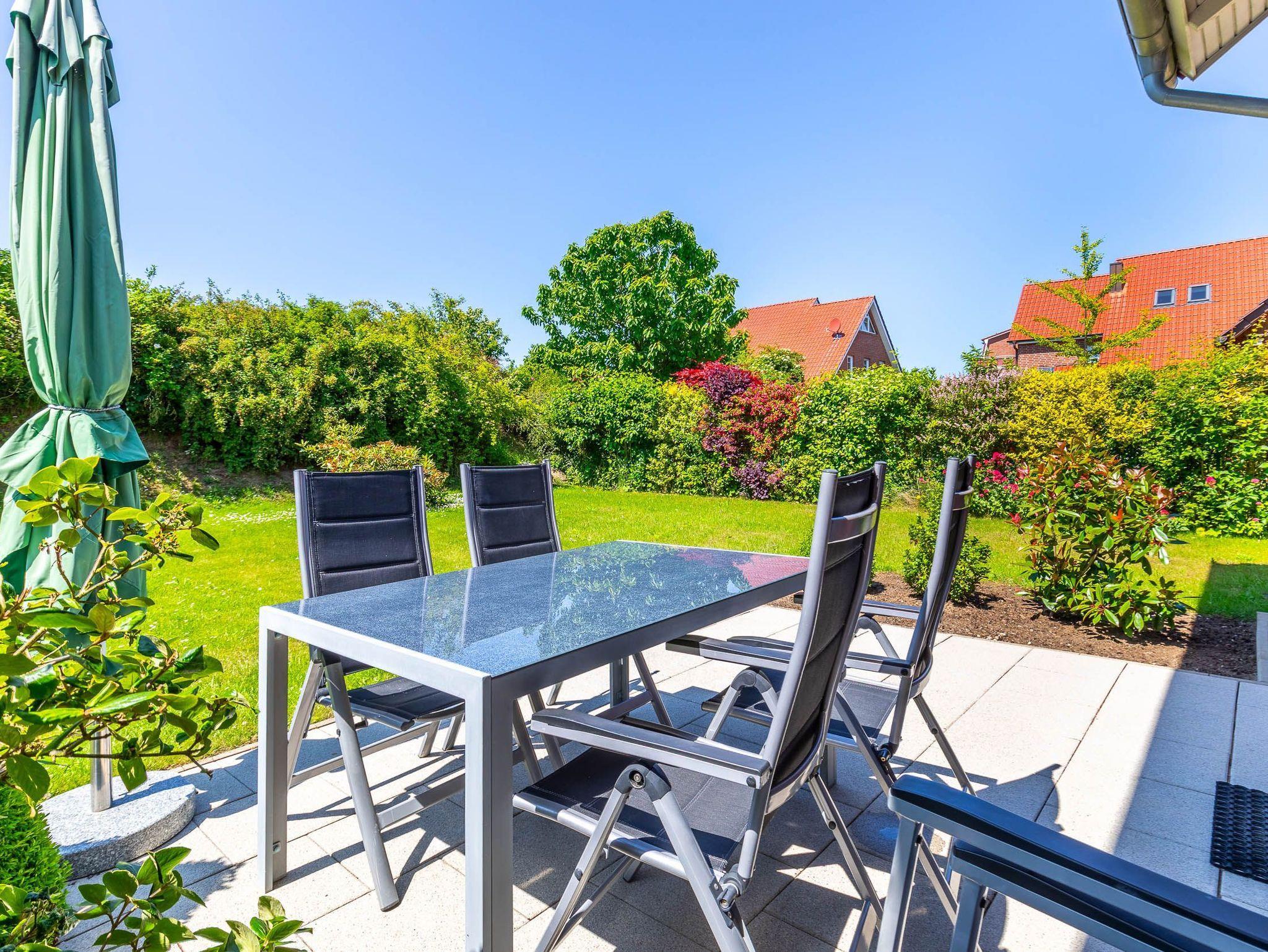 Von hier aus gelangen Sie direkt auf die möblierte Süd-Terrasse mit angrenzendem gepflegten Grundstück.