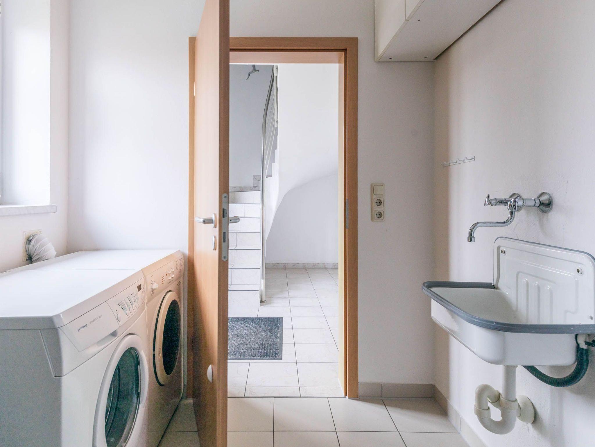 Neben einer Waschmaschine und einem Trockner stehen auch ein Wäscheständer, Bügelbrett und Bügeleisen zur gemeinsamen Nutzung im allgemeinen Hauswirtschaftsraum zur Verfügung.
