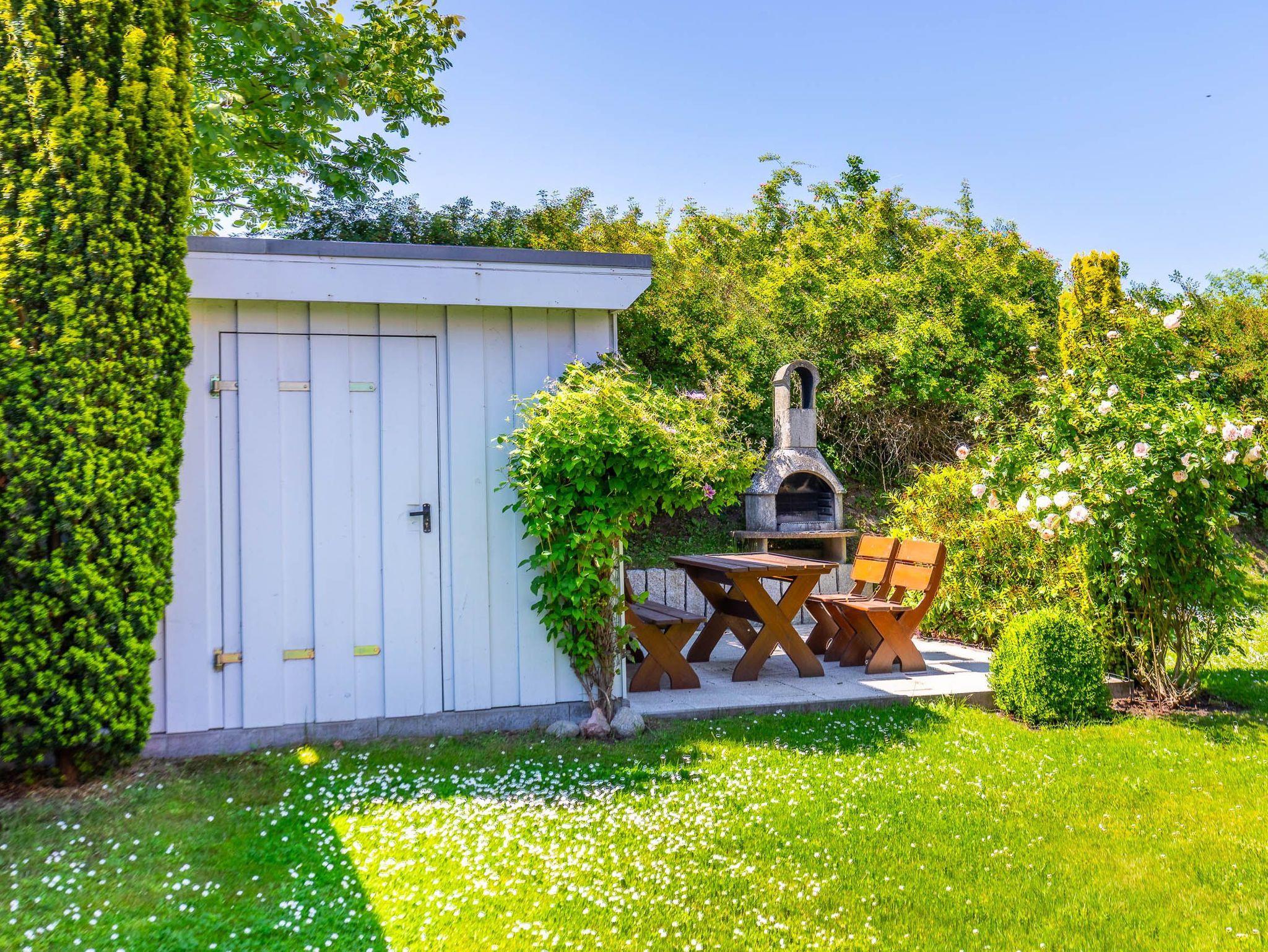 Ein Fahrradabstellhäuschen steht zur gemeinsamen Nutzung im Garten zur Verfügung. Hier können Sie Ihre geliehenen oder mitgebrachten Fahrräder [&] Co. unterbringen.