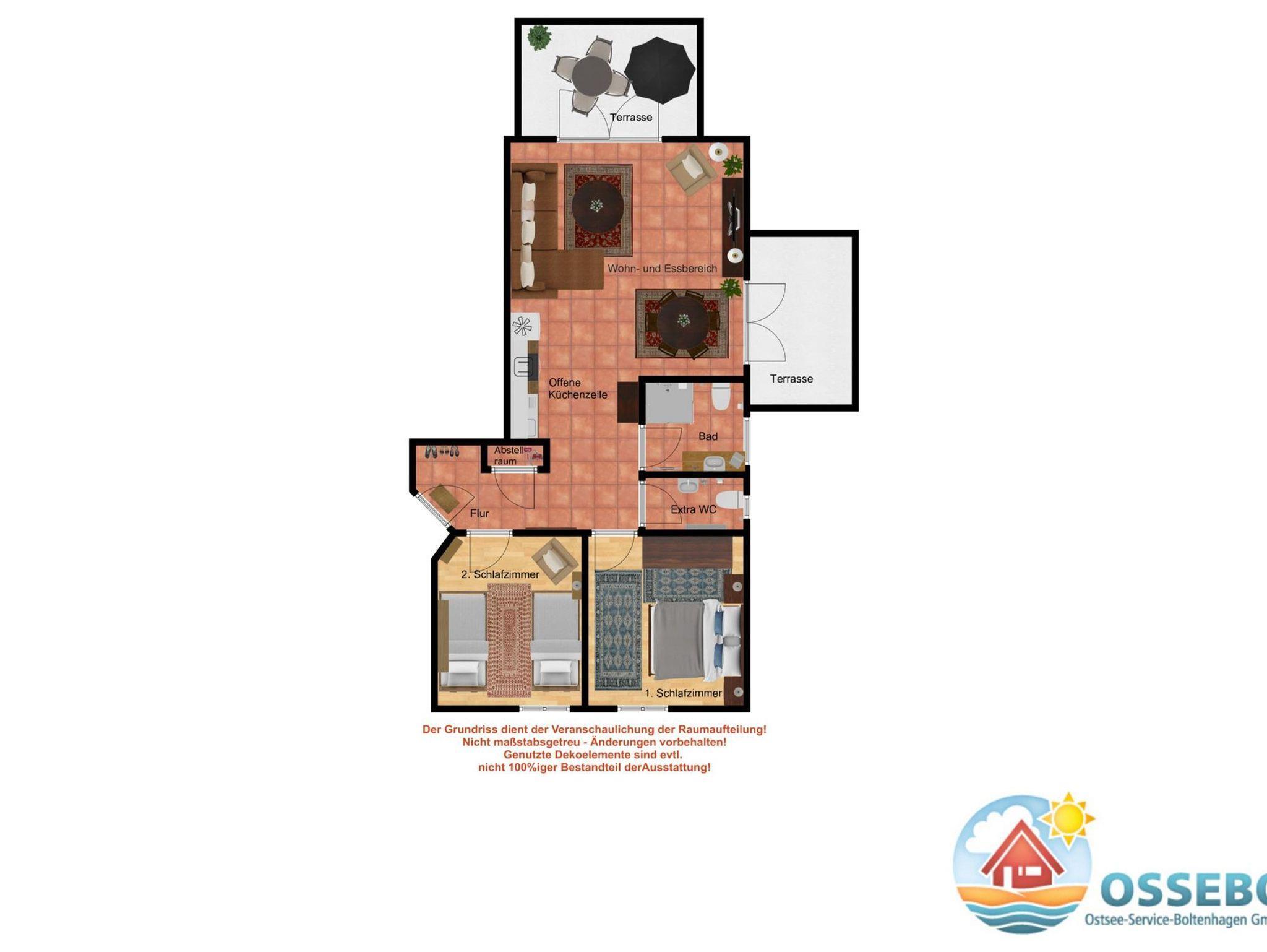 Die 3-Zimmer-Wohnung im Erdgeschoss bietet auf 68qm Wohnfläche eine komfortable Ausstattung für einen tollen Familienurlaub bis 4 Gäste + Kleinkind.